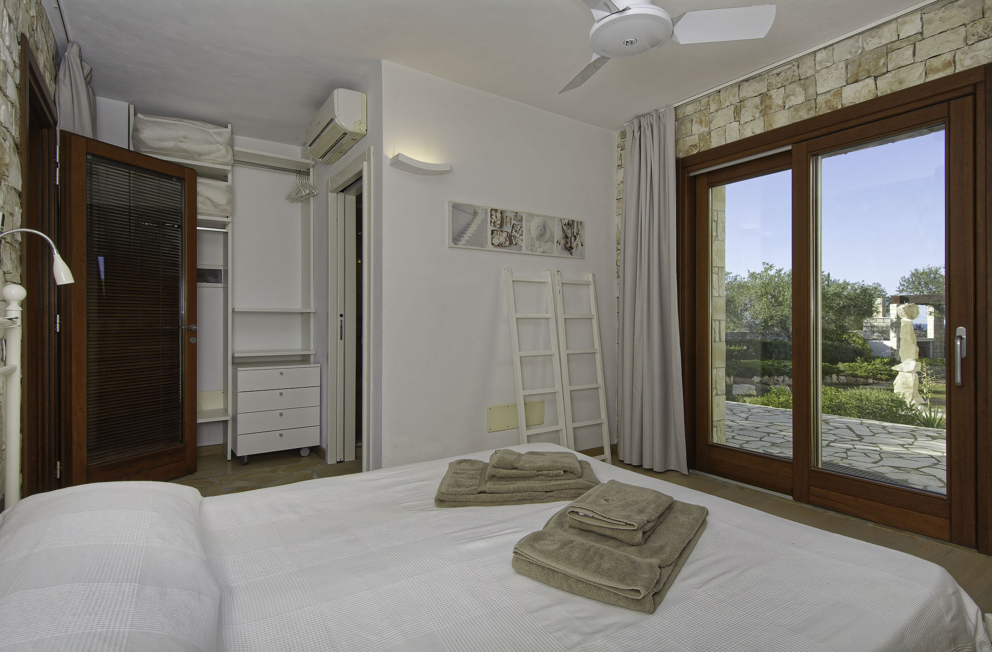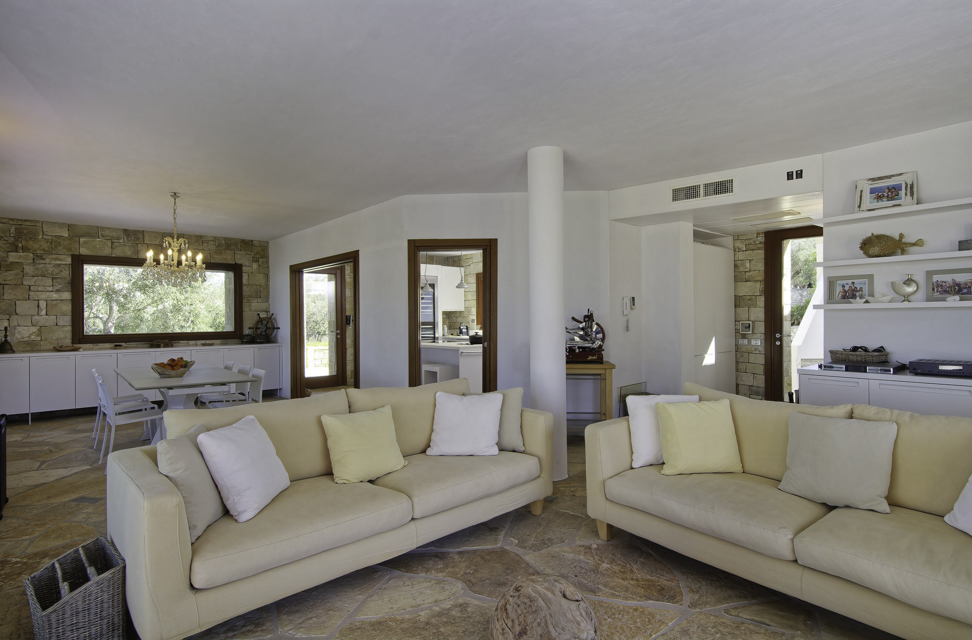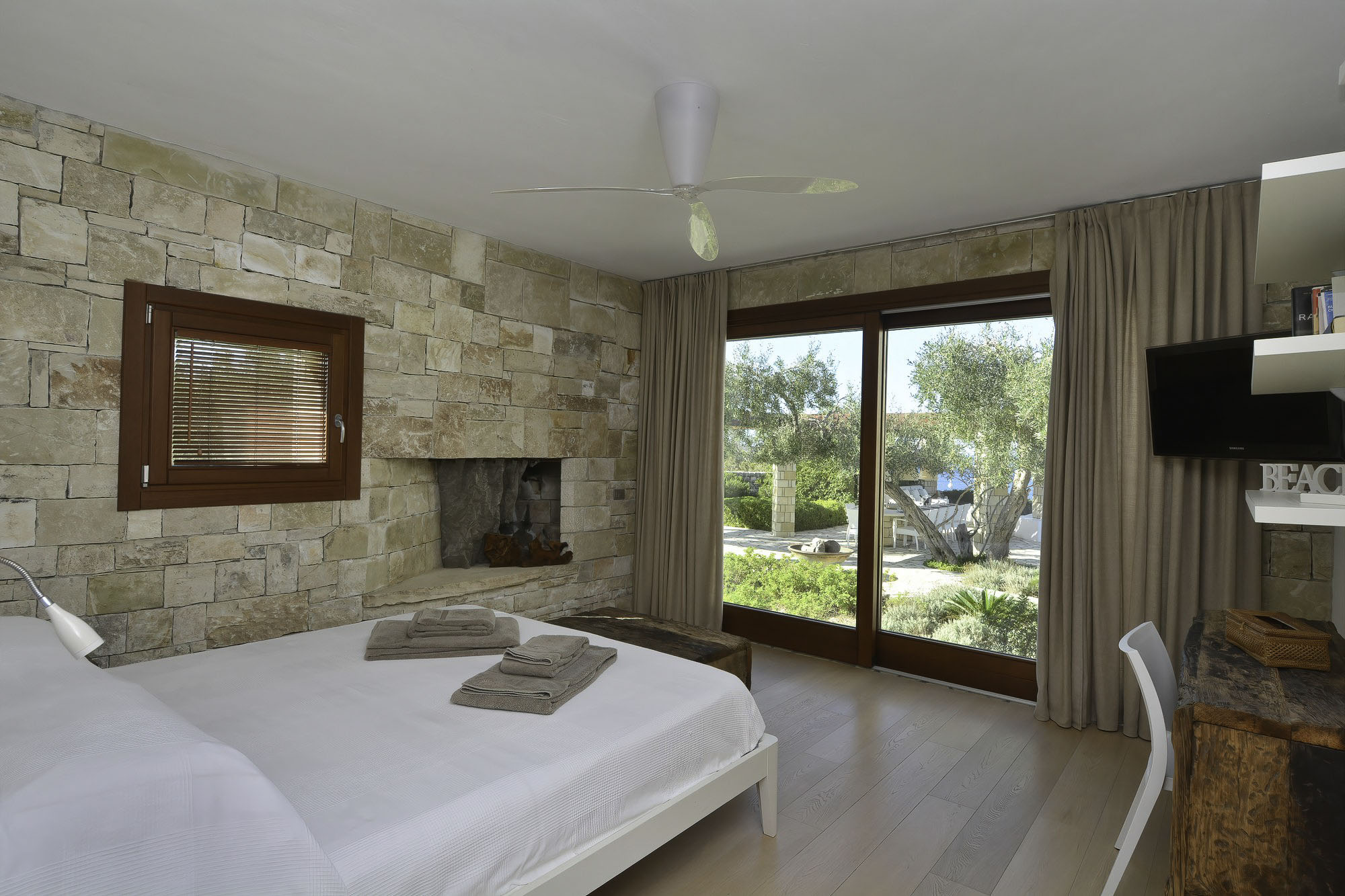 At the heart of it all lies a stunning infinity pool, its shimmering surface merging seamlessly with the horizon. Shaded pergolas, al fresco dining tables, and comfortable sunbeds invite guests to linger outdoors from sunrise to sunset. The villa’s thoughtful design ensures a continuous connection with the sea and surrounding nature, whether relaxing poolside, soaking in the Jacuzzi, or strolling through the olive groves.