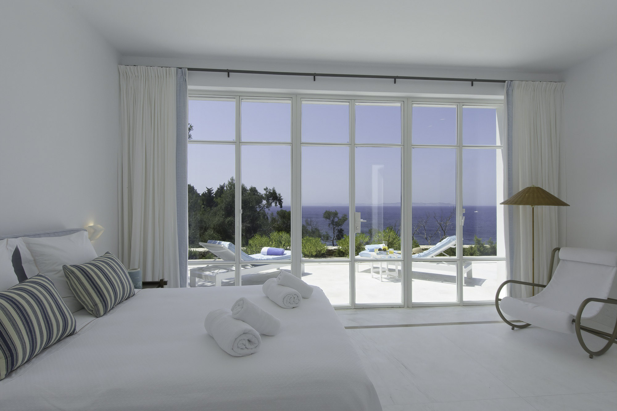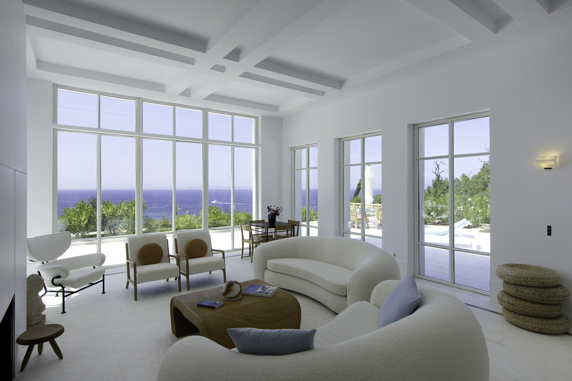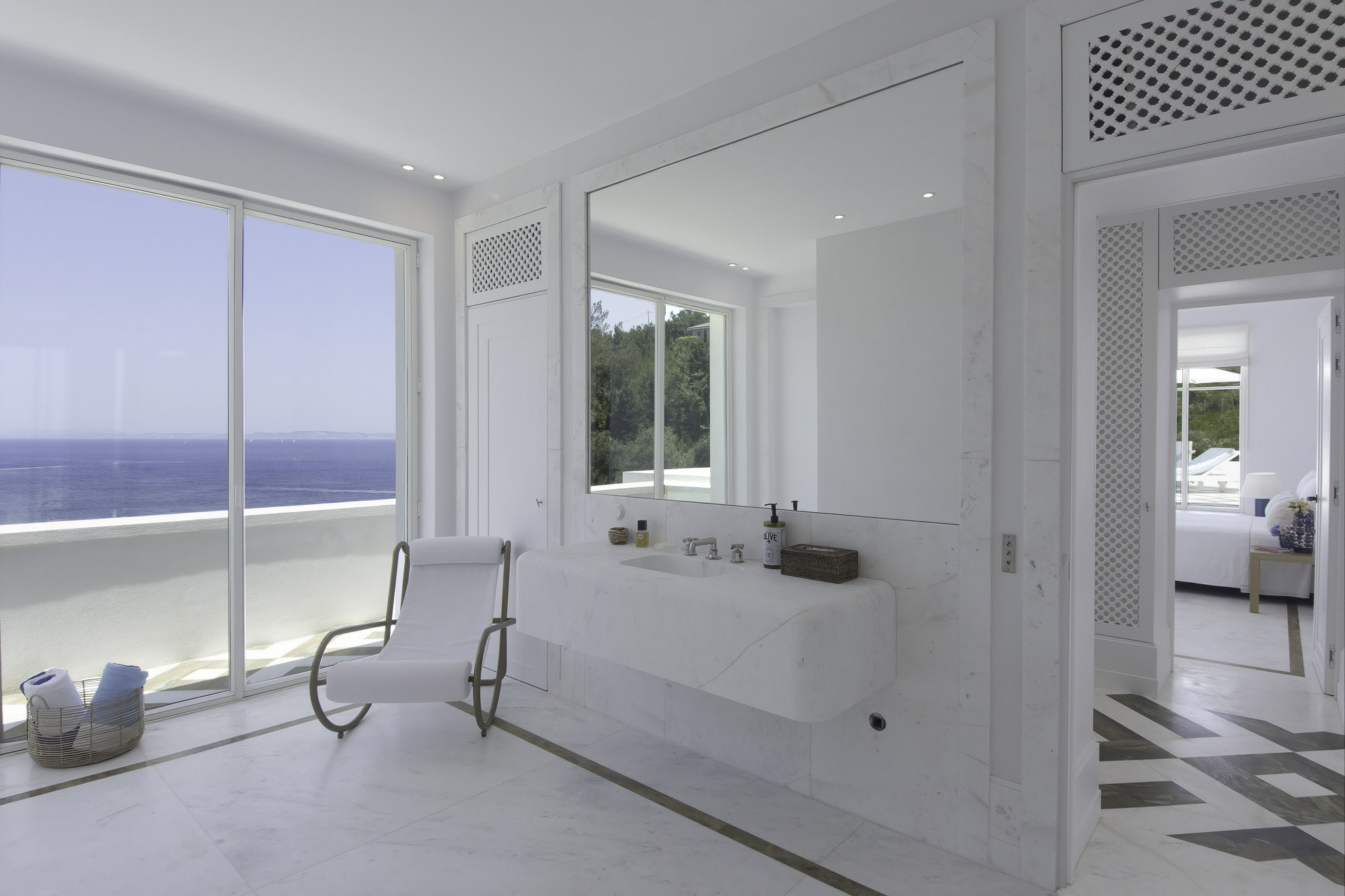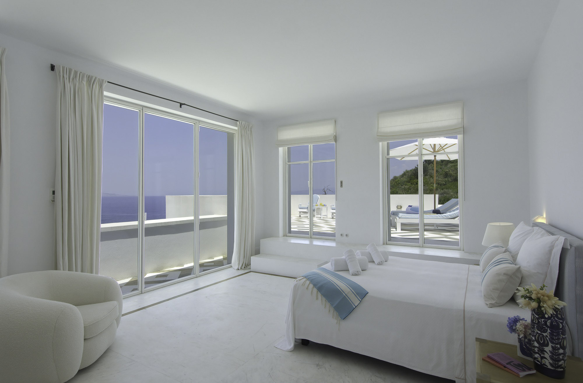 Inside, clean architectural lines, contemporary furniture, and carefully selected modern art create an atmosphere of quiet sophistication. The villa sleeps 11 across five spacious en suite bedrooms, each with access to the terrace and sea views. A cinema room adds to the luxurious comfort, making this villa just as suited to cosy evenings in as it is to sun-soaked afternoons outdoors.