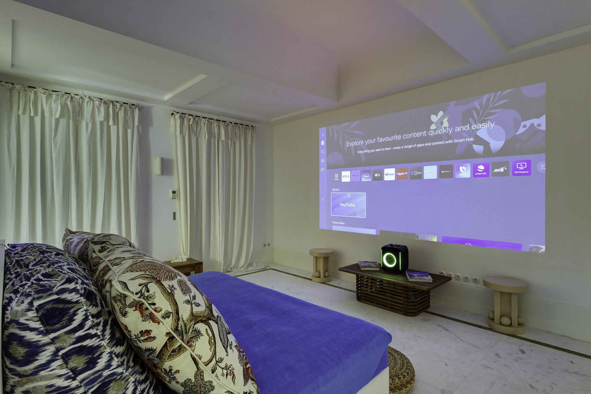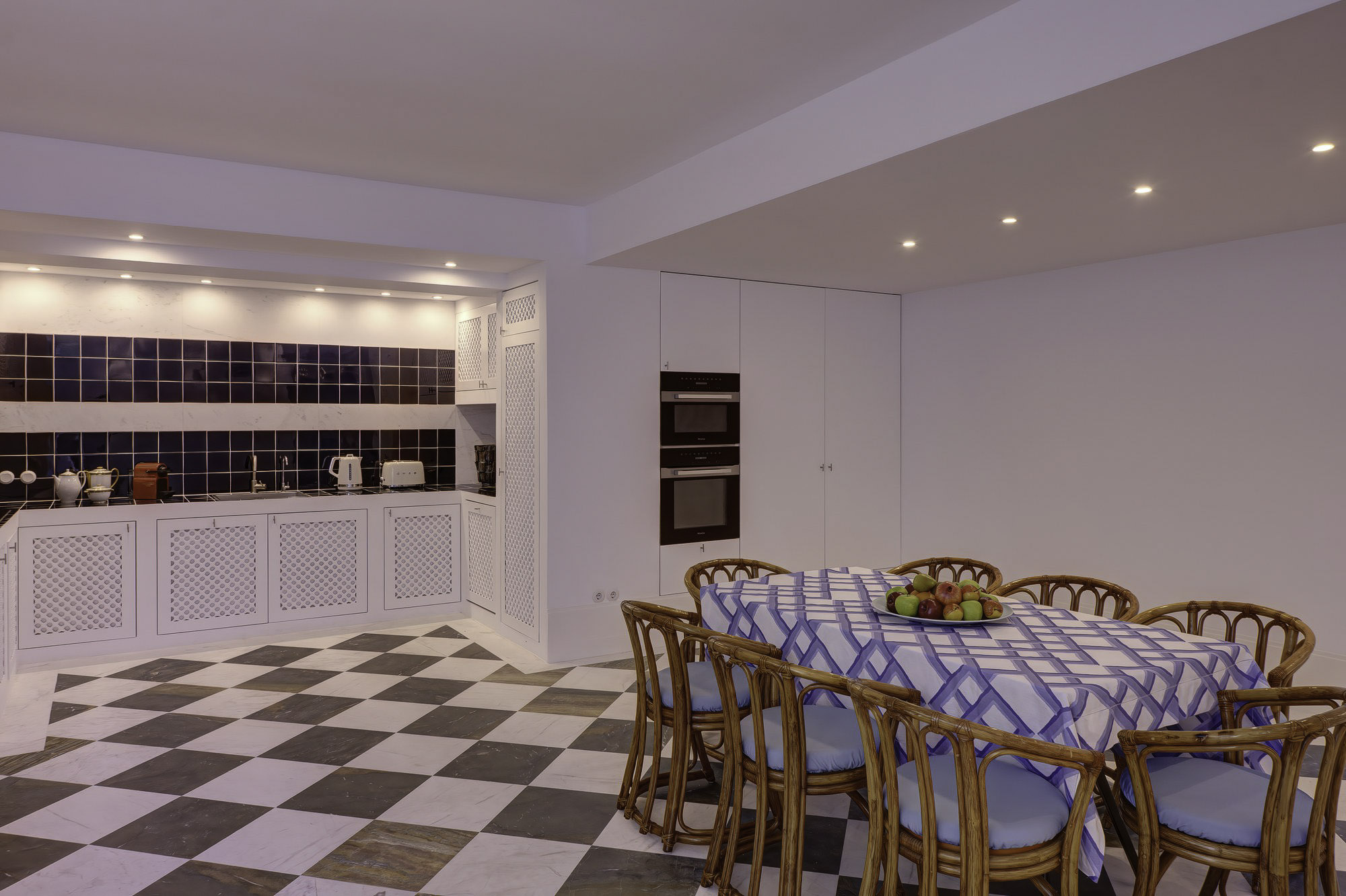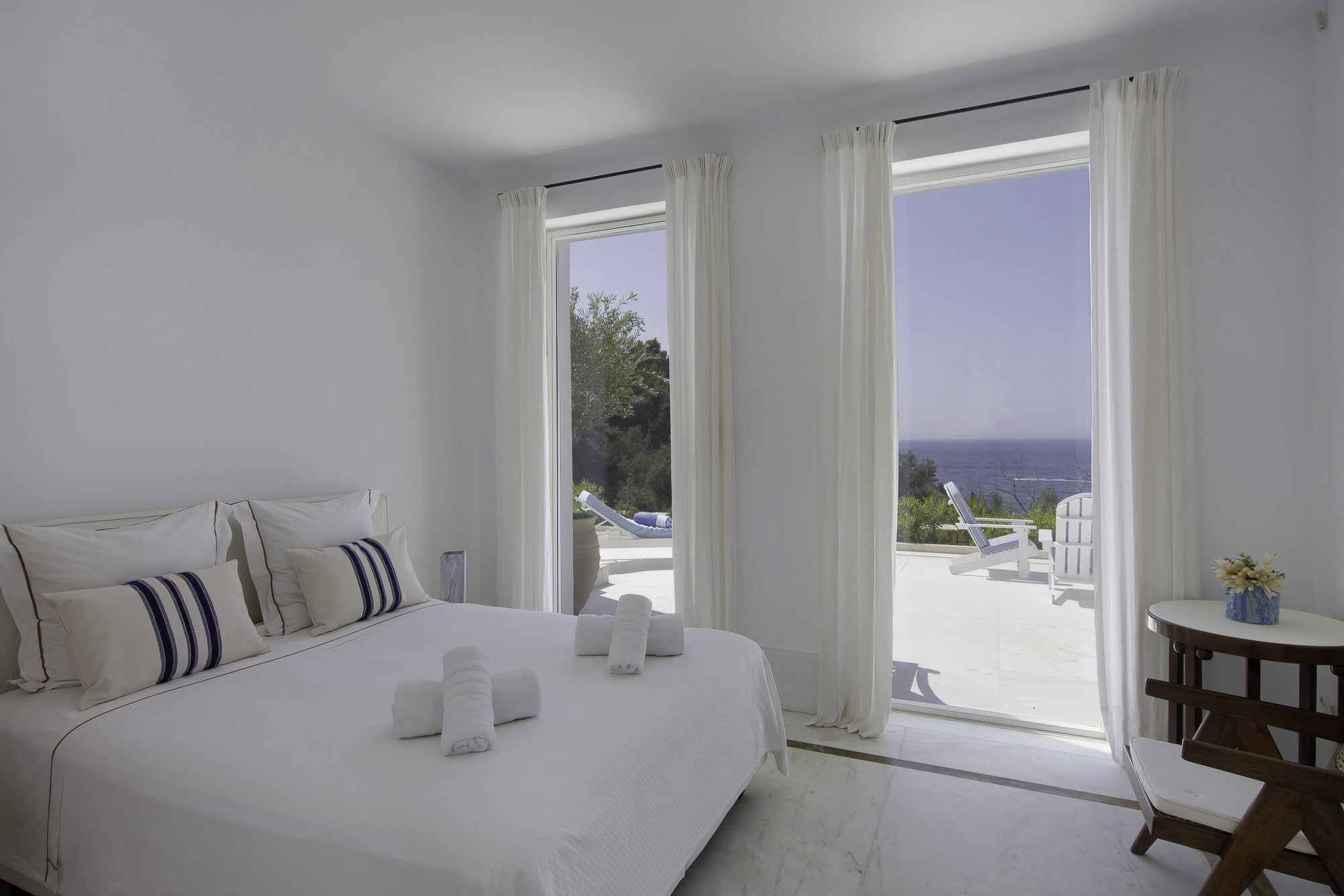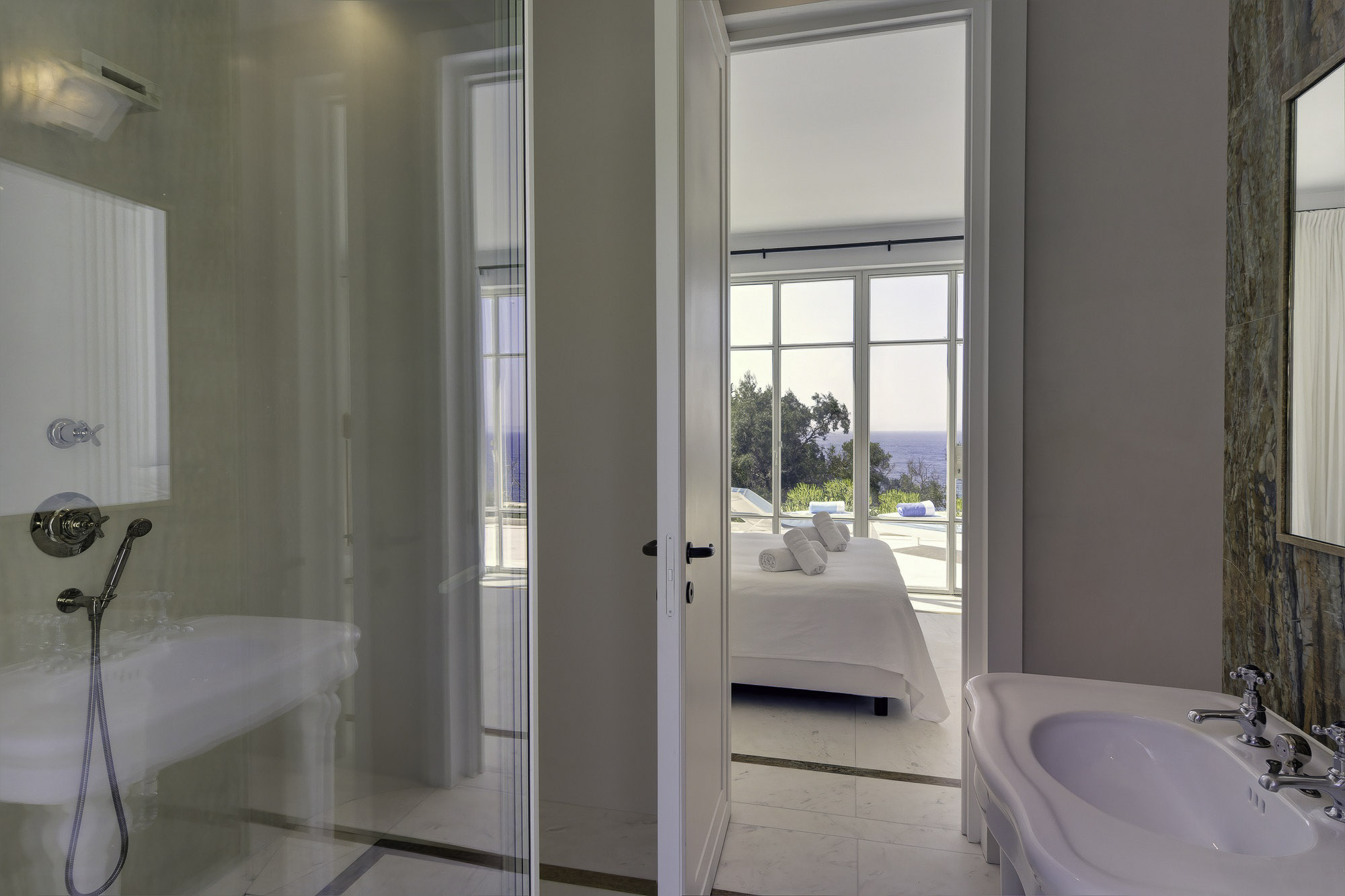 Inside, clean architectural lines, contemporary furniture, and carefully selected modern art create an atmosphere of quiet sophistication. The villa sleeps 11 across five spacious en suite bedrooms, each with access to the terrace and sea views. A cinema room adds to the luxurious comfort, making this villa just as suited to cosy evenings in as it is to sun-soaked afternoons outdoors.
