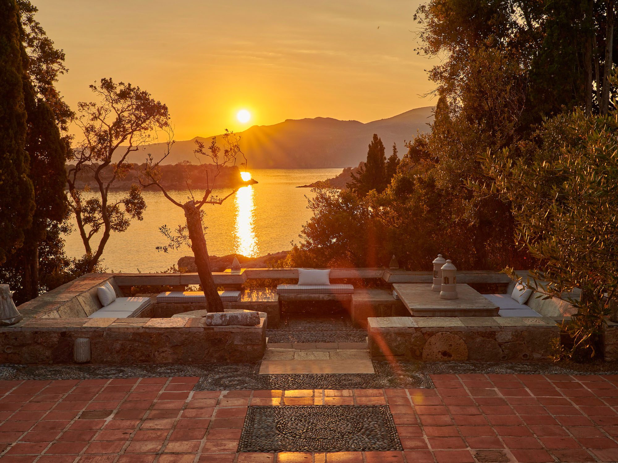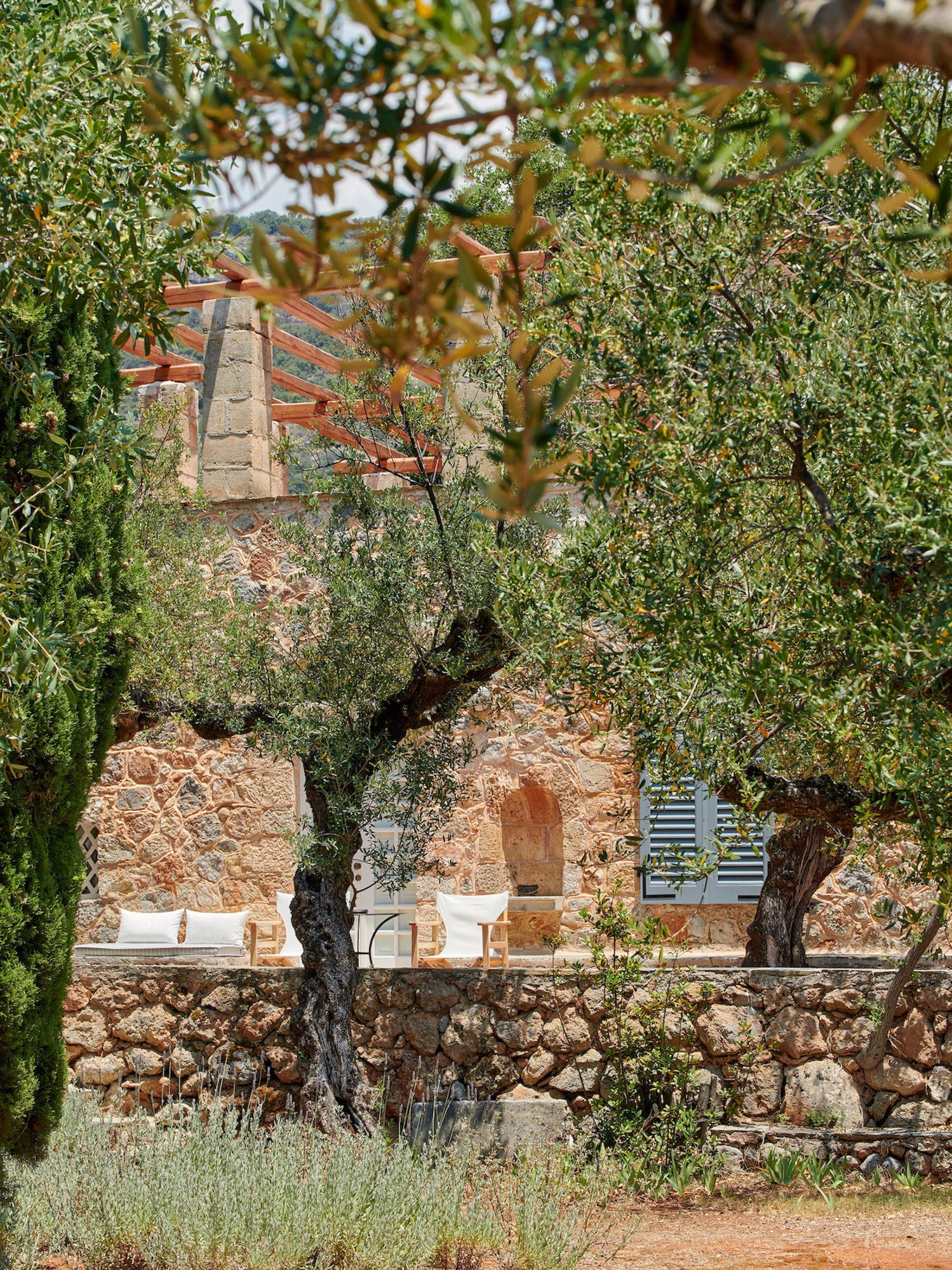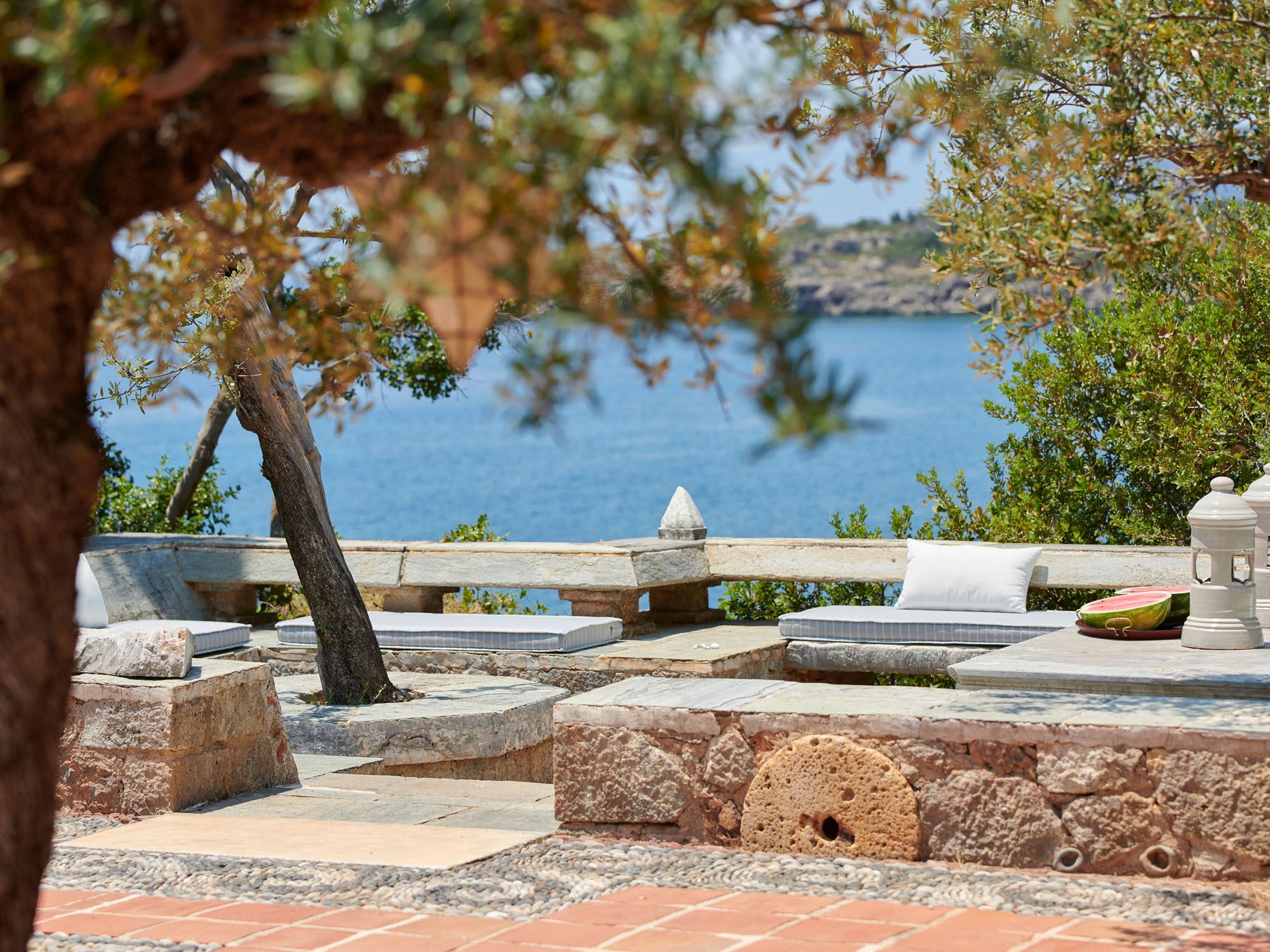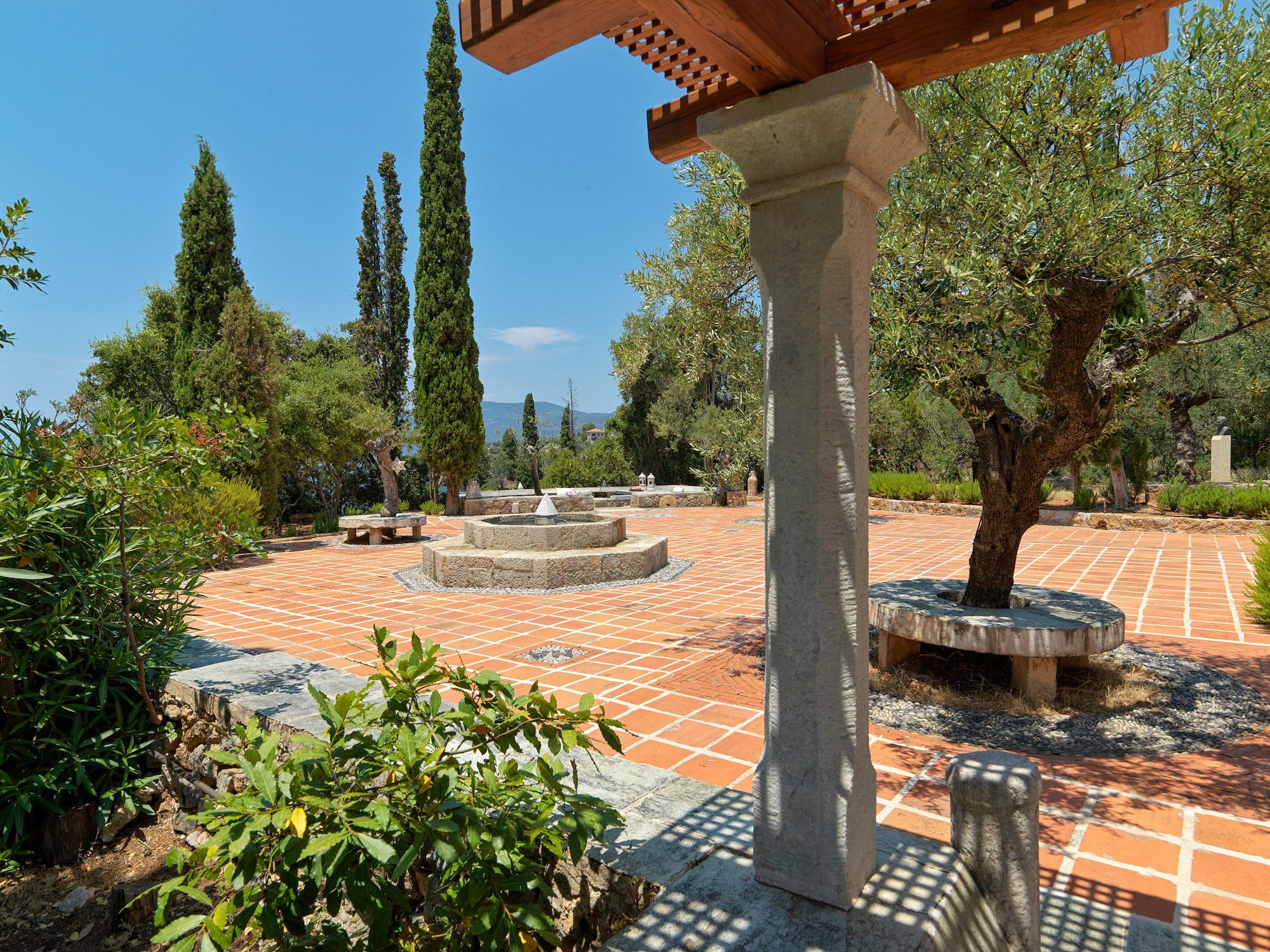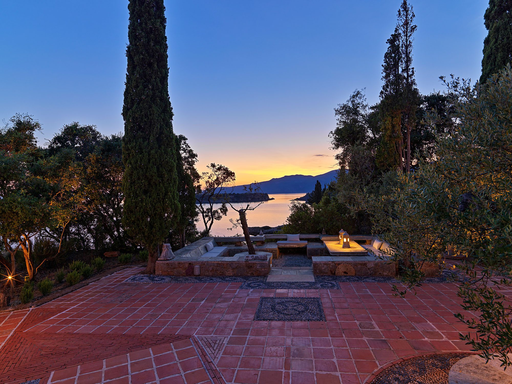 Surrounded by a lush Mediterranean garden of olive and cypress trees, white oleanders, fragrant shrubs, and wildflowers that gently slope down to the sea, the estate is a true haven.