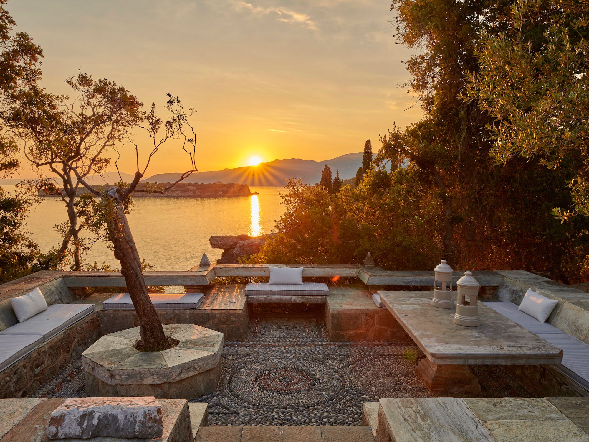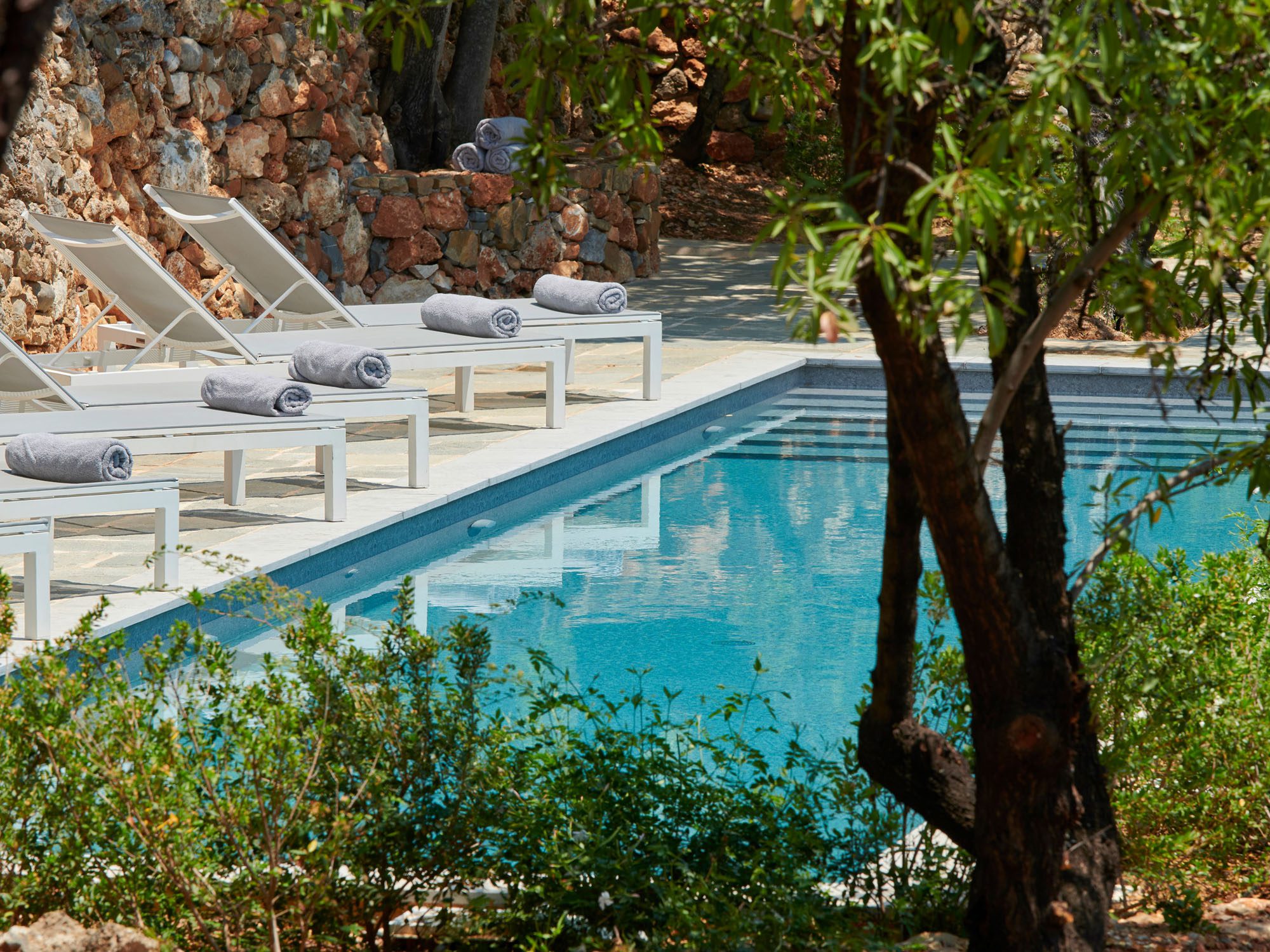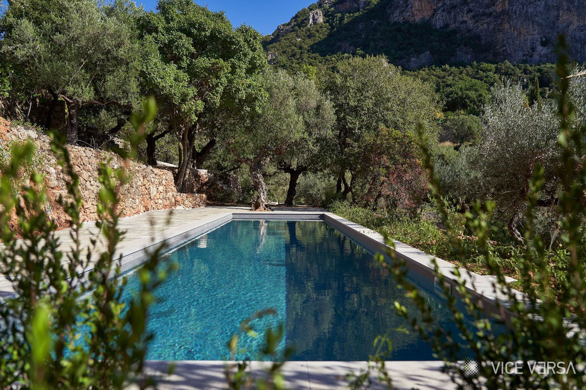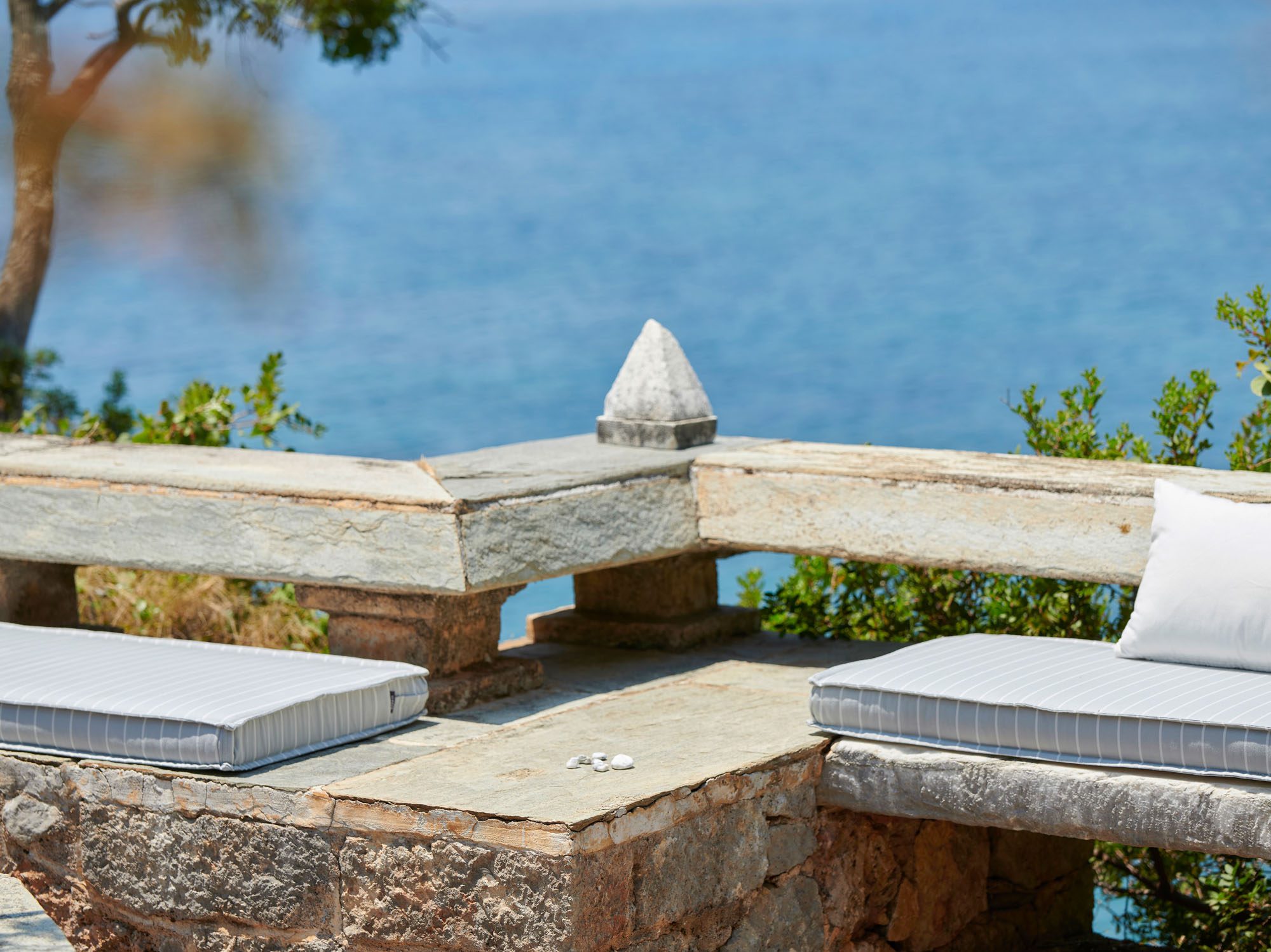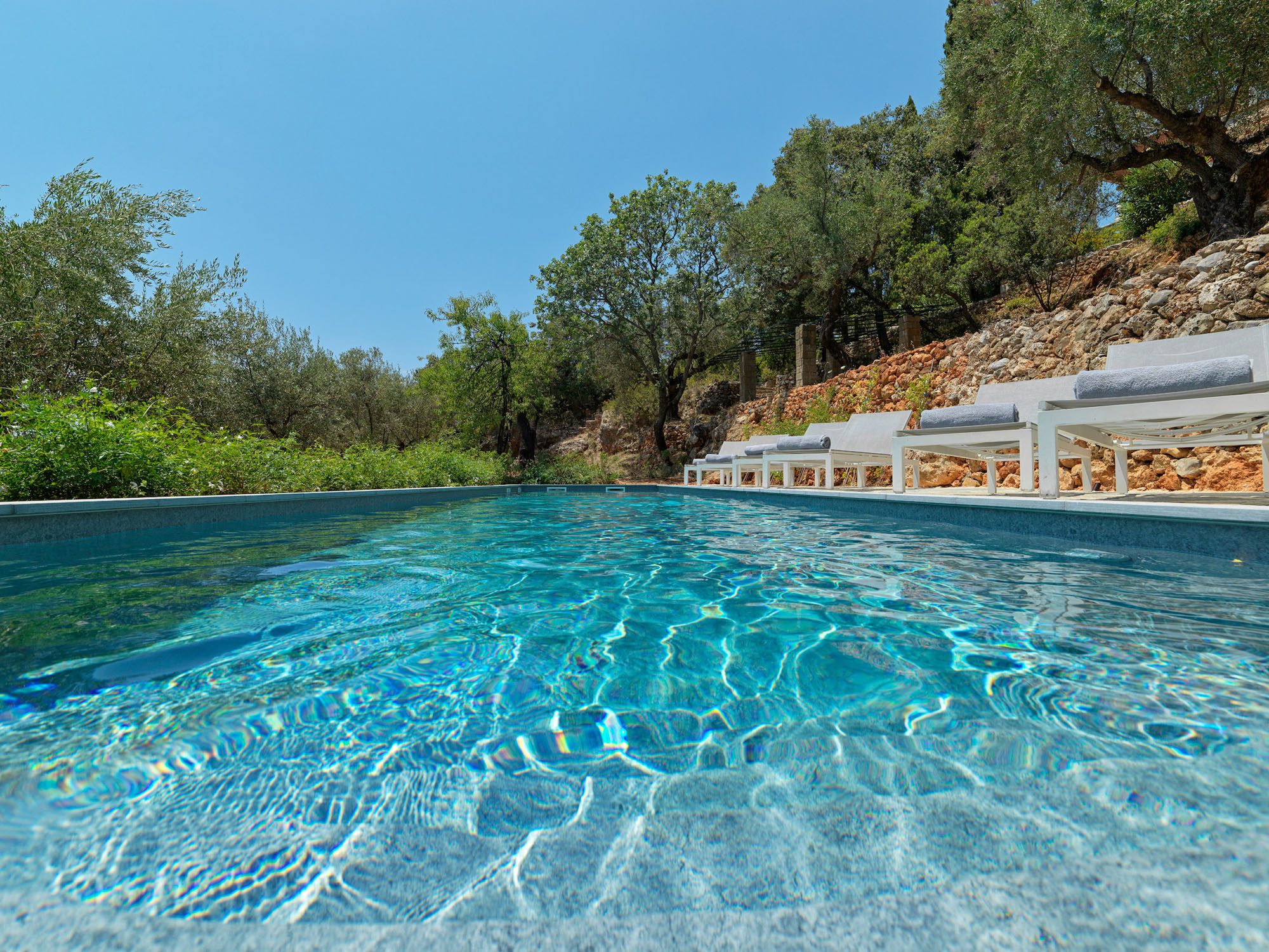 Surrounded by a lush Mediterranean garden of olive and cypress trees, white oleanders, fragrant shrubs, and wildflowers that gently slope down to the sea, the estate is a true haven.