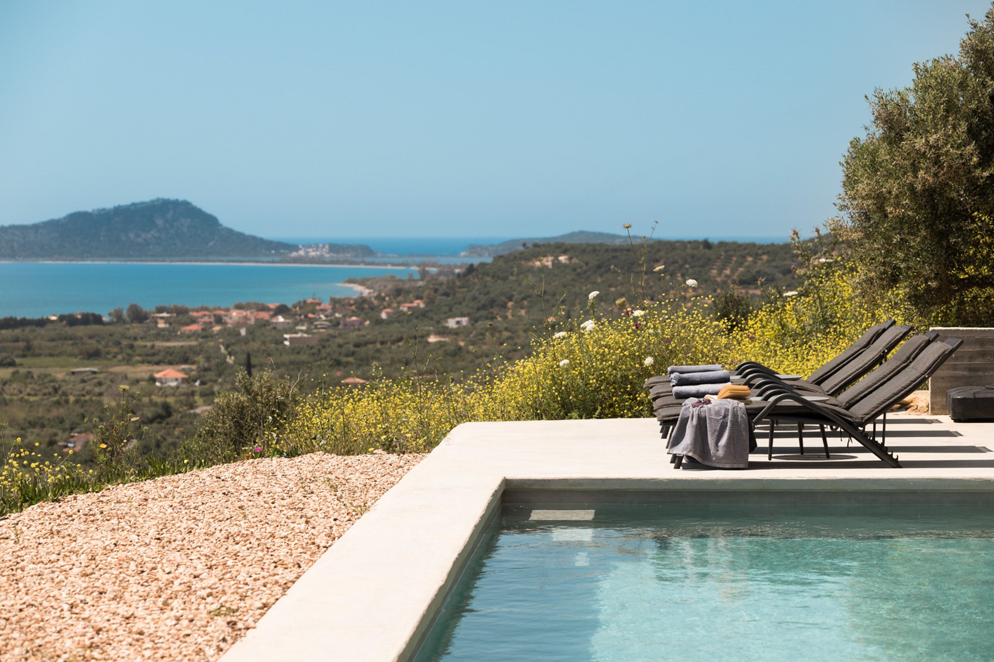 Just 45 kilometres from Kalamata Airport and with direct access to the renowned Bay Course at Costa Navarino Golf, the villa also sits a short drive from the charming seaside town of Pylos. History lovers can visit the 13th-century BC Palace of Nestor and the 16th-century Ottoman fortress of Neokastro. At the same time, nature enthusiasts will be captivated by Voidokilia Beach’s unspoiled beauty and the Gialova Lagoon’s vibrant birdlife, where pink flamingos and even African chameleons make appearances.