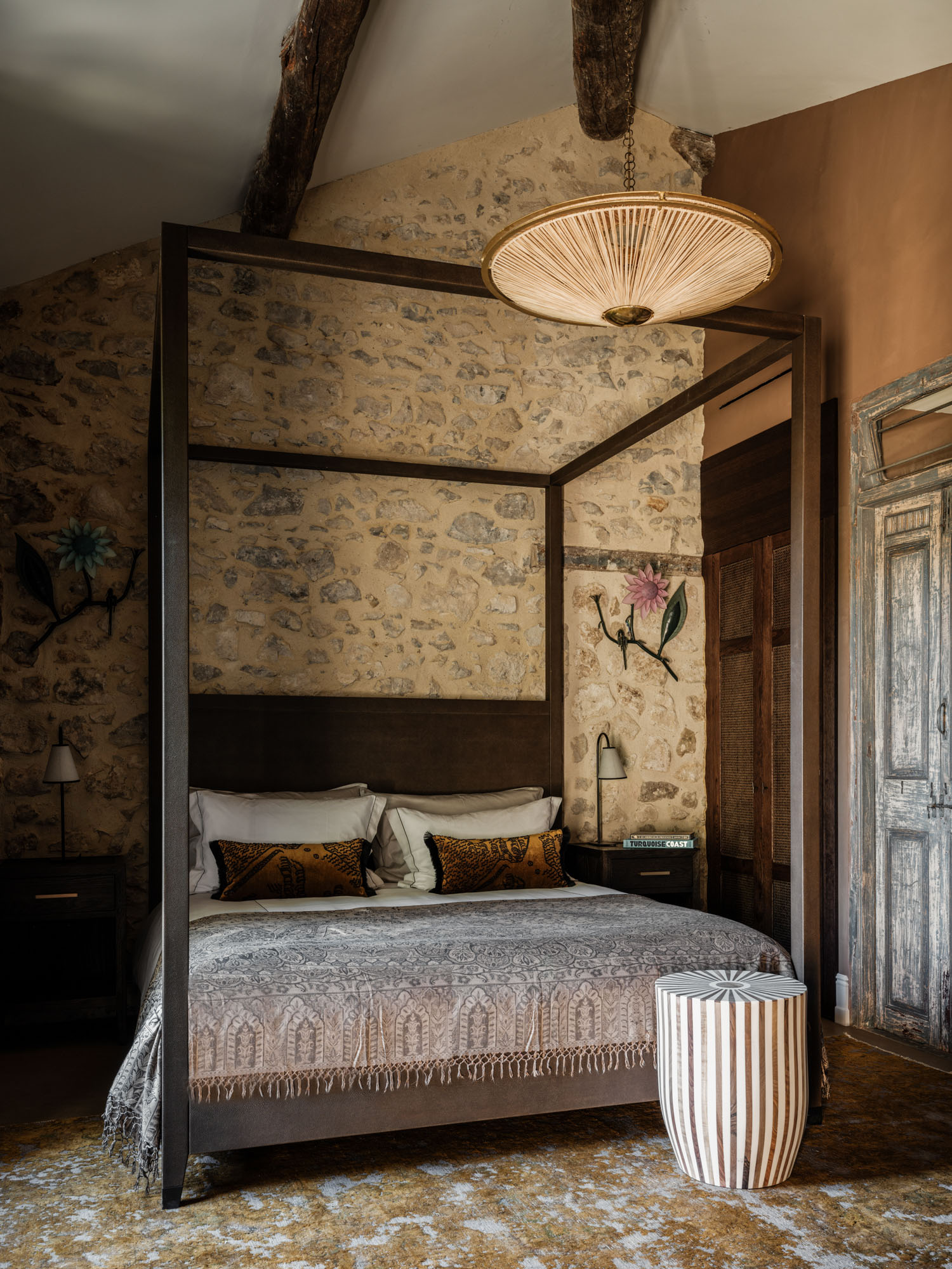 The design embraces natural materials, creating a harmonious and inviting atmosphere. With seven bedrooms, each featuring en suite bathrooms and dressing rooms, every room has its own unique, soothing style, ensuring a calm retreat for all.