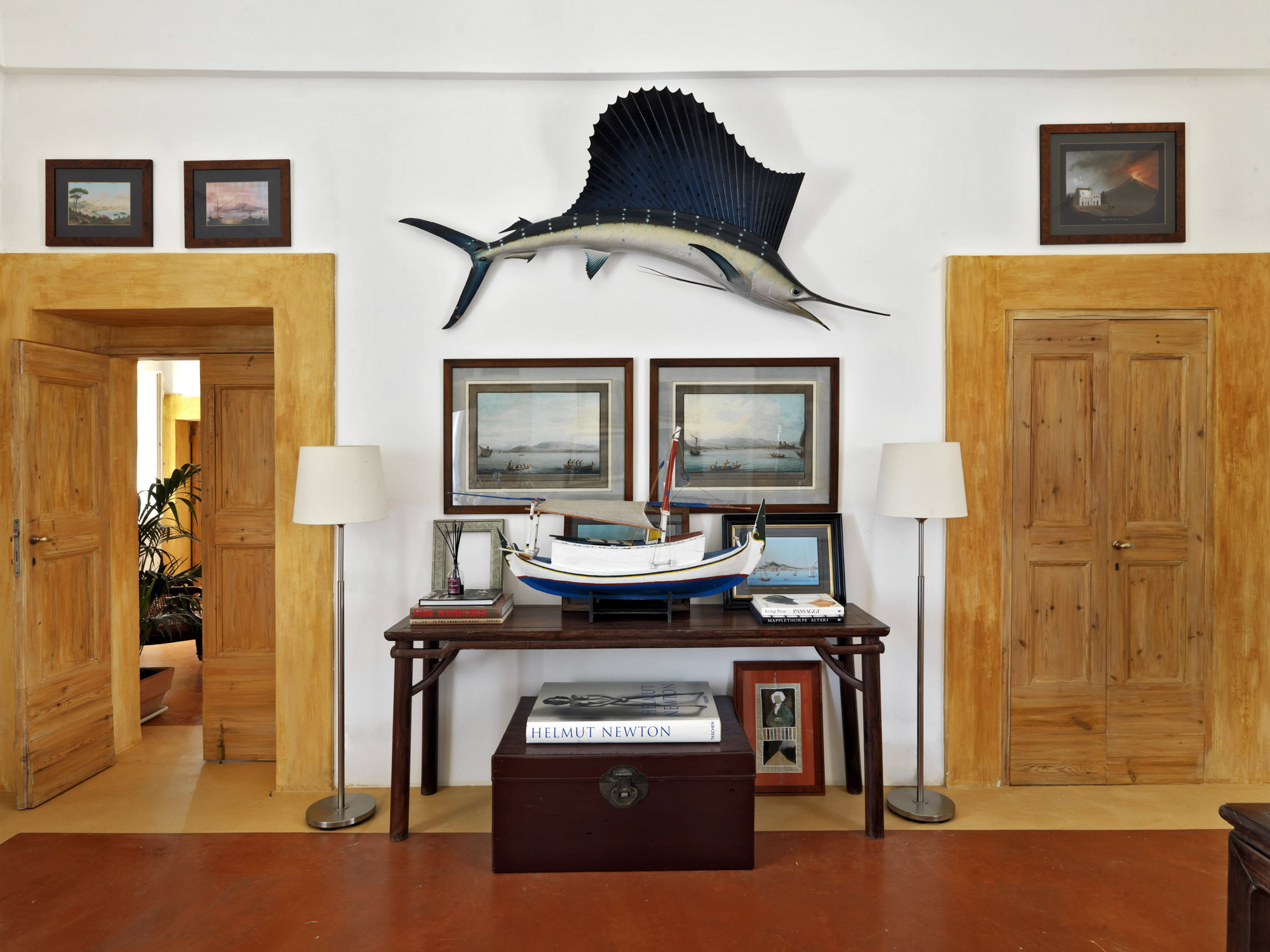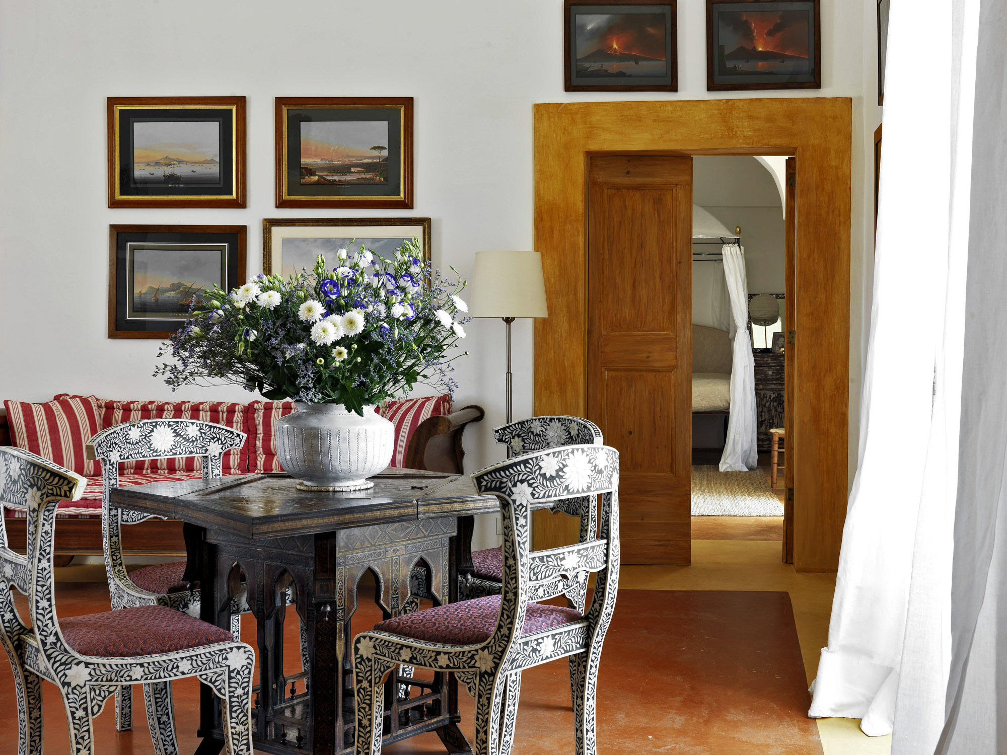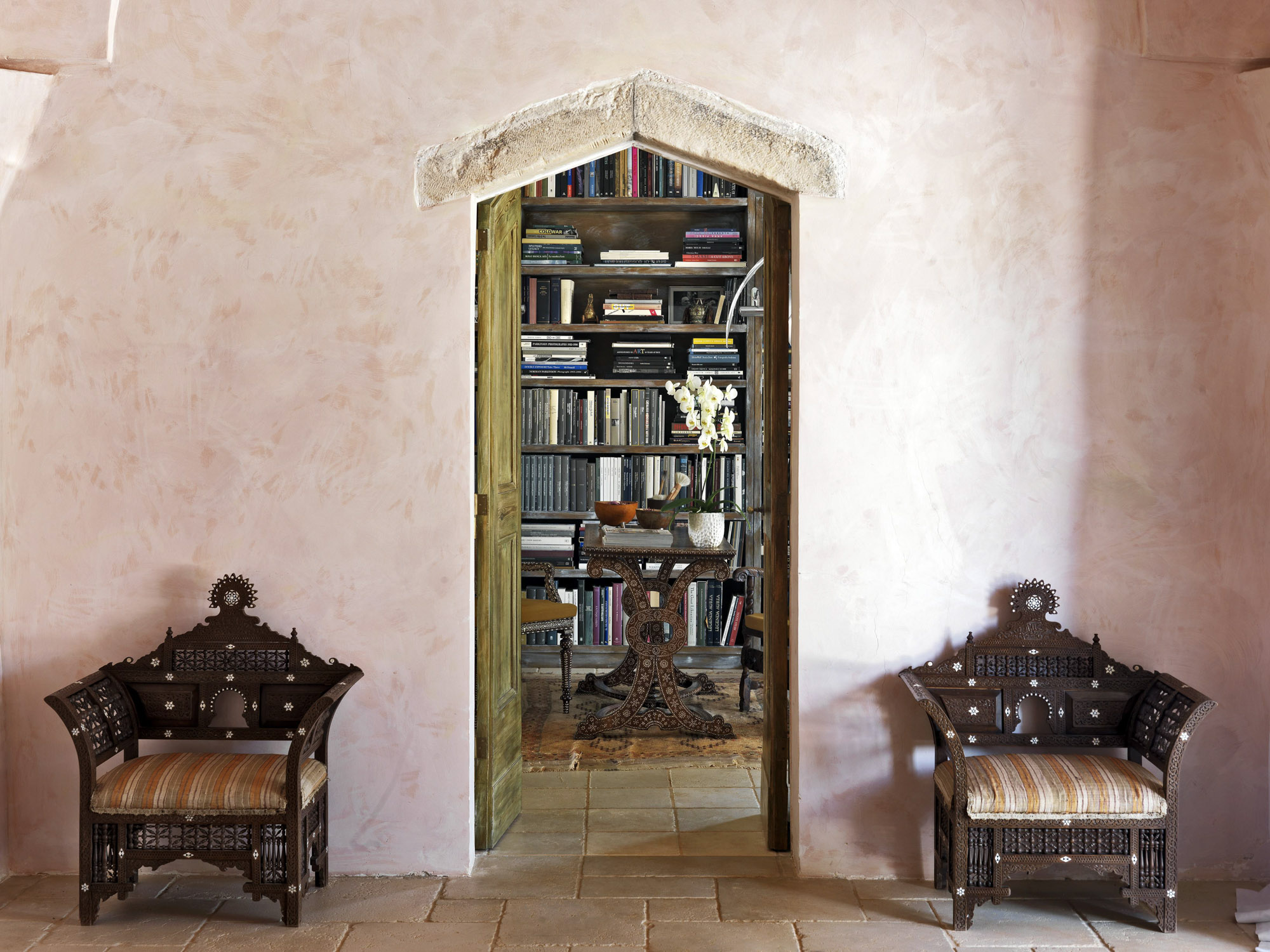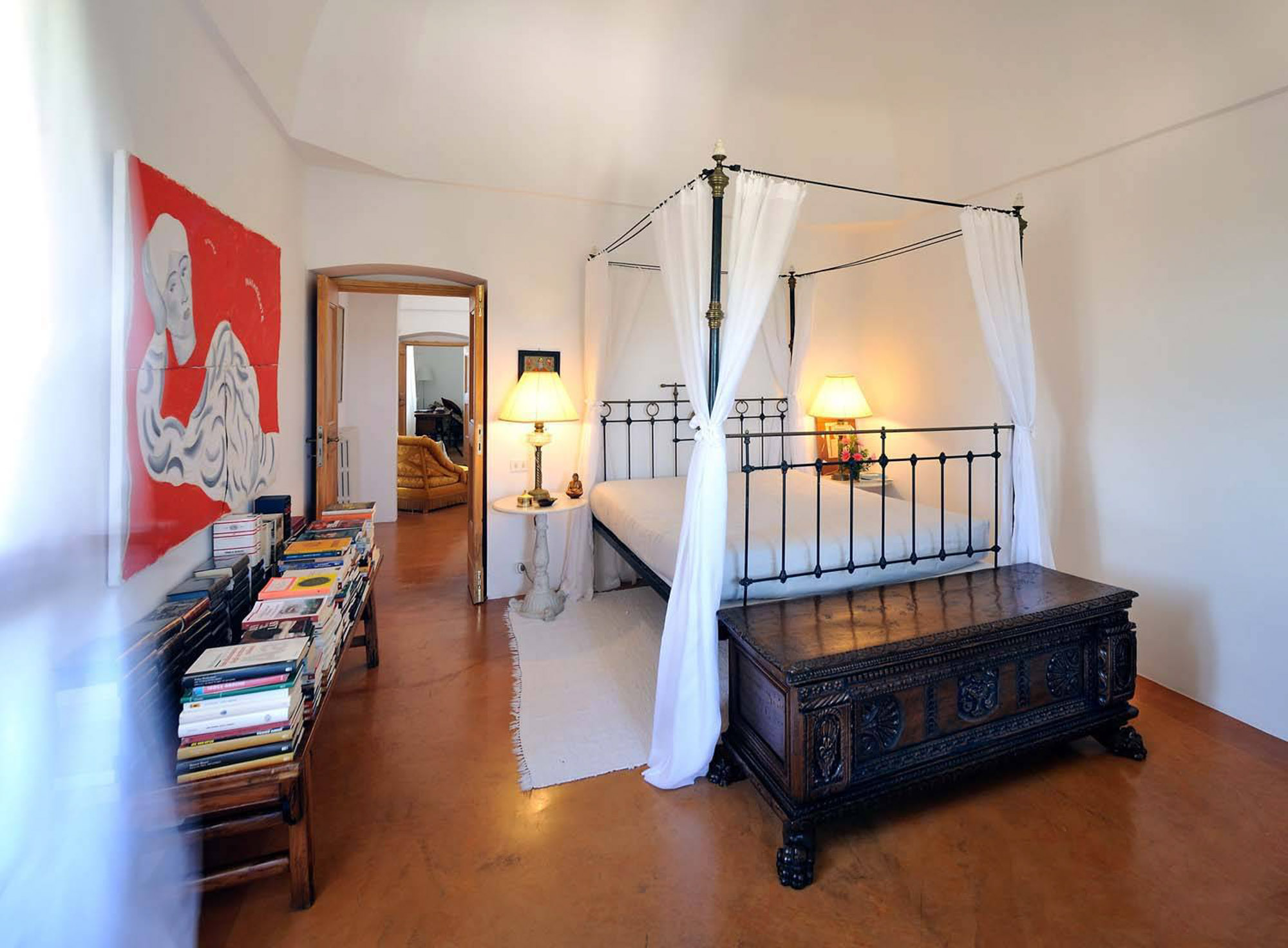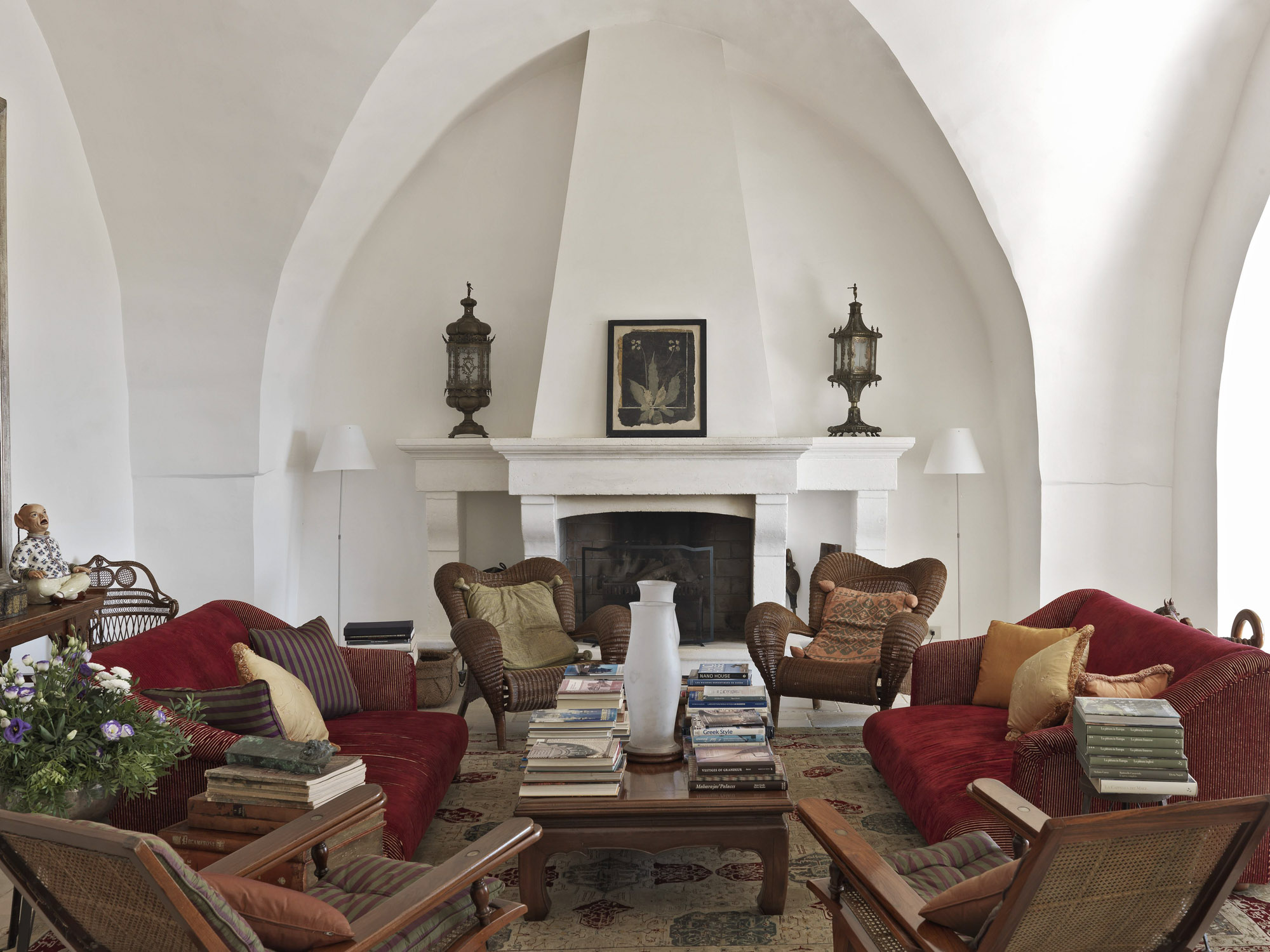 The interiors have the elegance of a rambling country house, with an eclectic mix of modern and antique furniture, artworks, and lots of books.