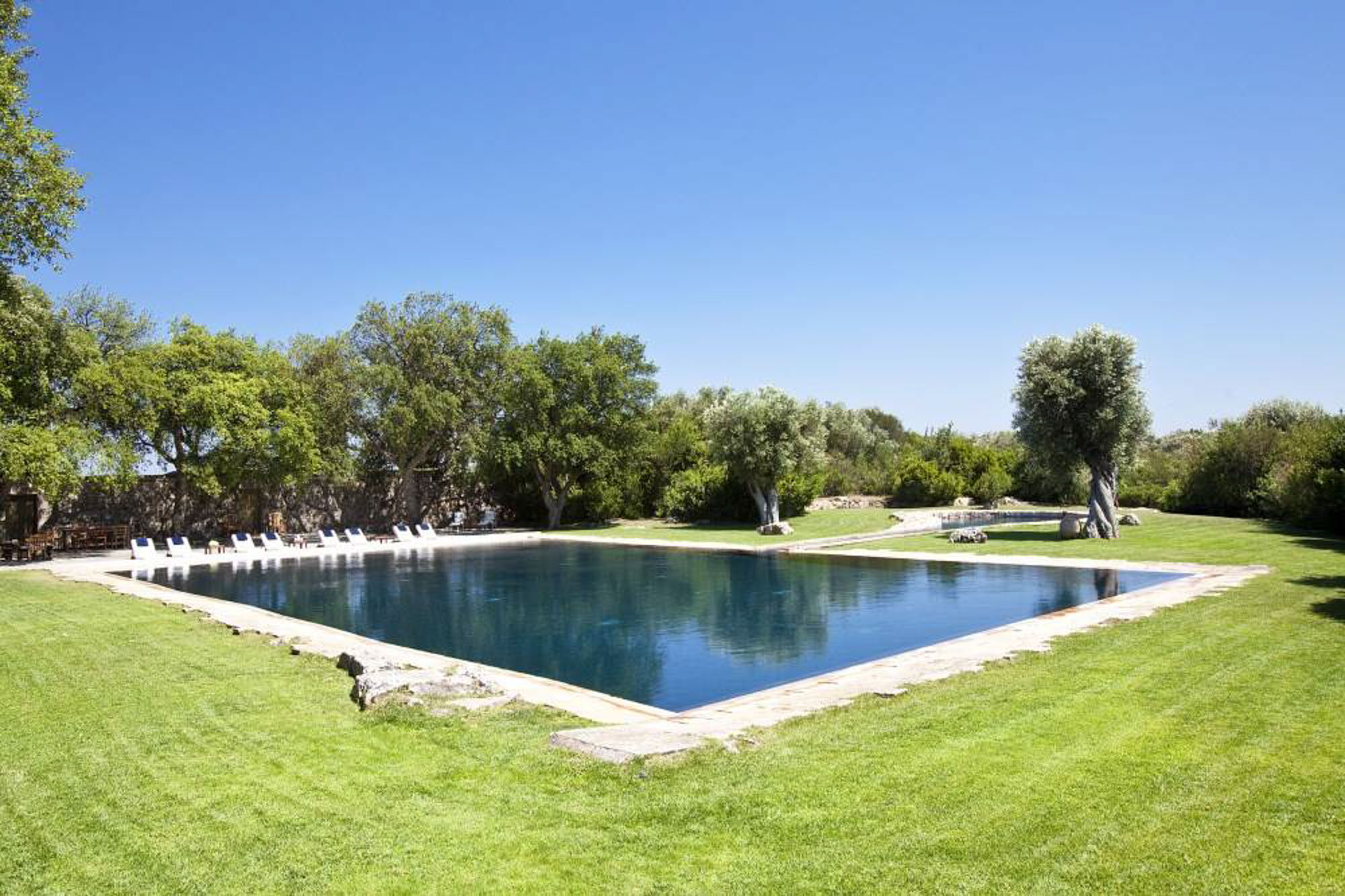 The various courtyards and terraces provide a variety of al fresco dining areas and places to sit and relax in the sun or shade. The black-lined pool, surrounded by green lawns and a stone terrace with sun beds, is a real highlight; you can swim via a canal to a large jacuzzi area for 10. There’s also a pool house with a kitchen, hammam, gym, showers and a dining terrace. This is a favourite spot to enjoy a delicious lunch.