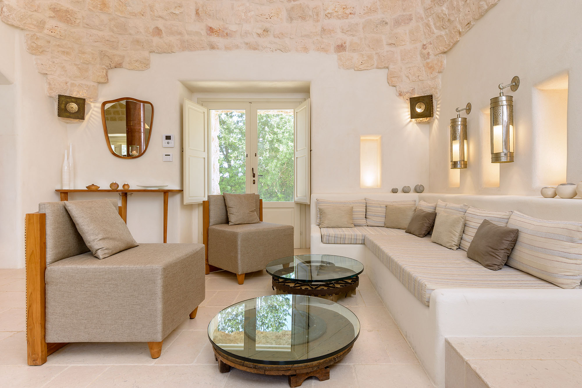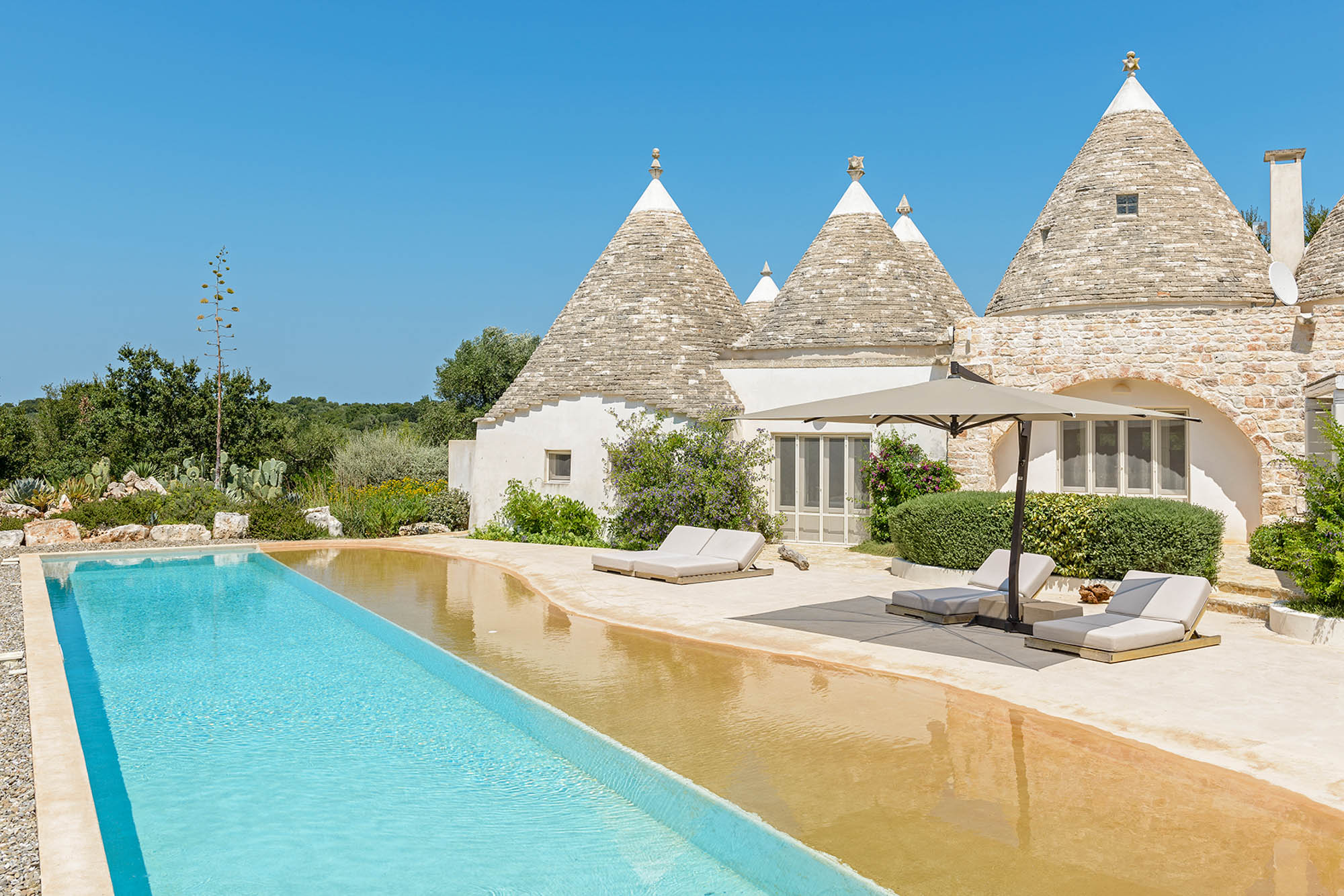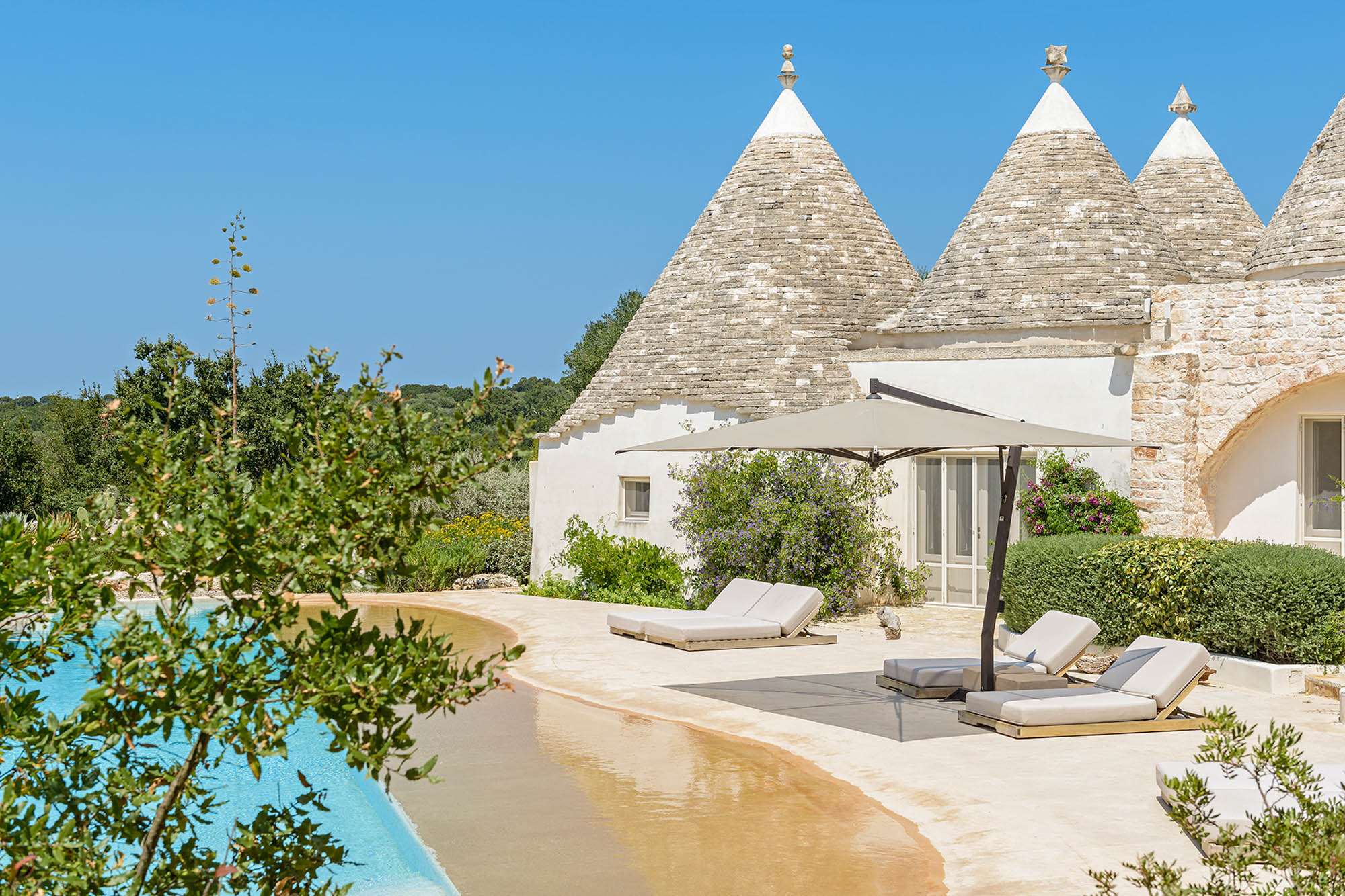 The whitewashed hill towns of Ostuni, Ceglie Messapica, Cisternino, and Martina Franca are within easy reach and are renowned for their charm and exceptional cuisine. Several Michelin-starred restaurants are within 30 minutes, though local hidden gems rival even these. Guests have a choice of Adriatic beaches, about 25 minutes away, or Ionian beaches, around 40 minutes away, each with clear waters, sand dunes, and beachside dining. Lecce’s Baroque architecture, the Roman ruins at Egnazia, and historic coastal cathedrals are all nearby for cultural excursions.