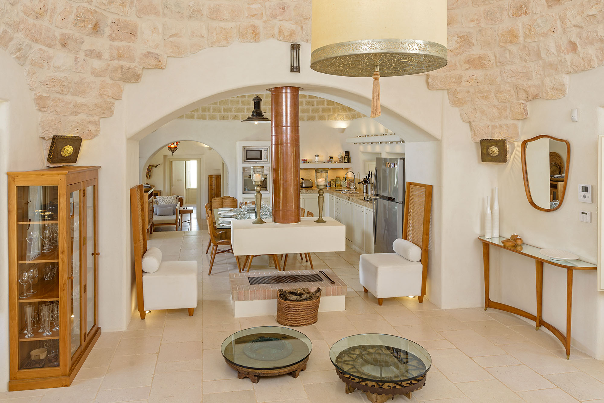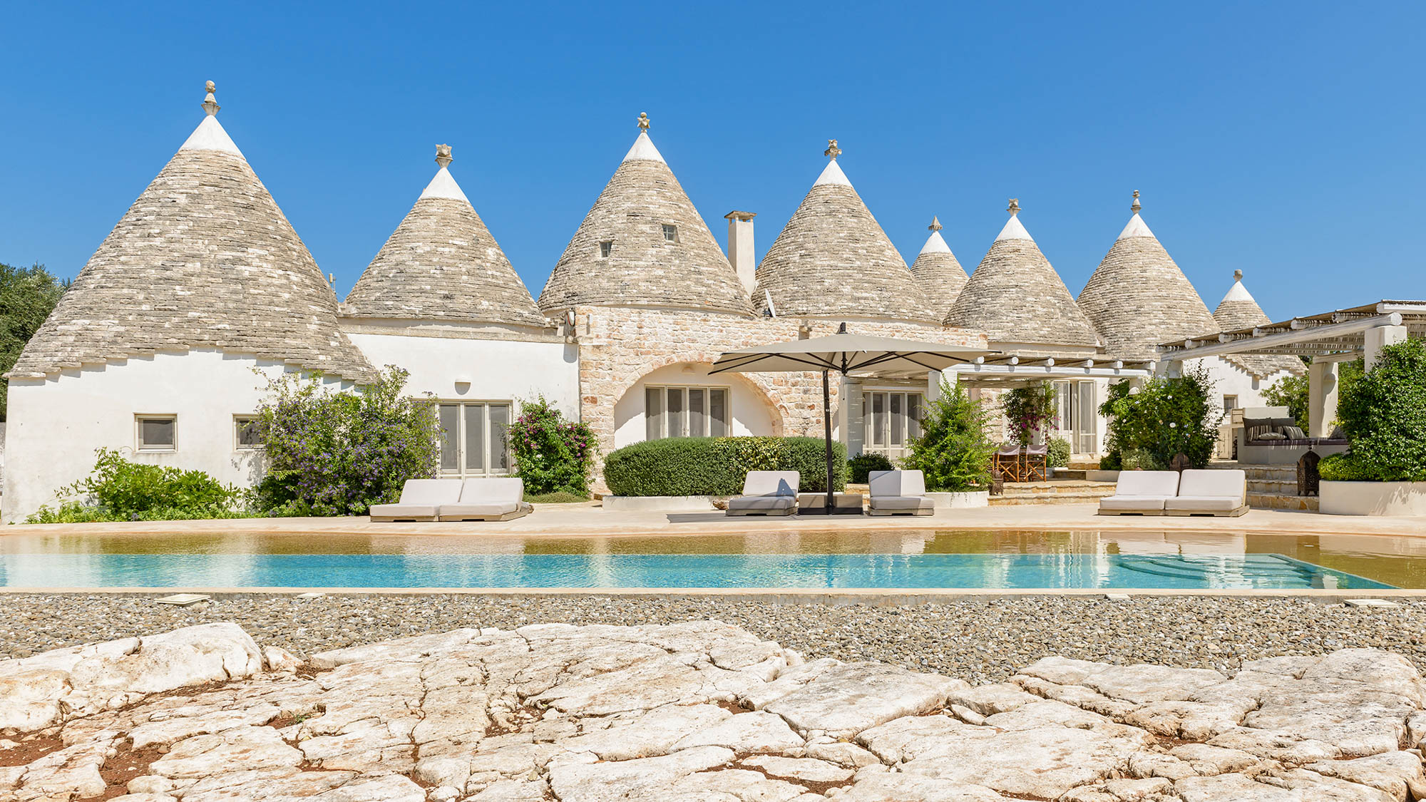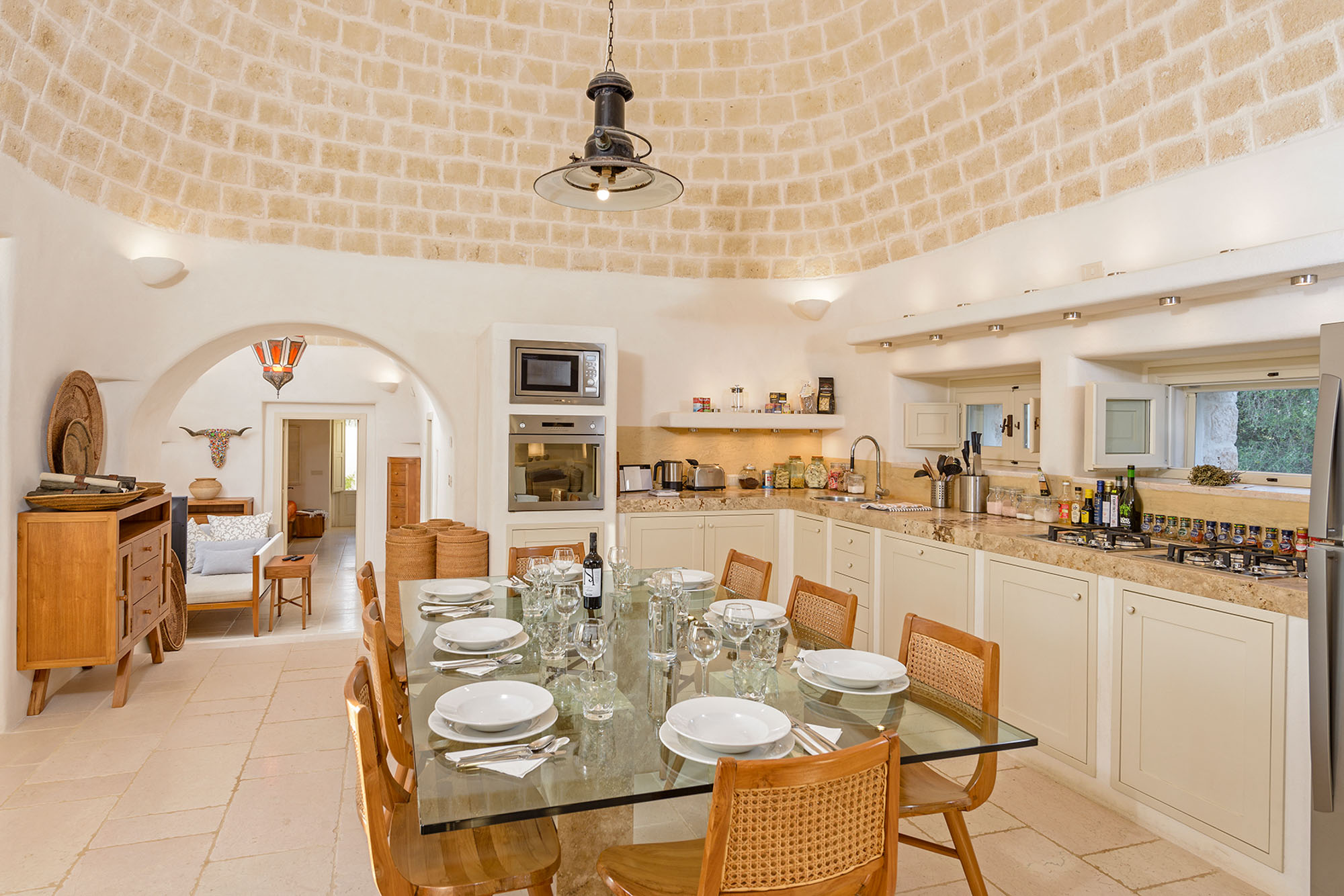 The whitewashed hill towns of Ostuni, Ceglie Messapica, Cisternino, and Martina Franca are within easy reach and are renowned for their charm and exceptional cuisine. Several Michelin-starred restaurants are within 30 minutes, though local hidden gems rival even these. Guests have a choice of Adriatic beaches, about 25 minutes away, or Ionian beaches, around 40 minutes away, each with clear waters, sand dunes, and beachside dining. Lecce’s Baroque architecture, the Roman ruins at Egnazia, and historic coastal cathedrals are all nearby for cultural excursions.