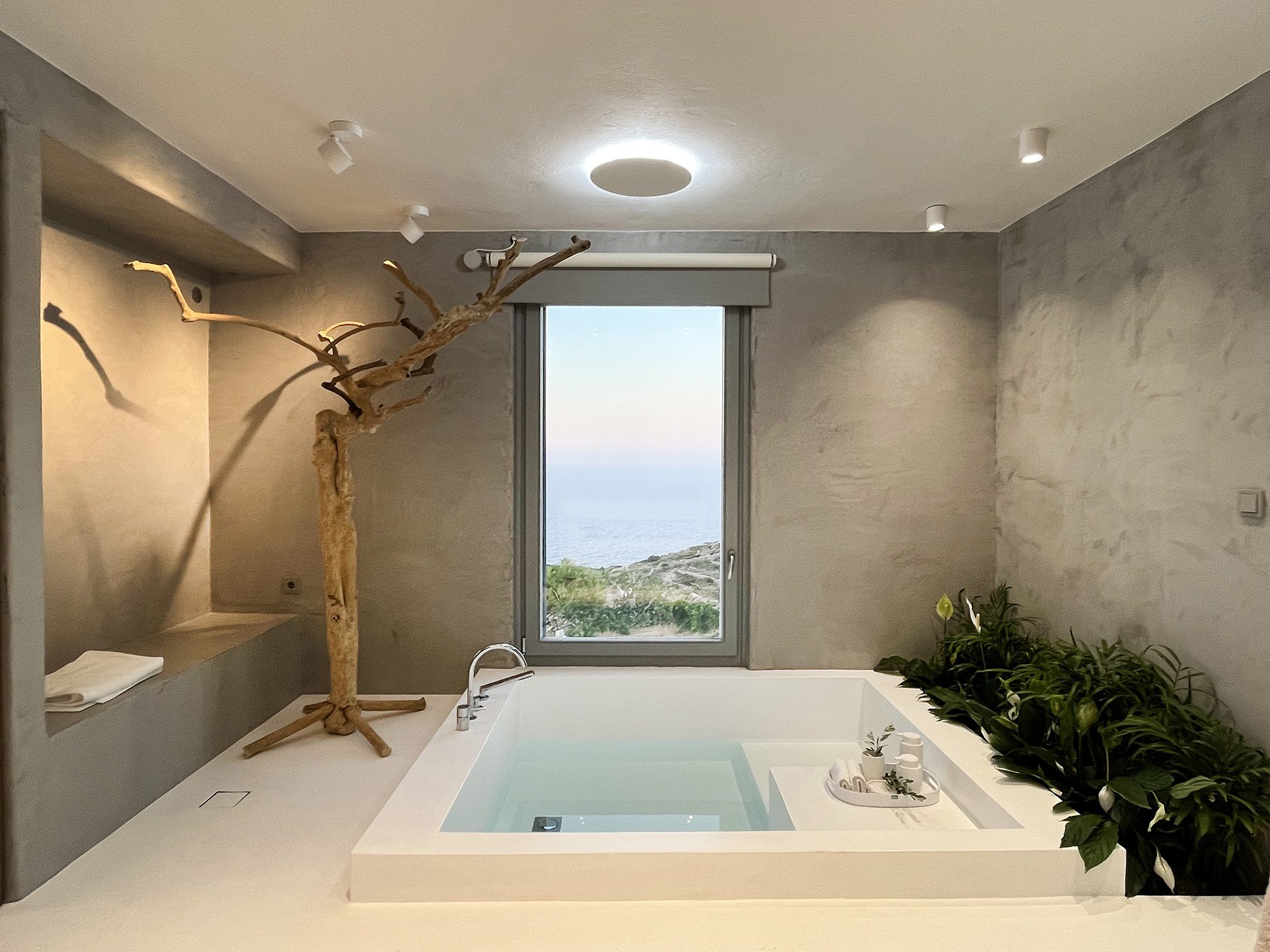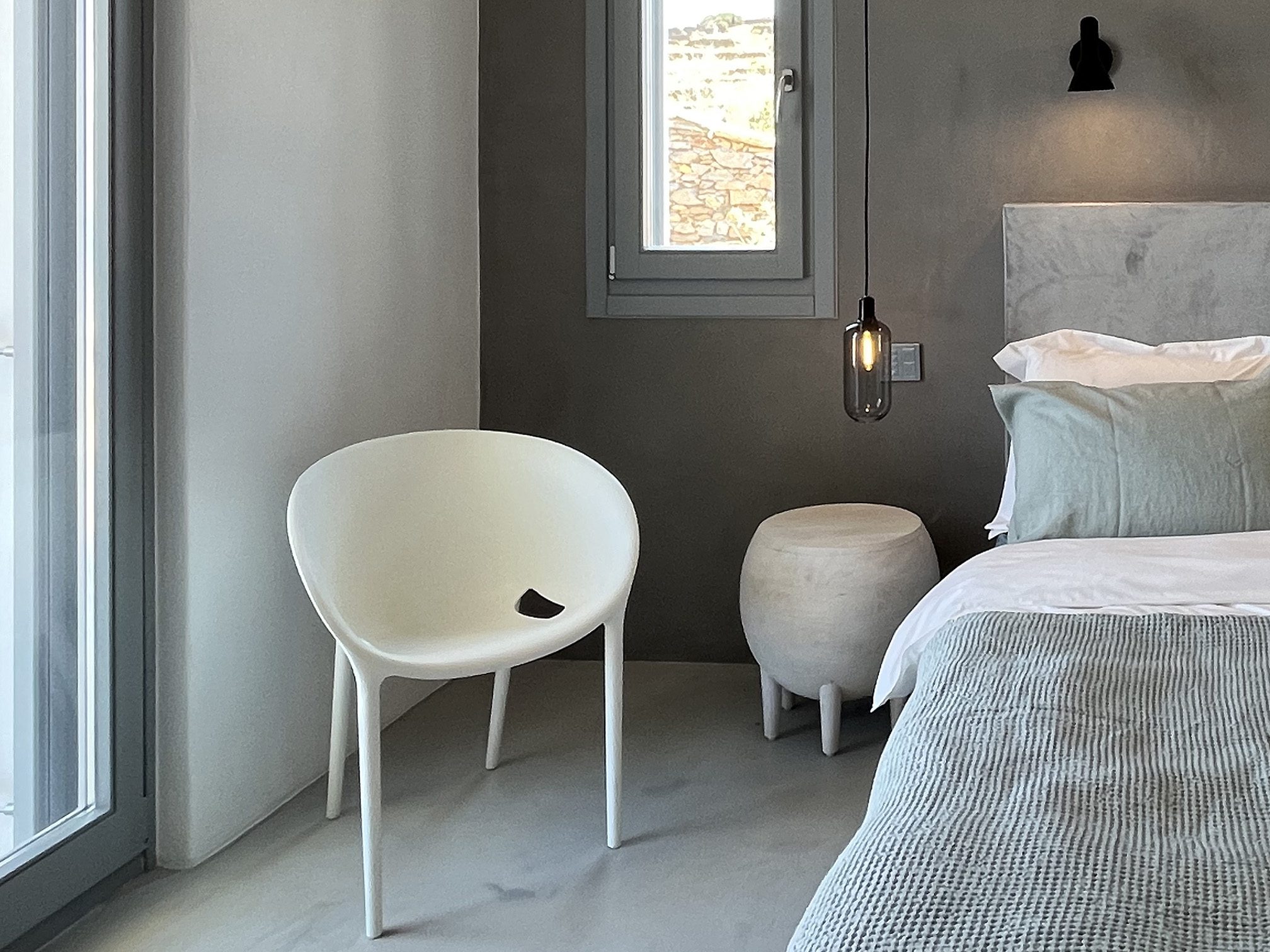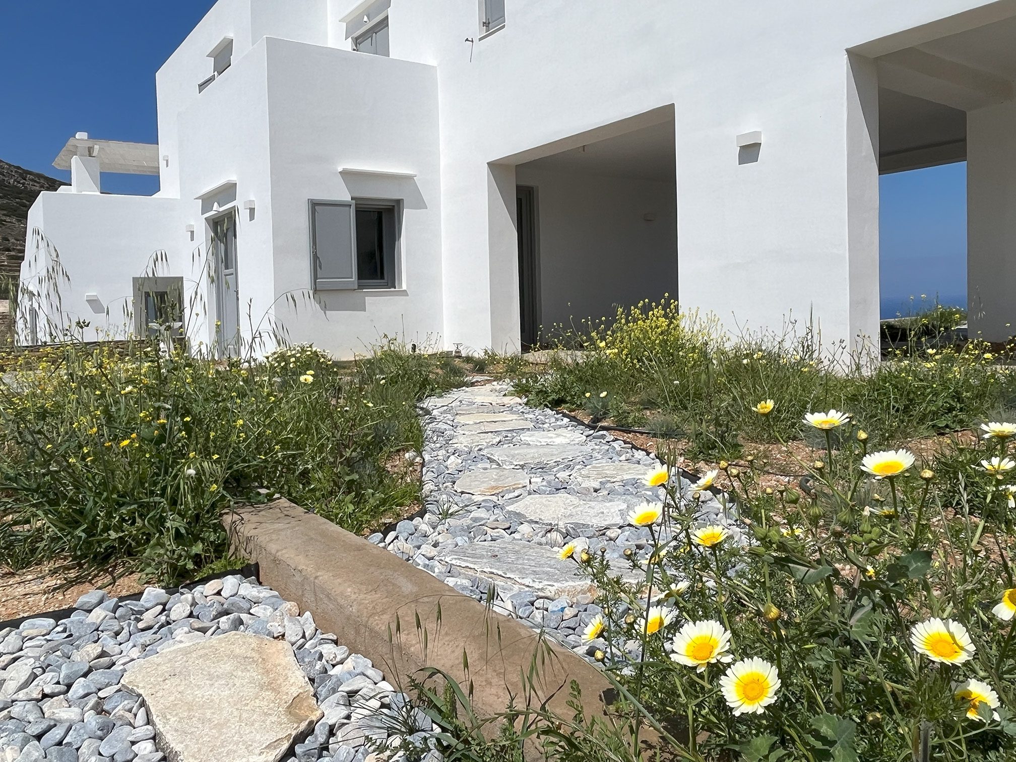 The design externally honours traditional Cycladean vernacular style, with a modernist internal influence and strong consideration for sustainability. Within the estate are fields of wheat, a working vineyard, olive groves and orchards. Early summer sees swathes of wildflowers. If you venture further afield Sifnos has a great food scene, sandy beaches and historic villages to explore.