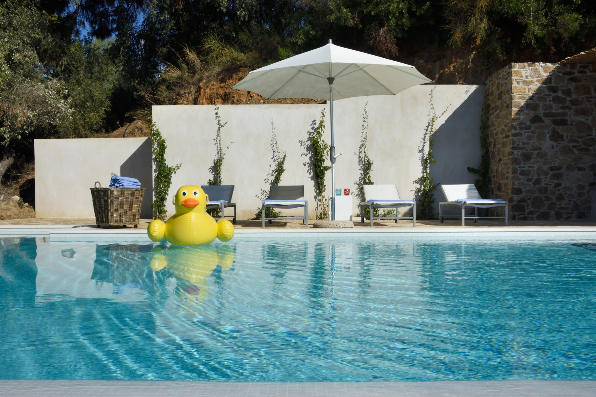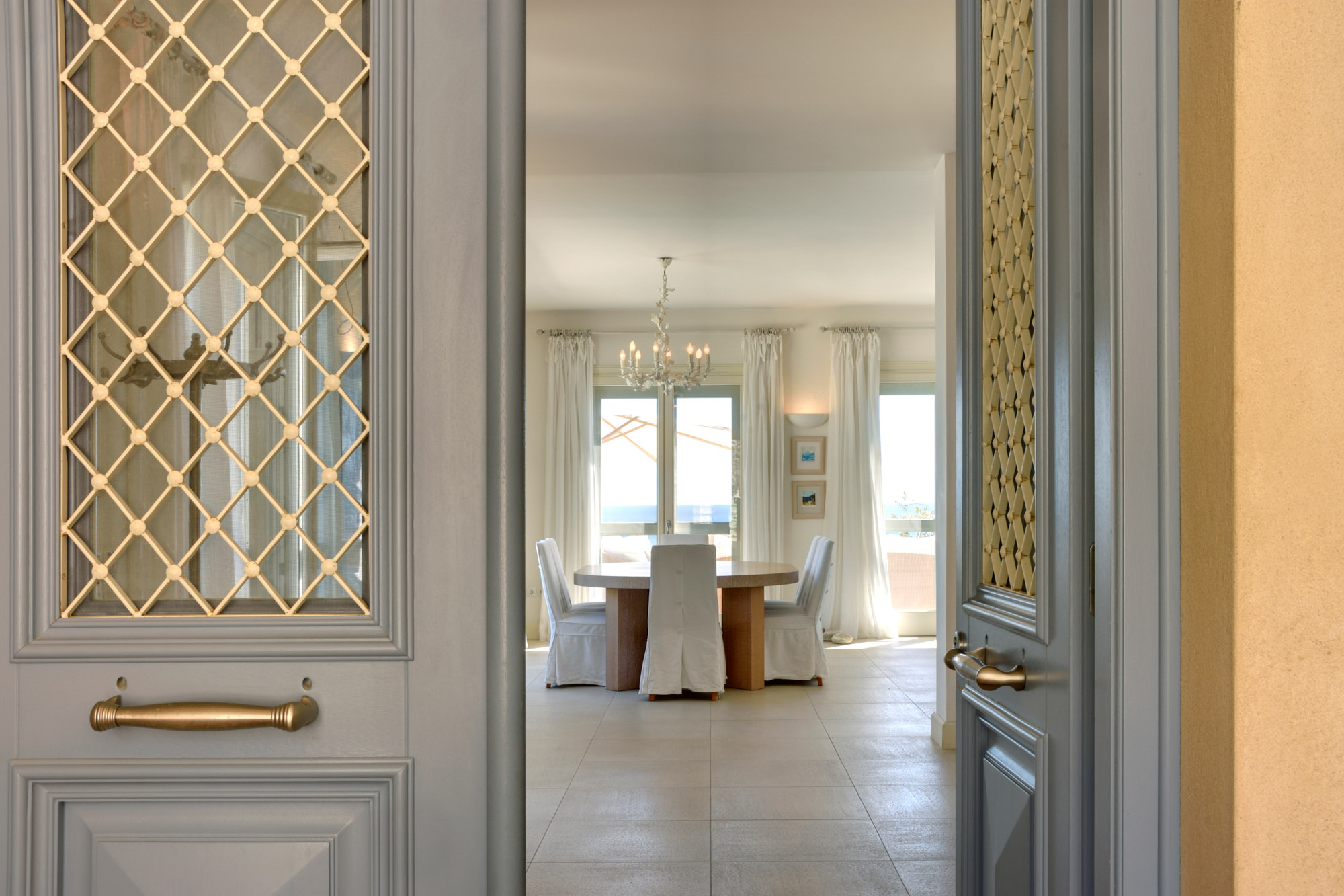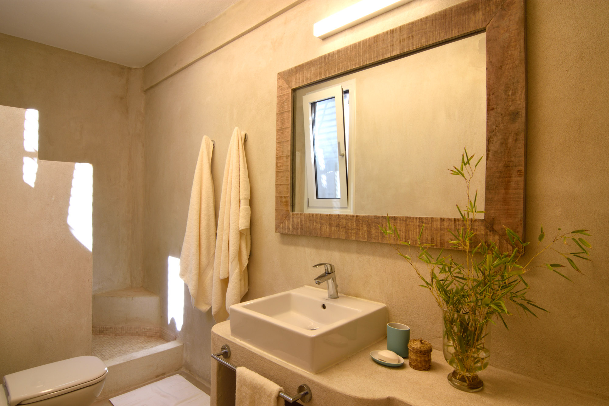 Paraliaki spans three floors and includes five large bedrooms, highlighted by a master suite with a private balcony and a study. An open-plan living and dining area, seating up to 14, opens onto a terrace perfect for gathering. Thalassia’s five bedrooms are spread over two floors, with many leading to shaded verandas that offer cosy seating areas and direct outdoor access.