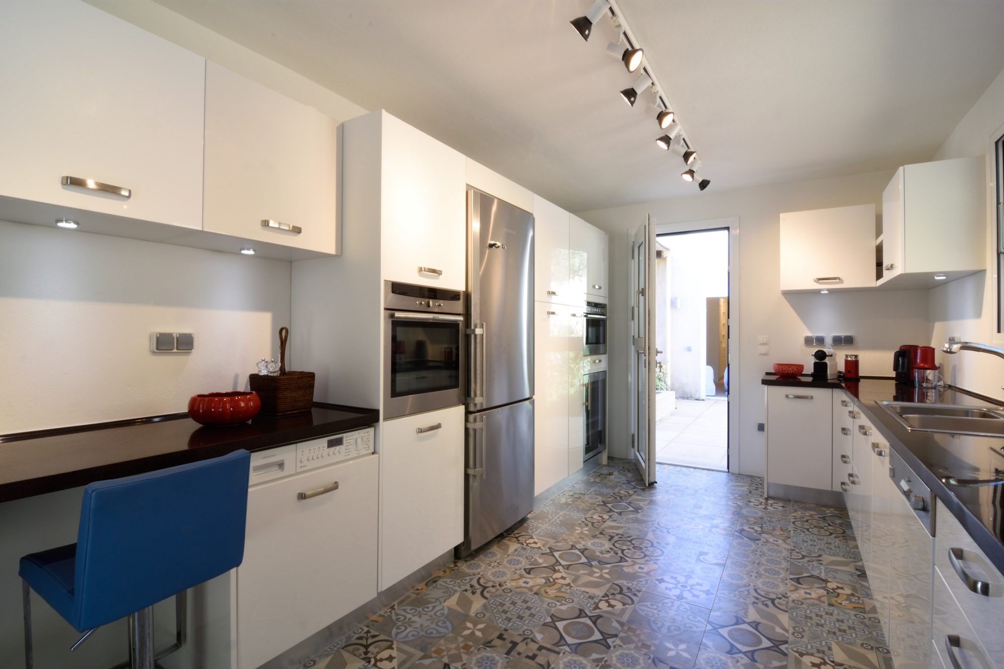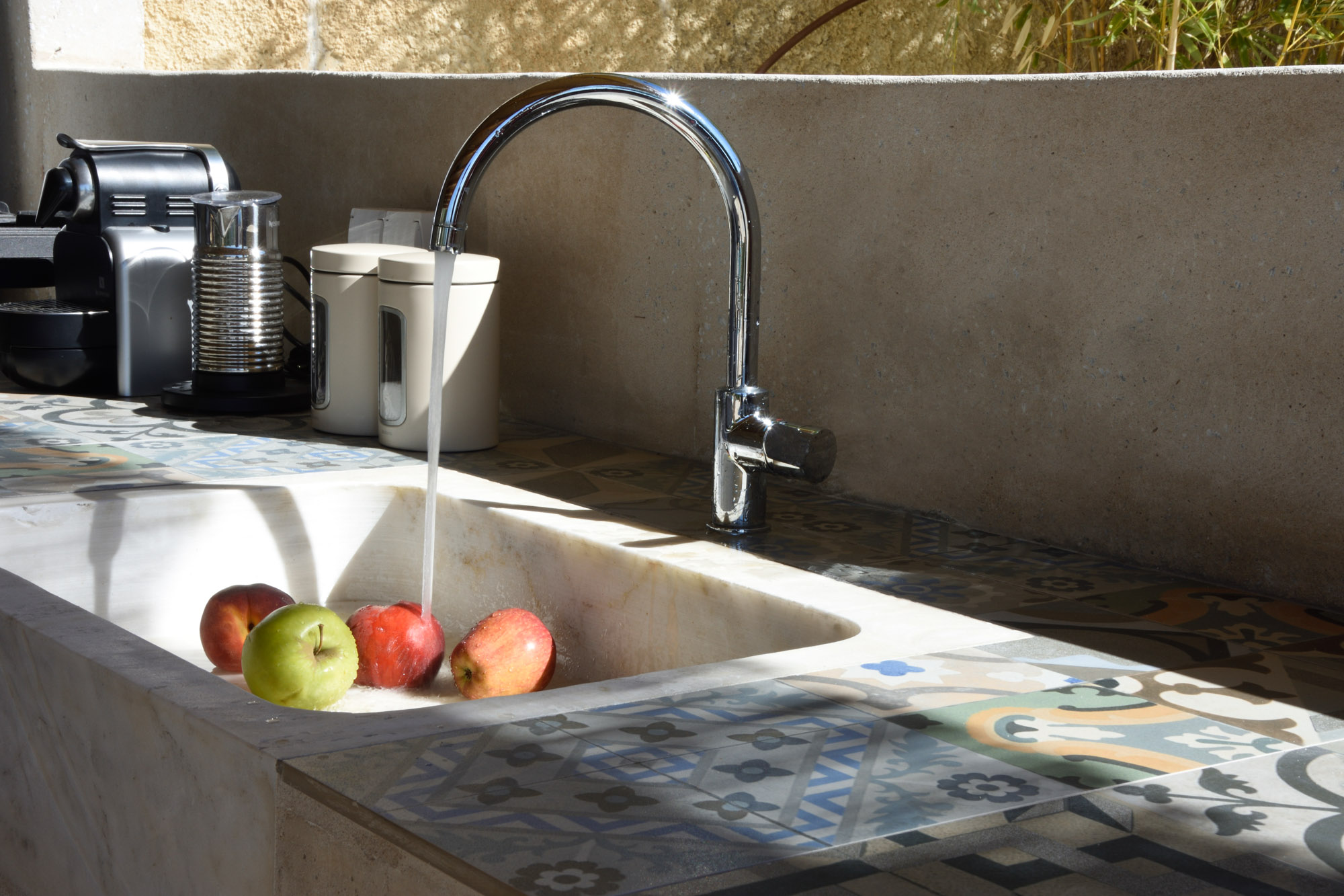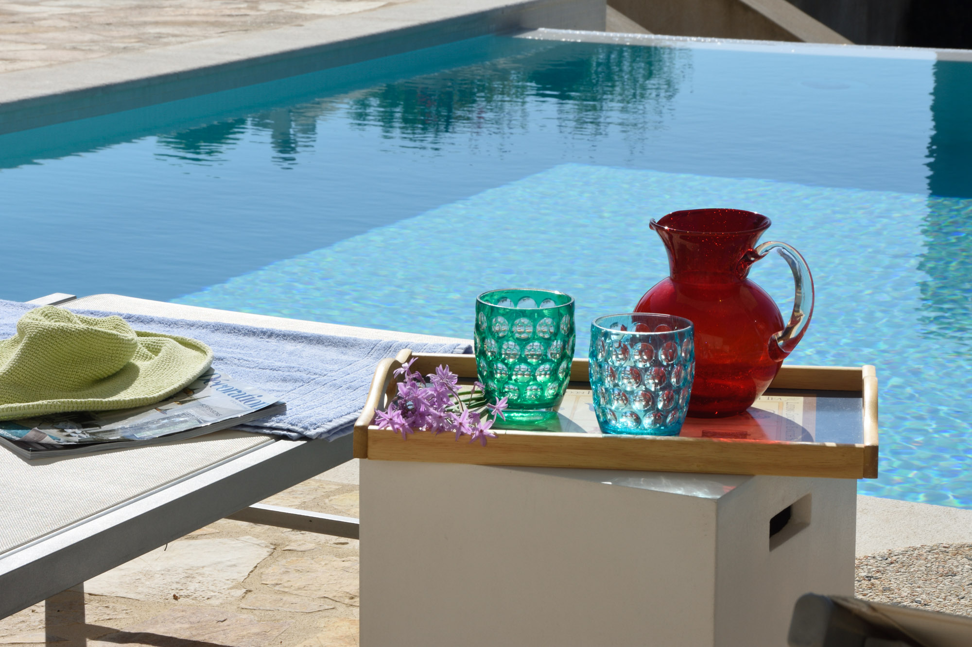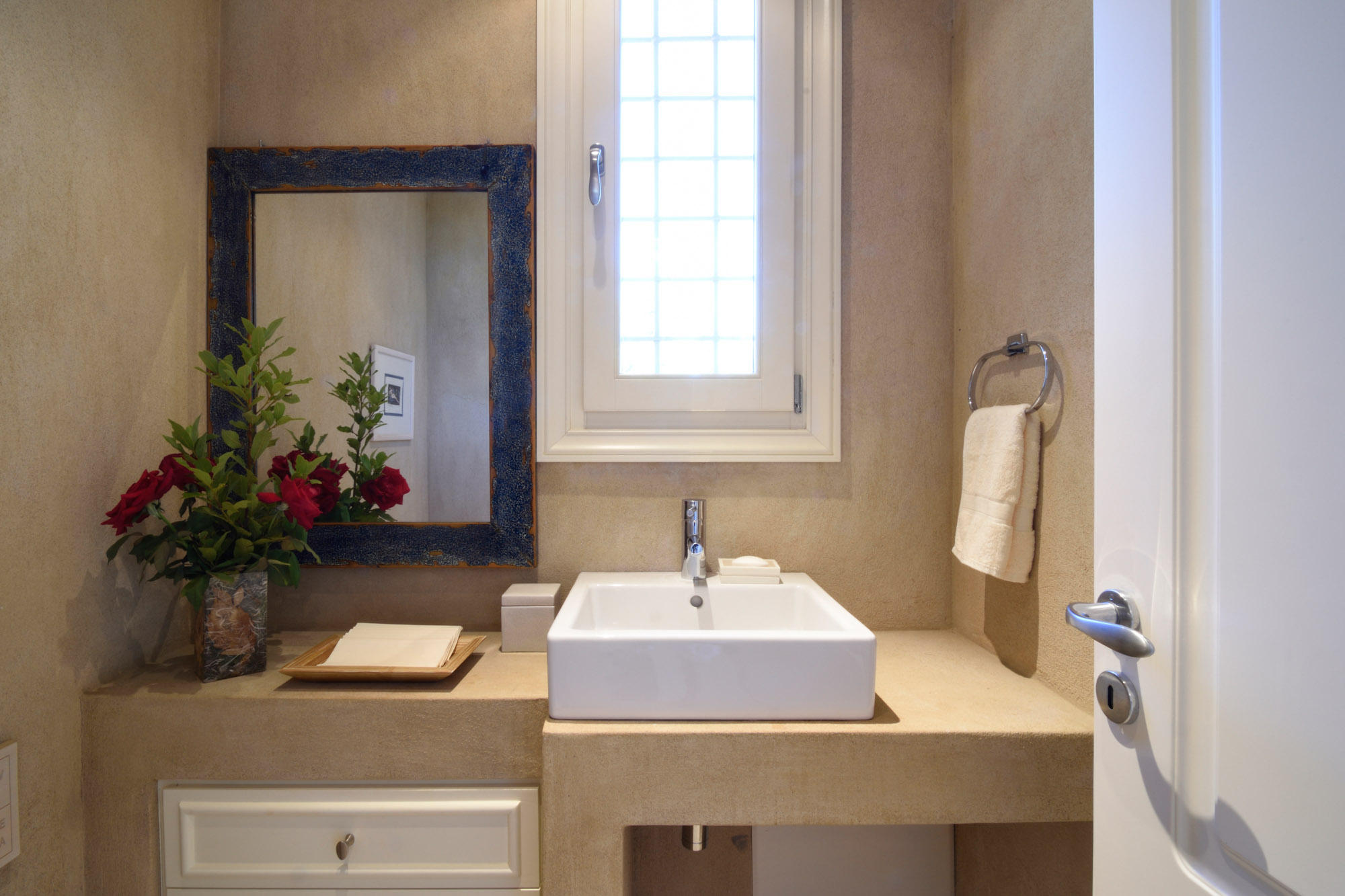 Paraliaki spans three floors and includes five large bedrooms, highlighted by a master suite with a private balcony and a study. An open-plan living and dining area, seating up to 14, opens onto a terrace perfect for gathering. Thalassia’s five bedrooms are spread over two floors, with many leading to shaded verandas that offer cosy seating areas and direct outdoor access.
