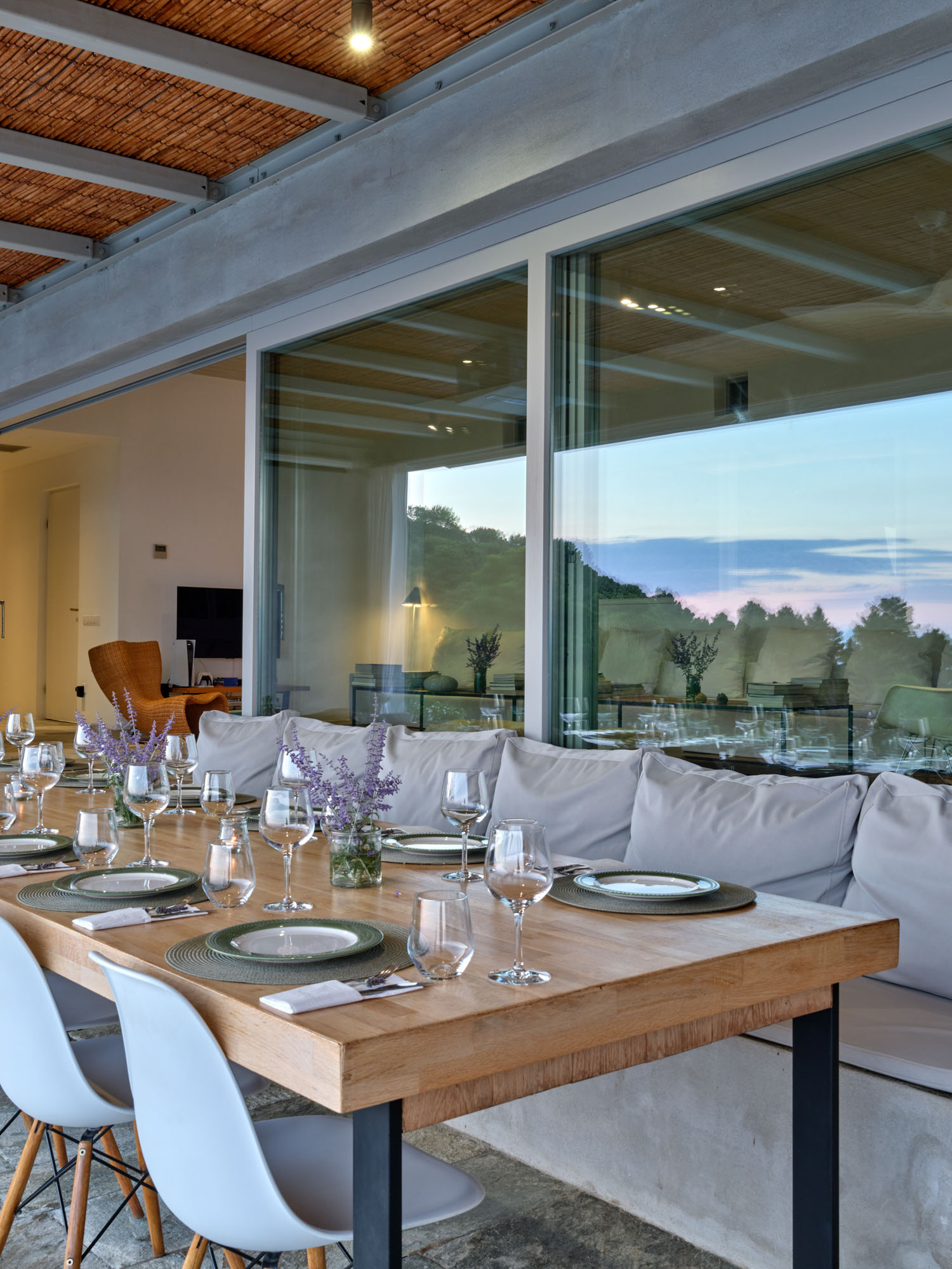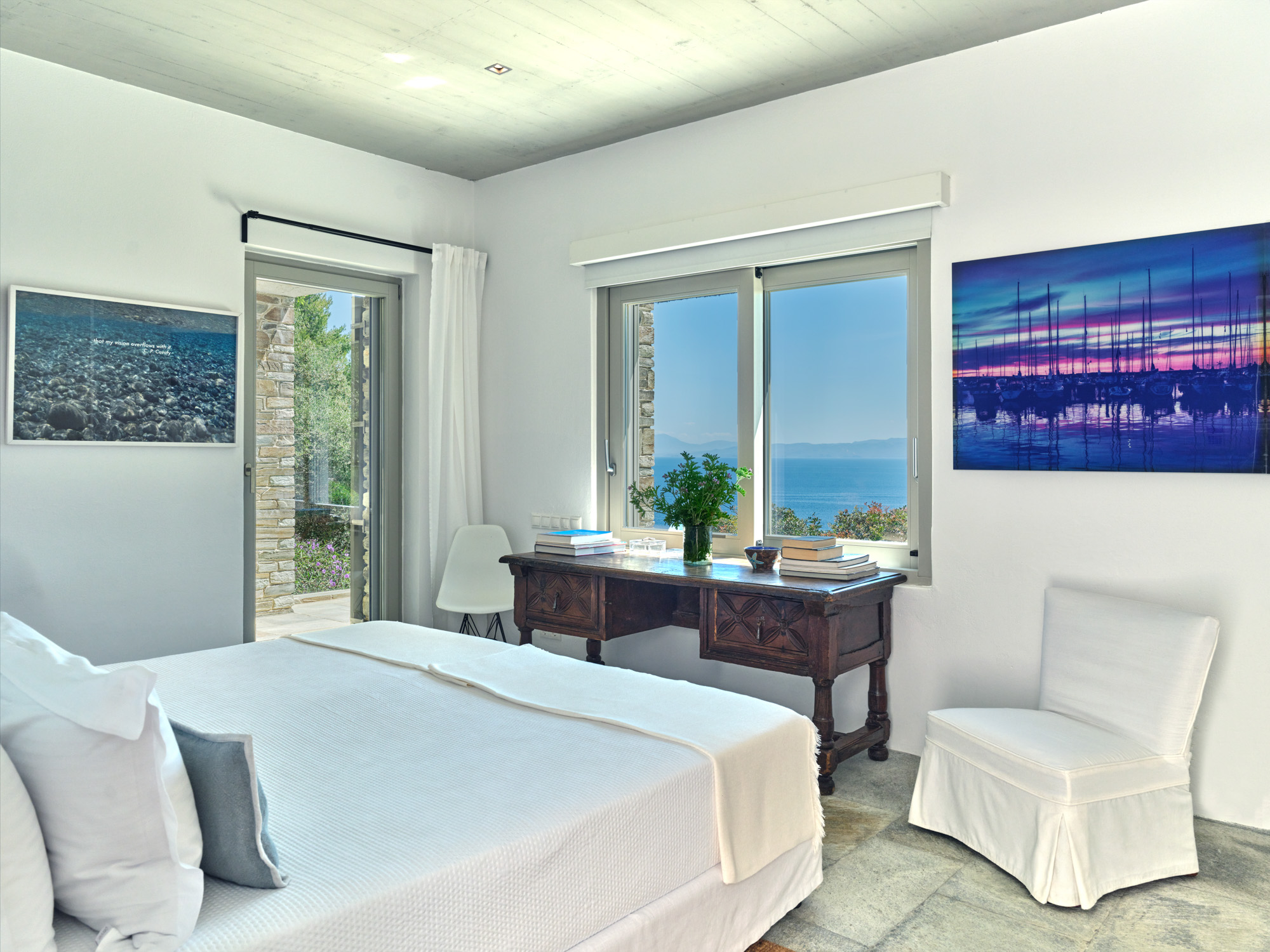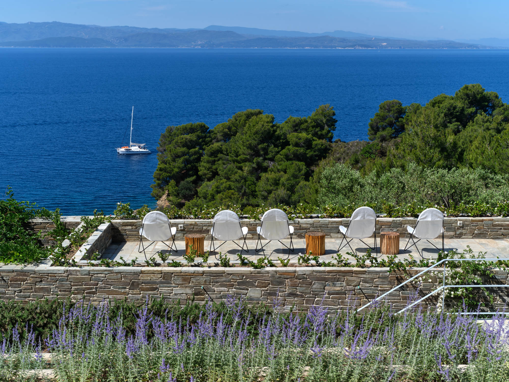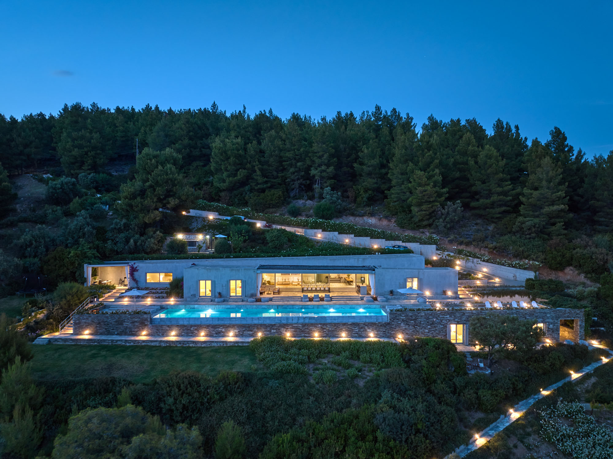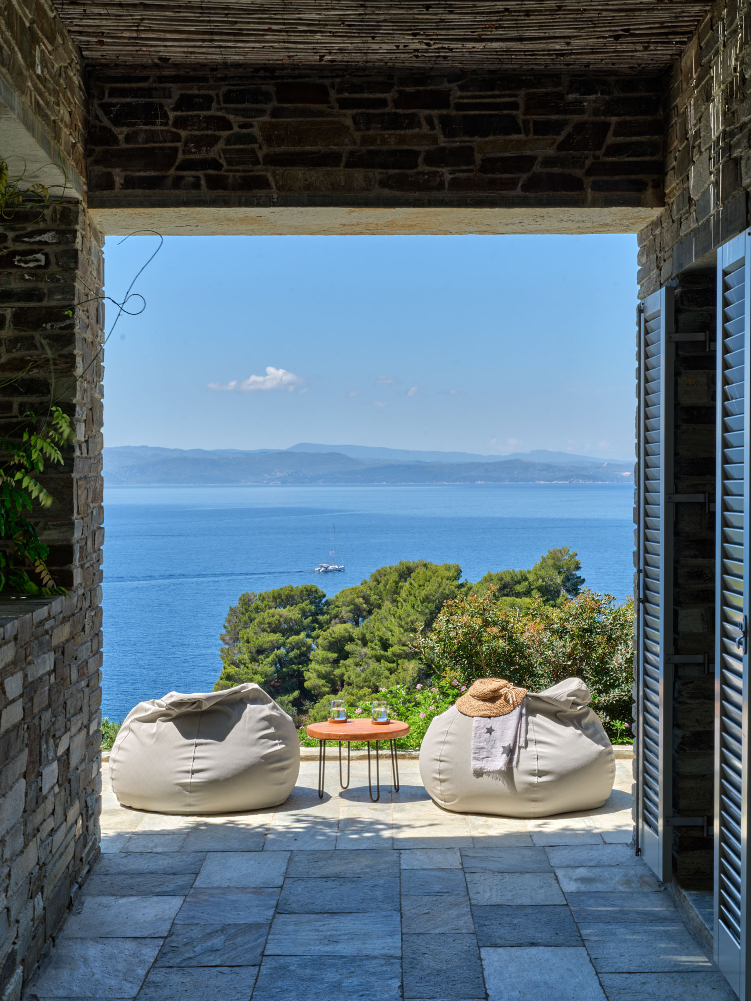 Tzaneria Beach, only a 5-minute drive away, offers lively beach clubs and watersports, while a variety of other beaches, tavernas, and coastal spots lie within a short drive. For a day on the water, guests can also arrange a skippered boat trip to explore the nearby island of Skopelos, adding a memorable dimension to the stay.