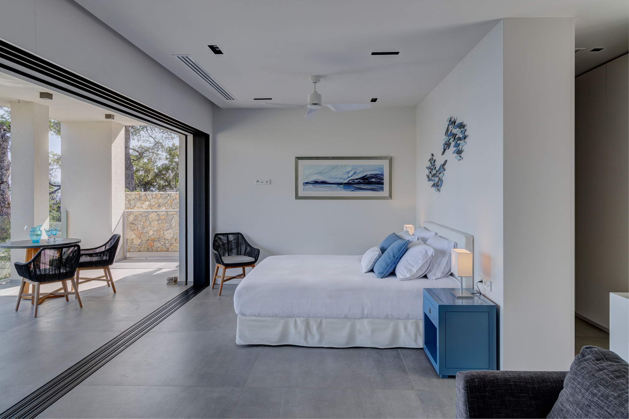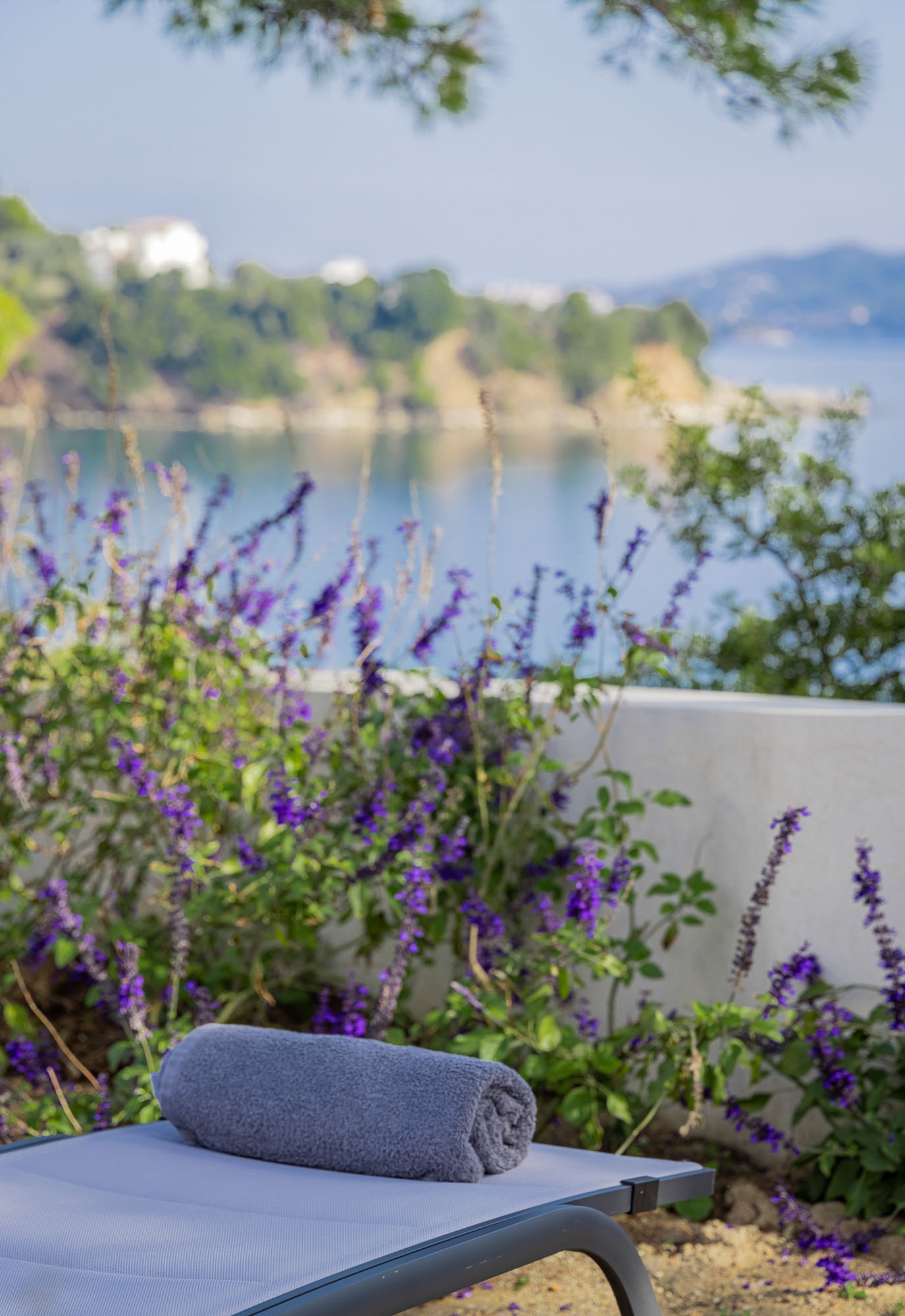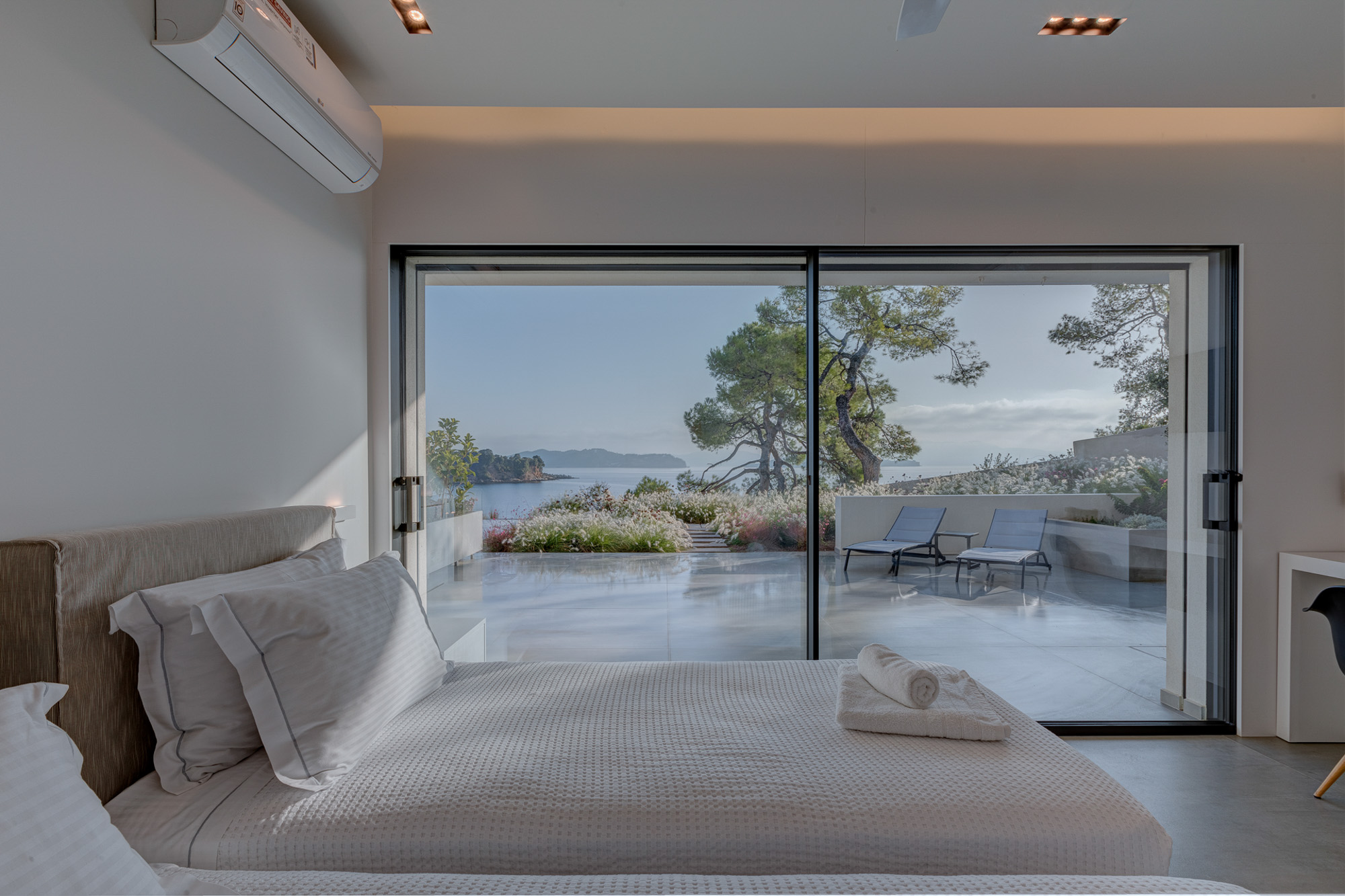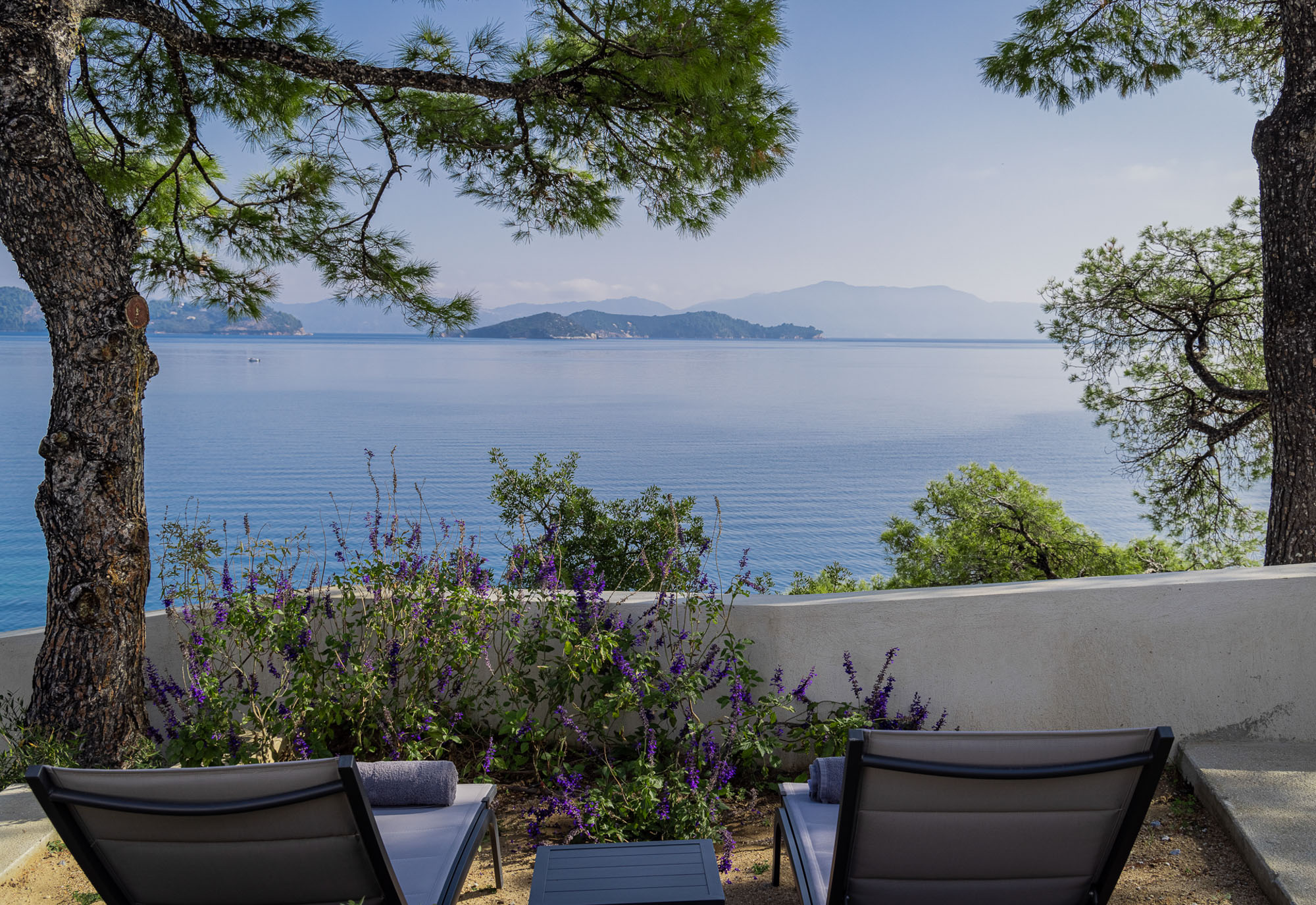 A few minutes on foot brings you to a local taverna at Paralia Achladies, while Tzaneria Beach, known for its beach clubs and watersports, is just a short drive away. With its array of shops, eateries, and nightlife, Skiathos Town is a quick 10-minute drive, along with easy access to the port for boat trips to nearby islands like Tsoungrias, Skopelos, and Alonissos.