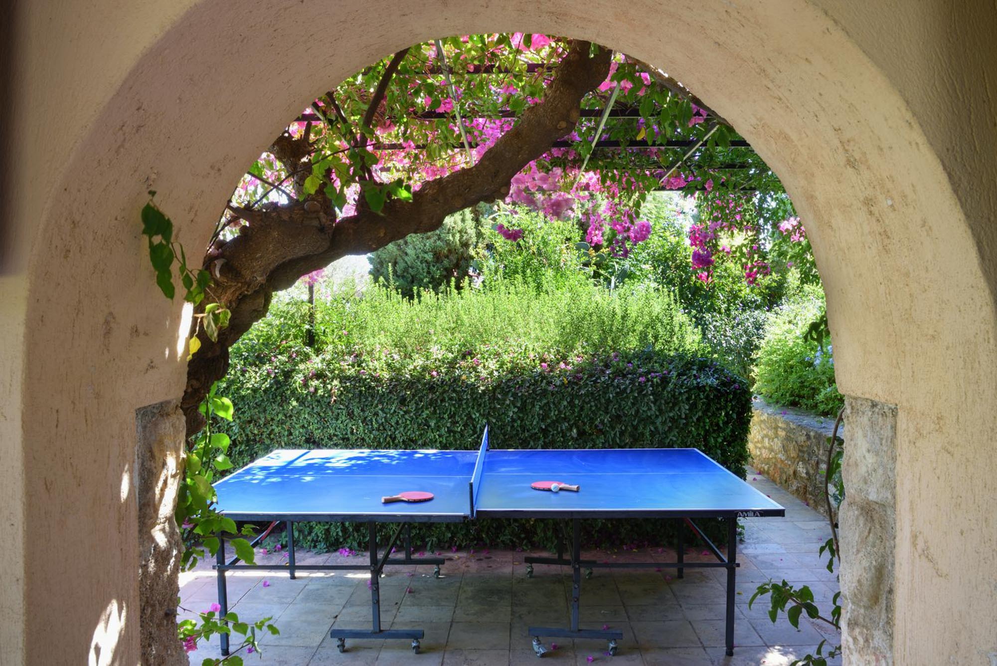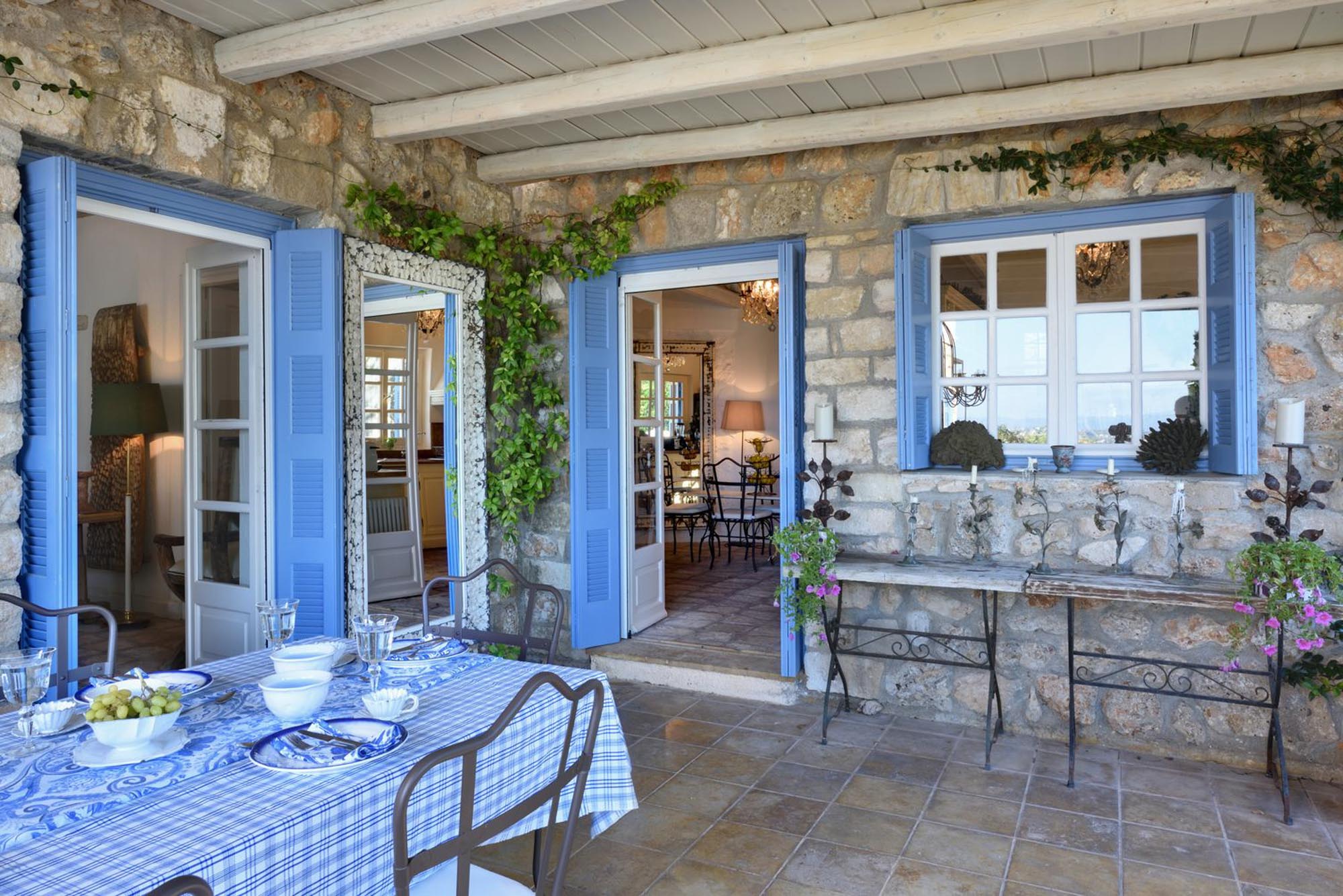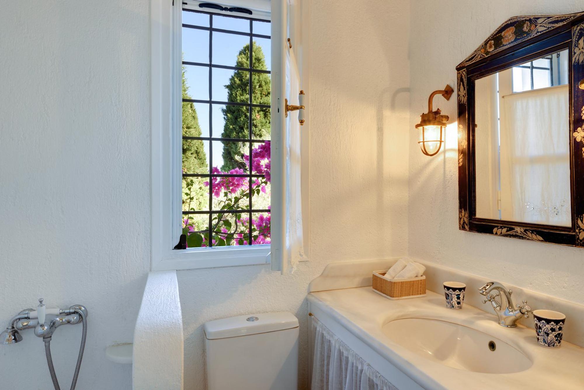 The garden features a traditional charcoal BBQ, two expansive outdoor dining tables, and several cosy lounge areas perfect for unwinding. Three generous balconies provide breathtaking views of the swimming pool, the Saronic Gulf and Hydra, the beautiful garden, and the vibrant town of Spetses.