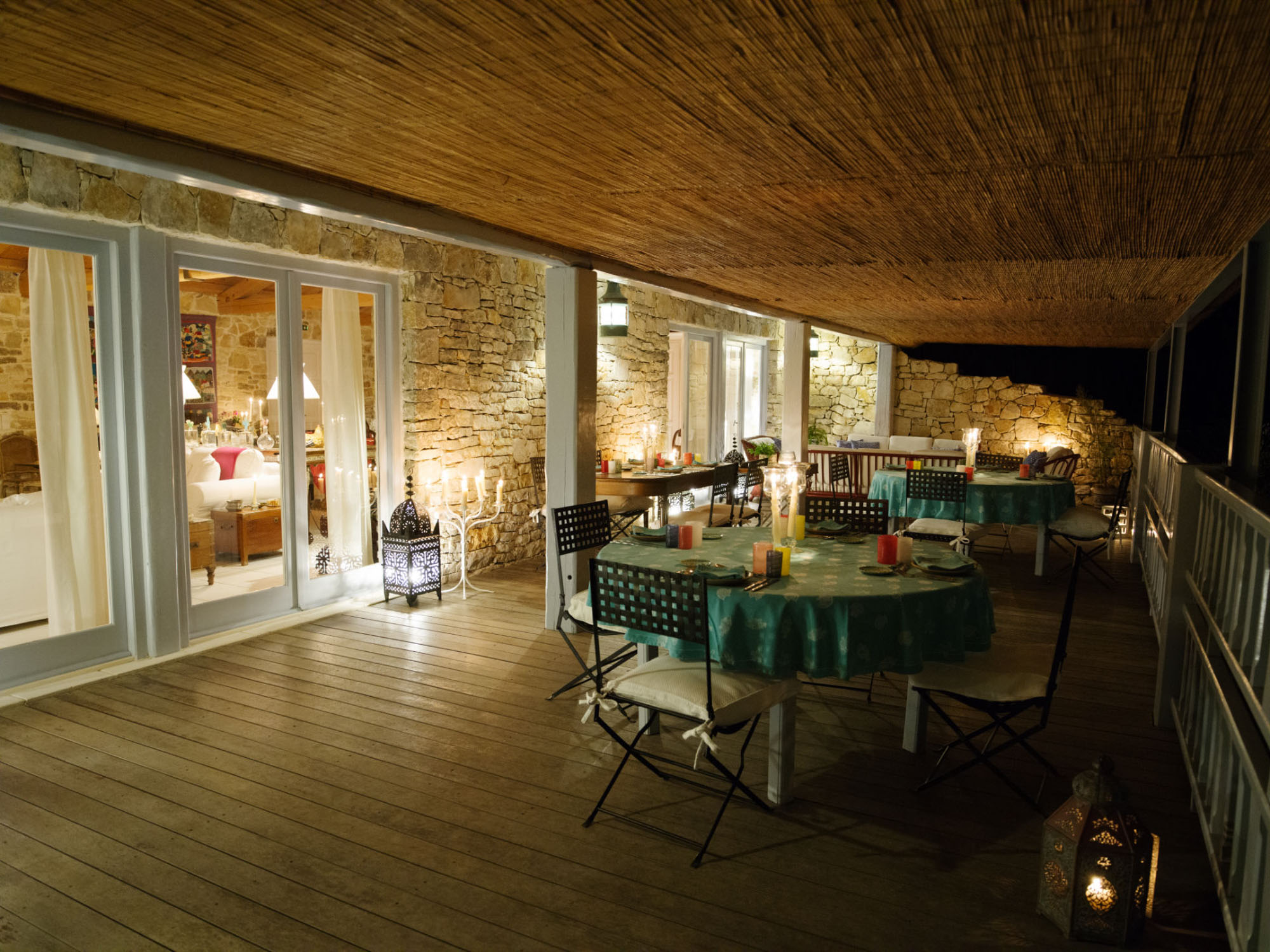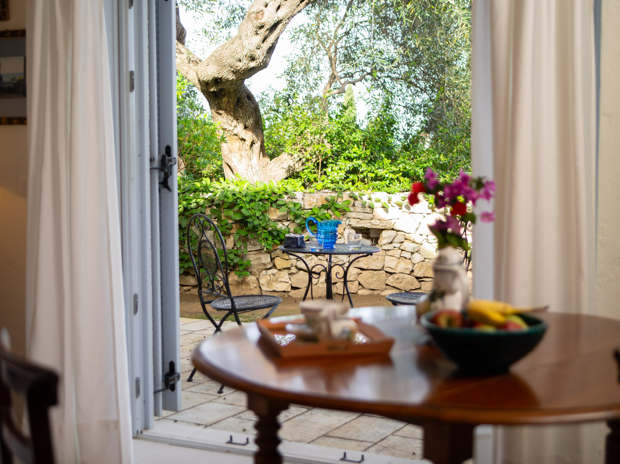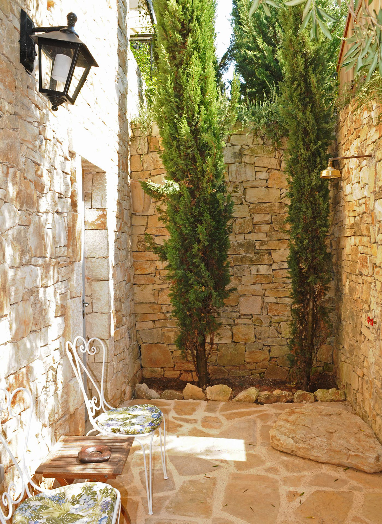 Cottage 3 - 2 bedrooms on 2 independent floors. Bedroom 3 is on the upper floor, with a private terrace. Bedroom 4 is on the ground floor and has a sitting room, an open-plan kitchen, and a little patio with an outdoor shower.