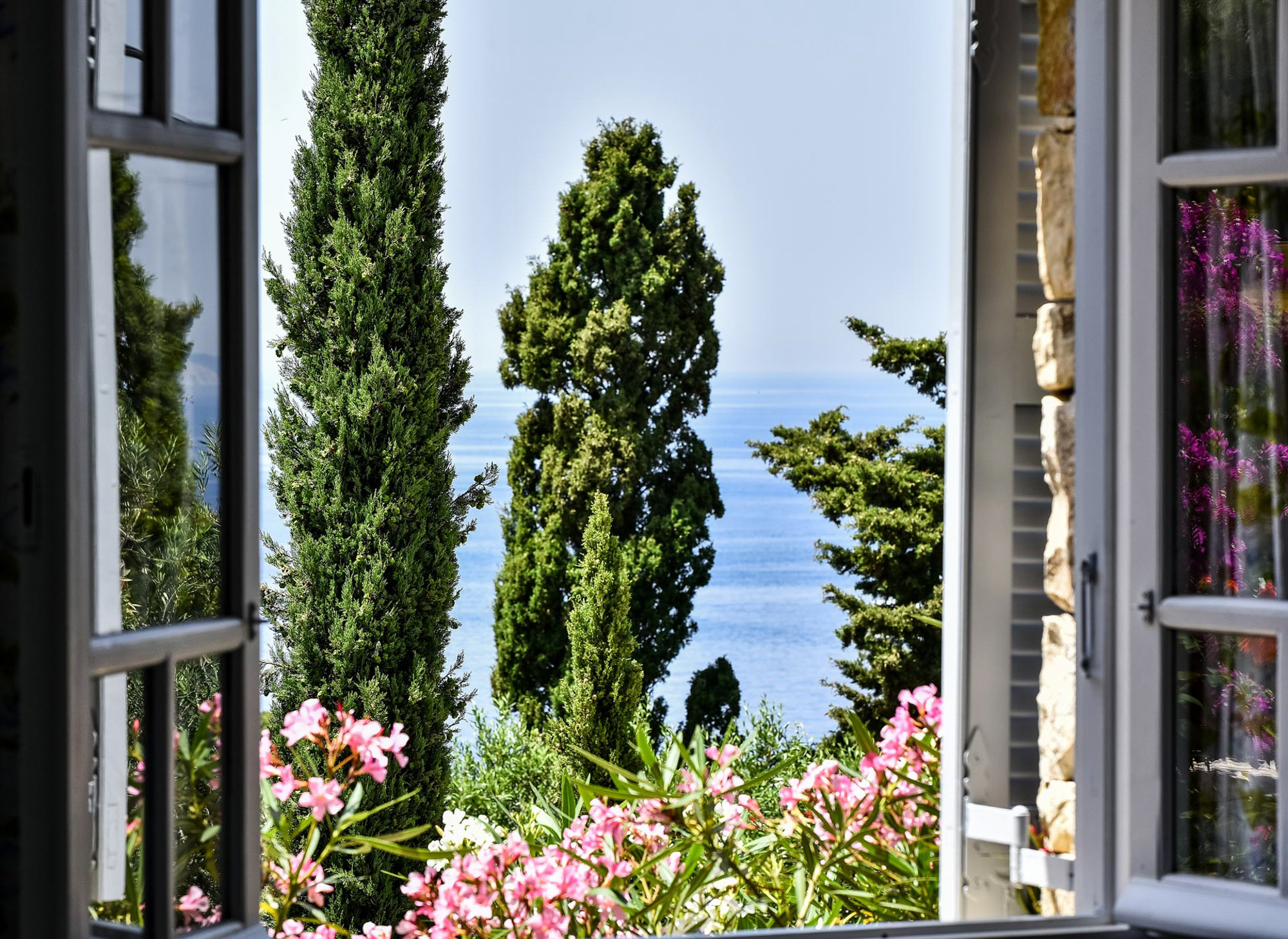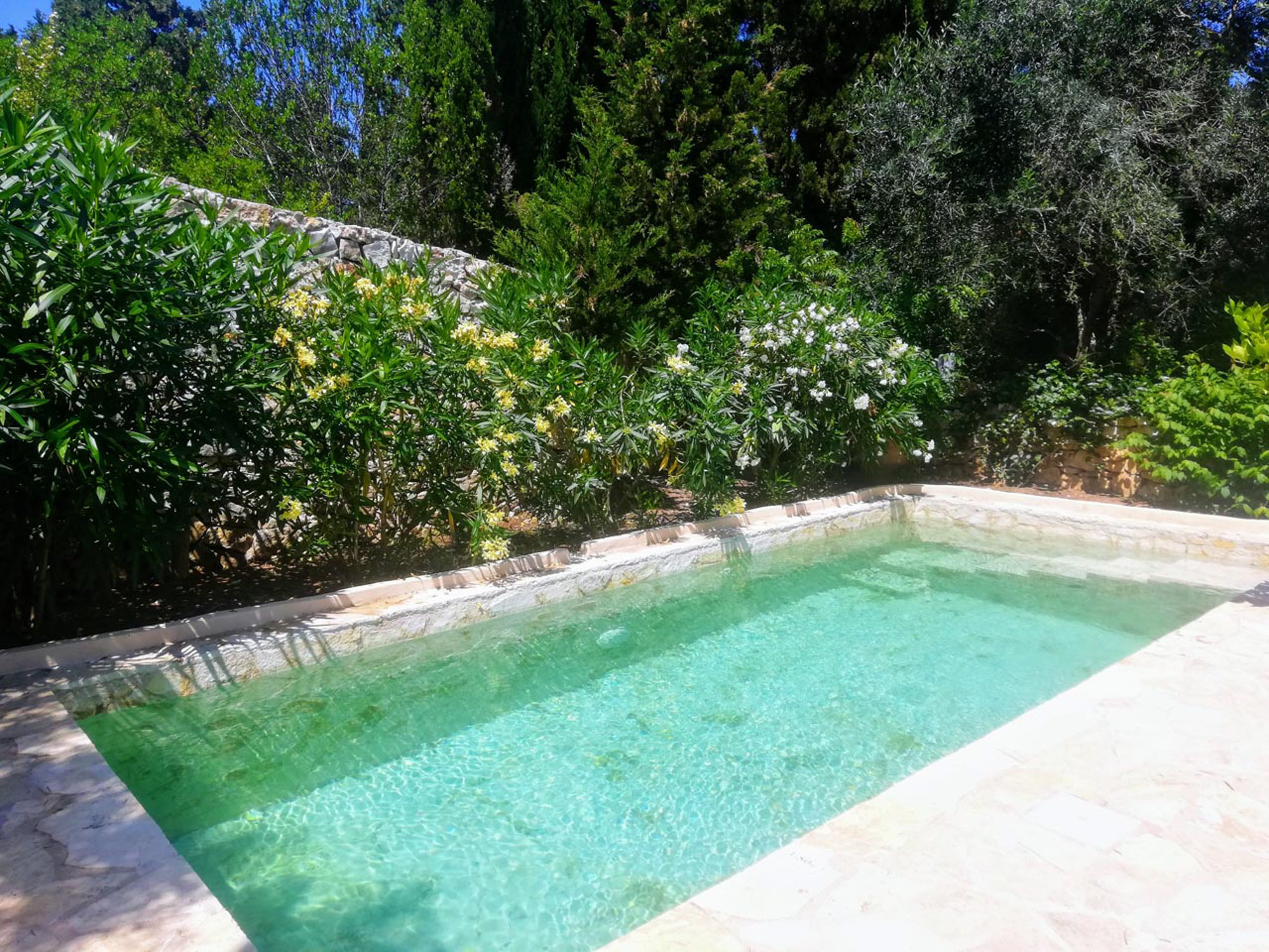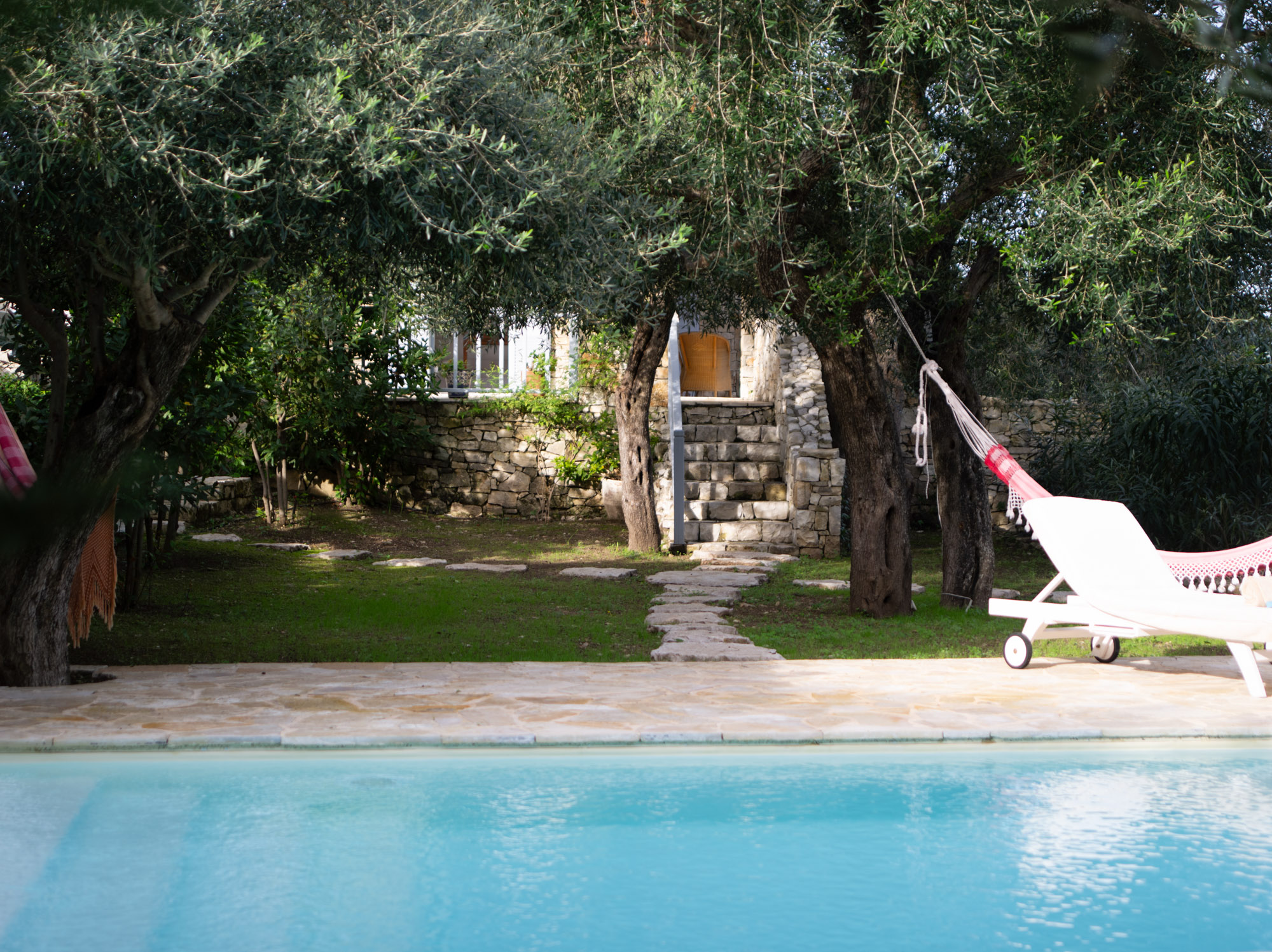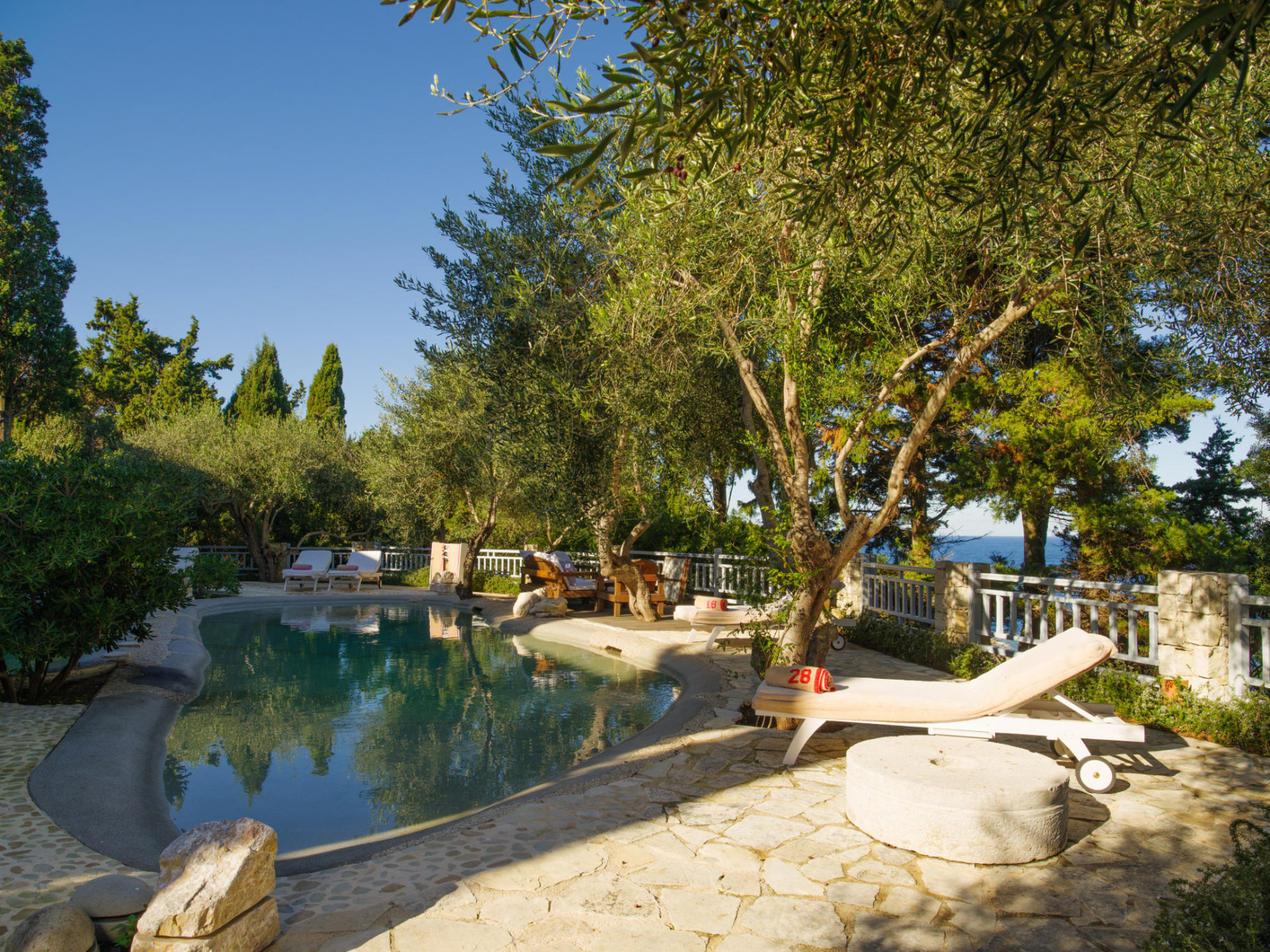 Outside, the villa boasts a large swimming pool located below the main building, perfect for cooling off and enjoying the surrounding views.