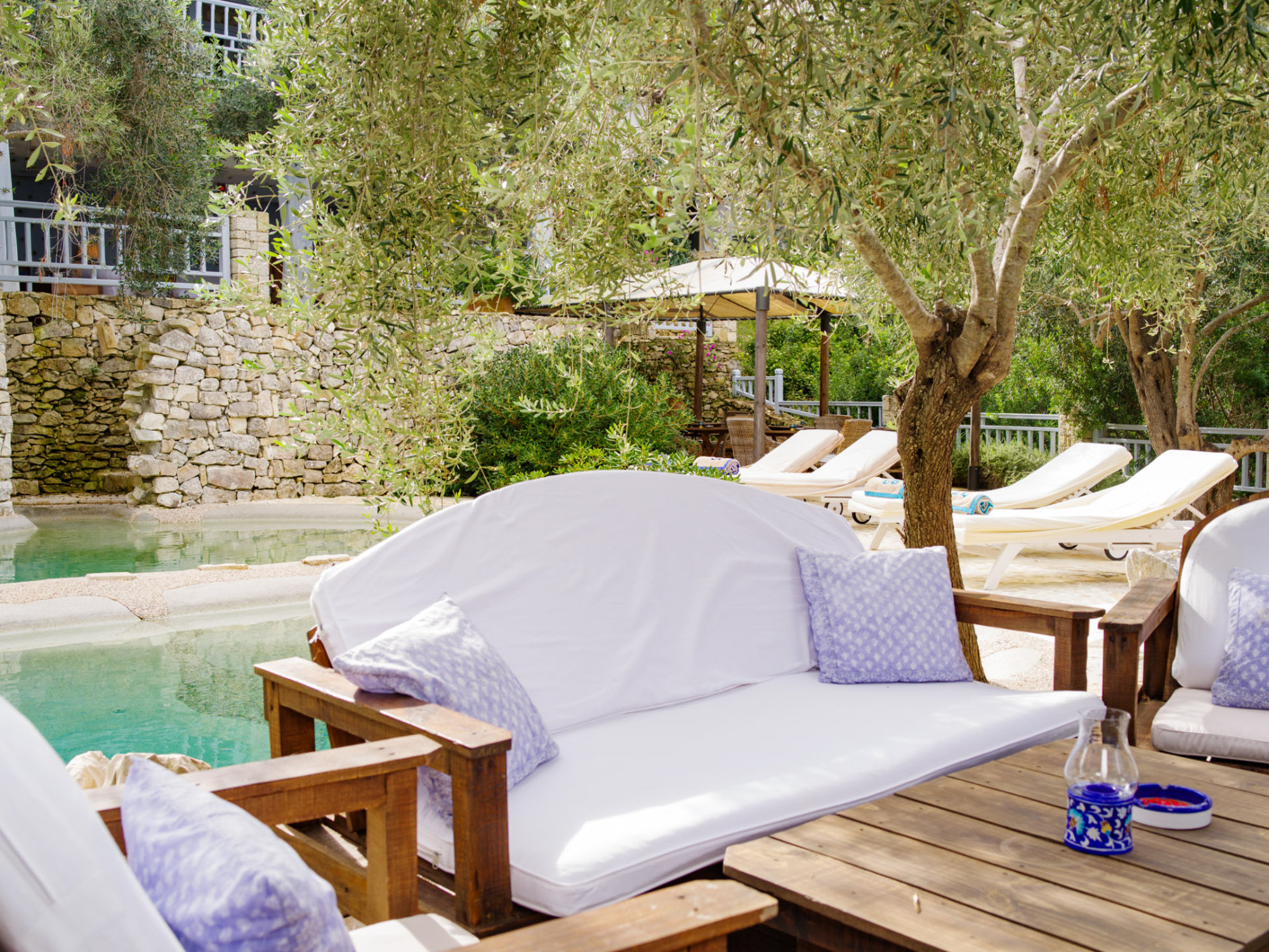 Cottage 4 - has 1 bedroom, a living room, a table for four, a sitting area, and a daybed on the mezzanine—which can be turned into a single bed for a teenager. The cottage has its own private pool, terrace, and sun loungers.