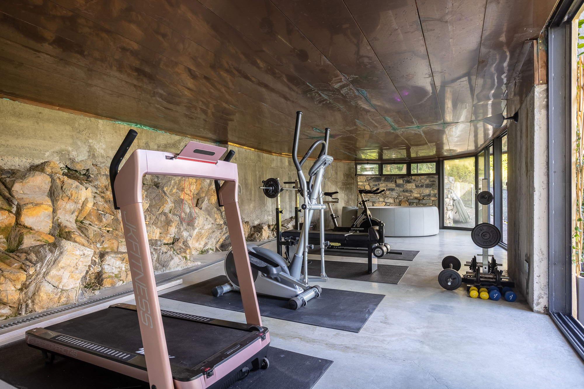 The master suite offers an added touch of indulgence, complete with a jacuzzi and spacious walk-in wardrobe. A private gym is also available for those looking to stay active while away, blending wellness with the villa’s serene surroundings.