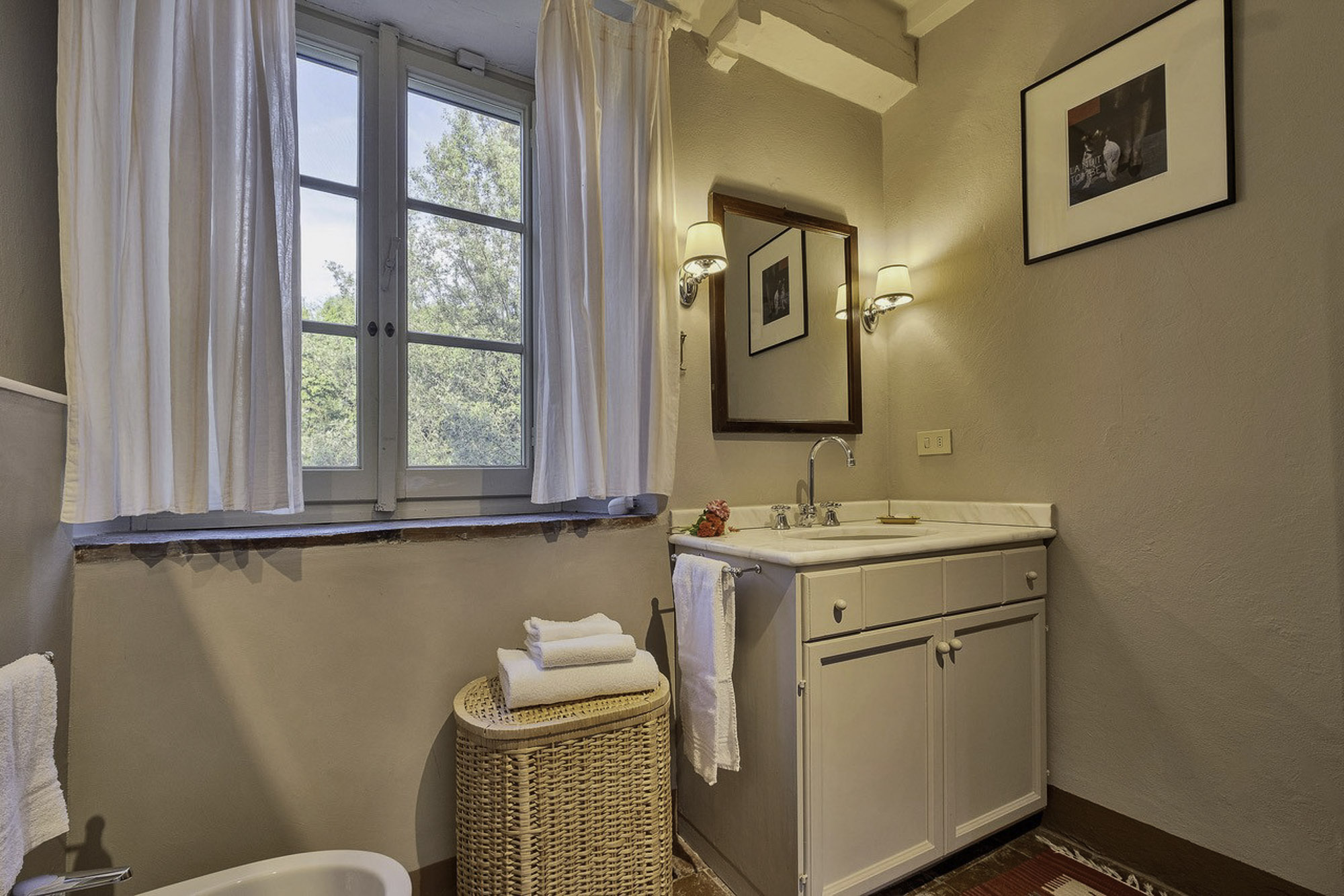 The property feels very peaceful and secluded, surrounded by nature and extensive grounds. Yet, it’s just a short drive to the stunning ancient city of Lucca and the long sandy beaches of Viareggio.