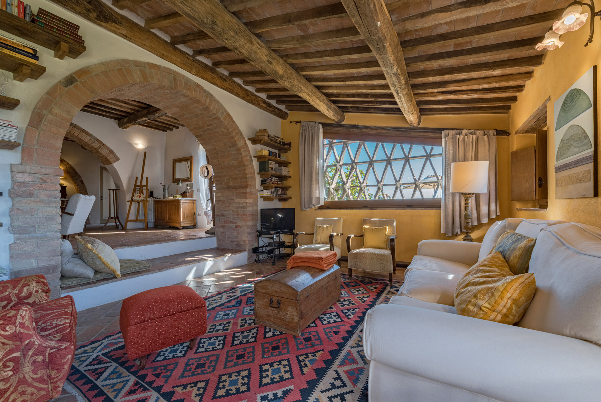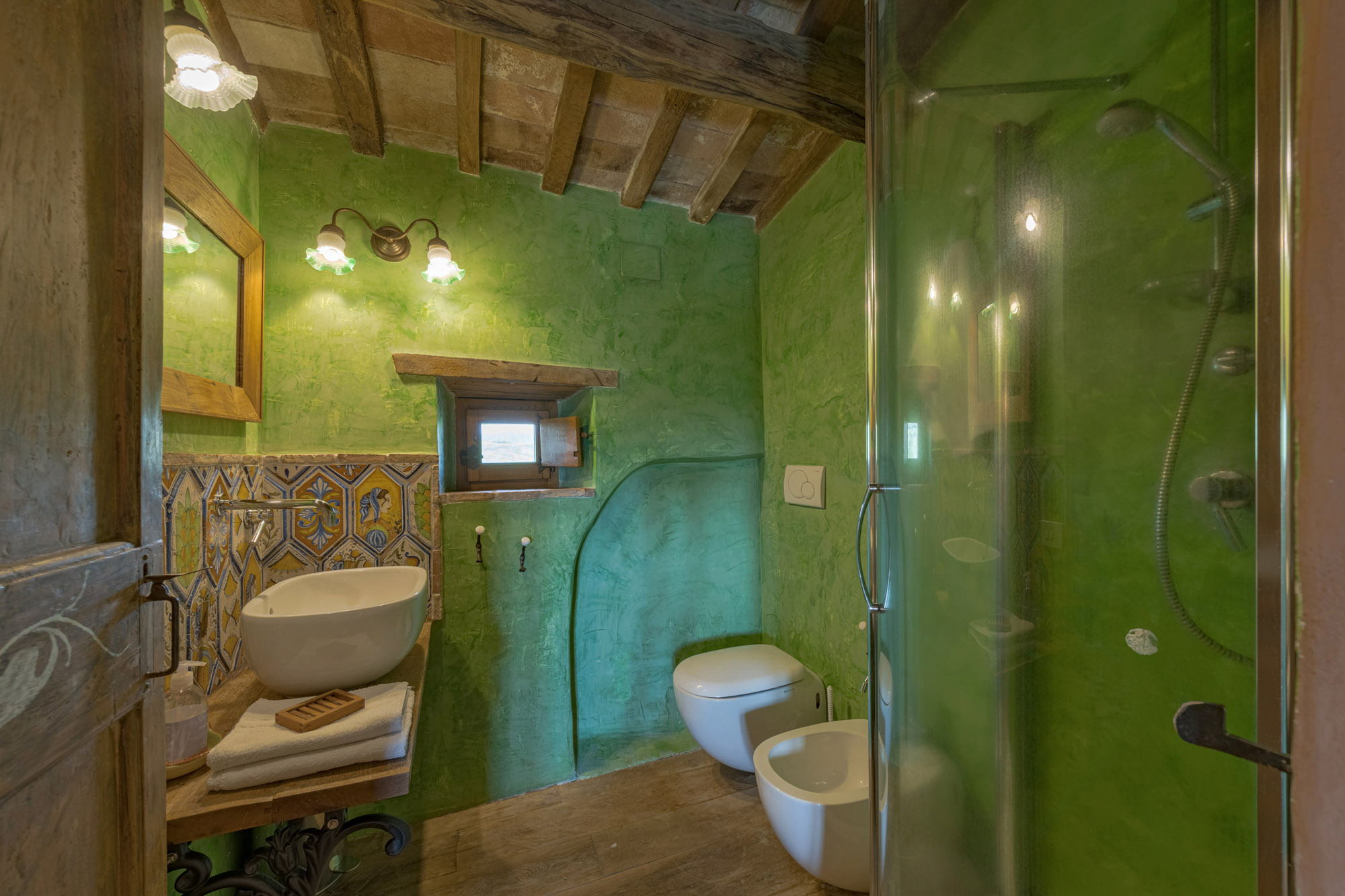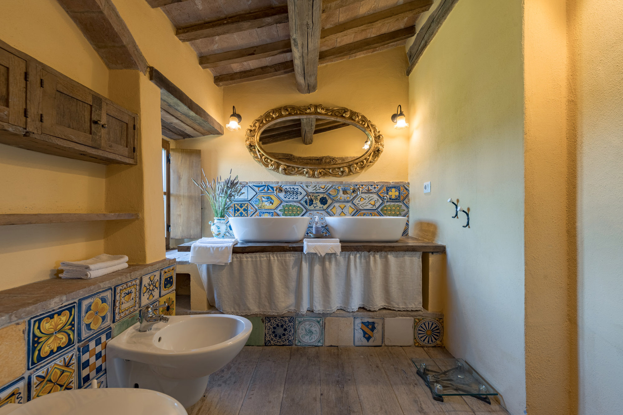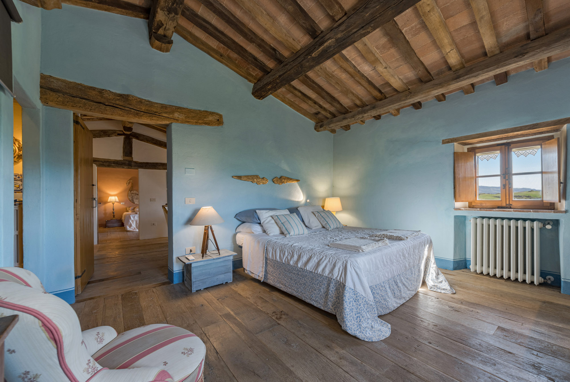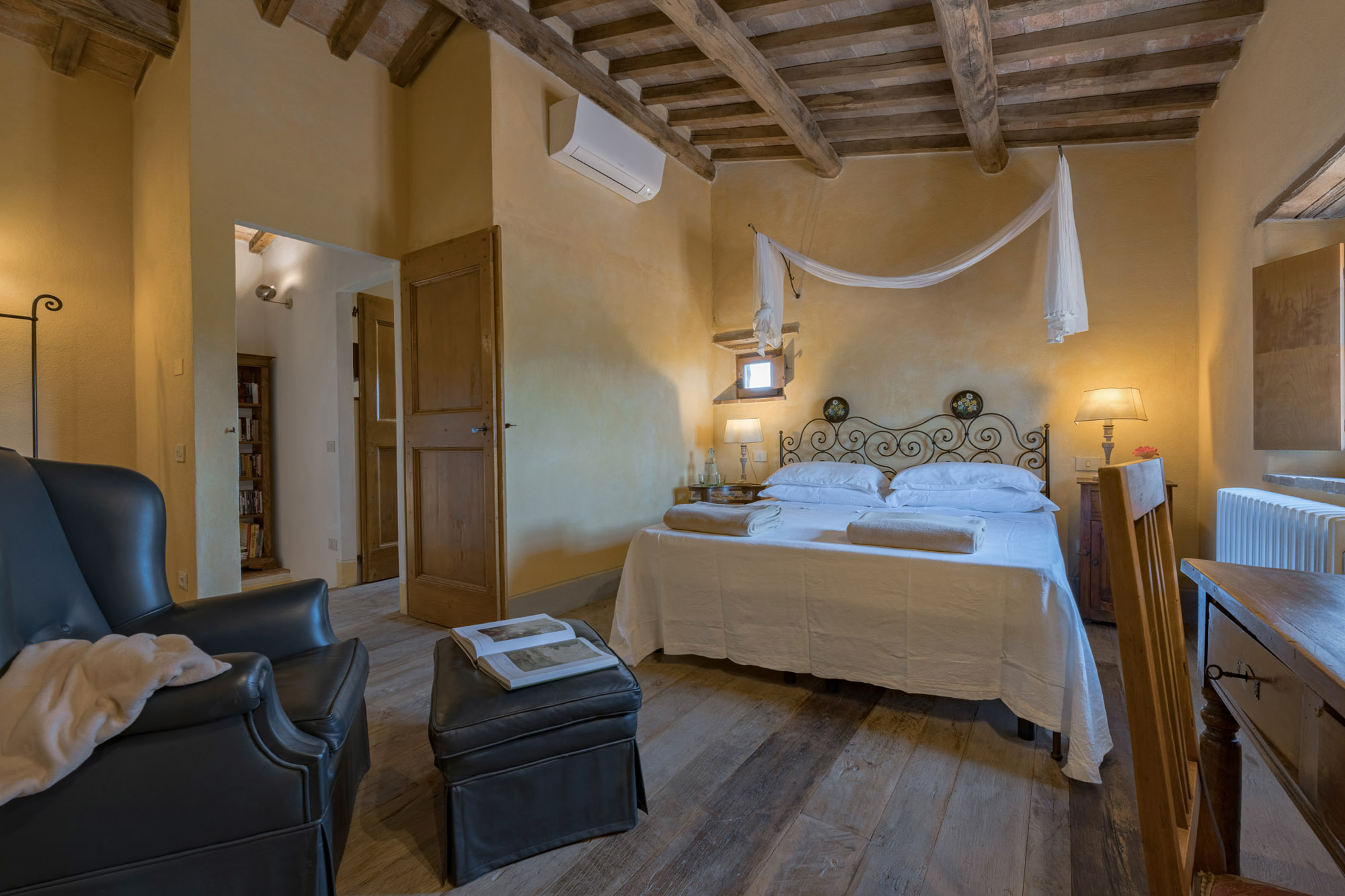 The villa perfectly combines traditional rustic features and modern amenities, including air conditioning, Wi-Fi, a gym, and a heated swimming pool. With 360-degree breath-taking views, it’s an ideal getaway for large groups or families looking to experience authentic Tuscany, whether soaking up the tranquillity of the villa or exploring the wider region.