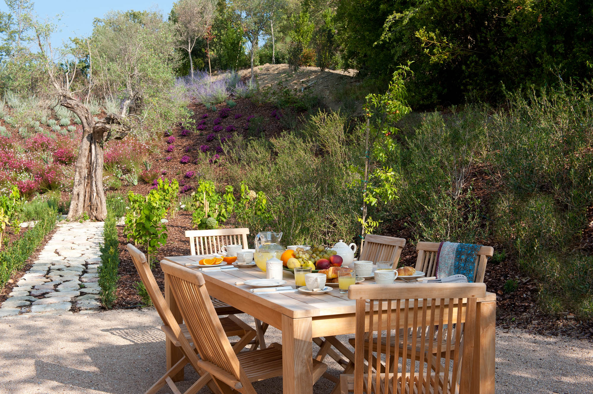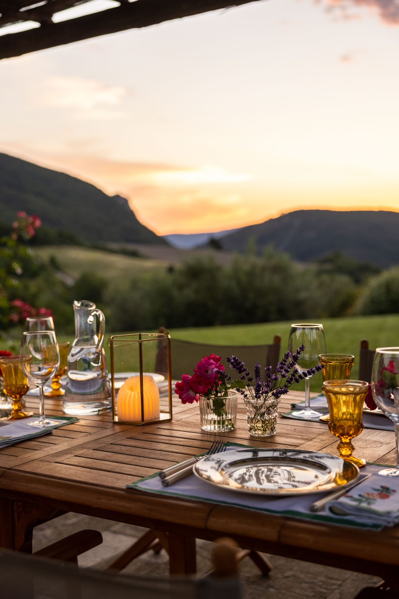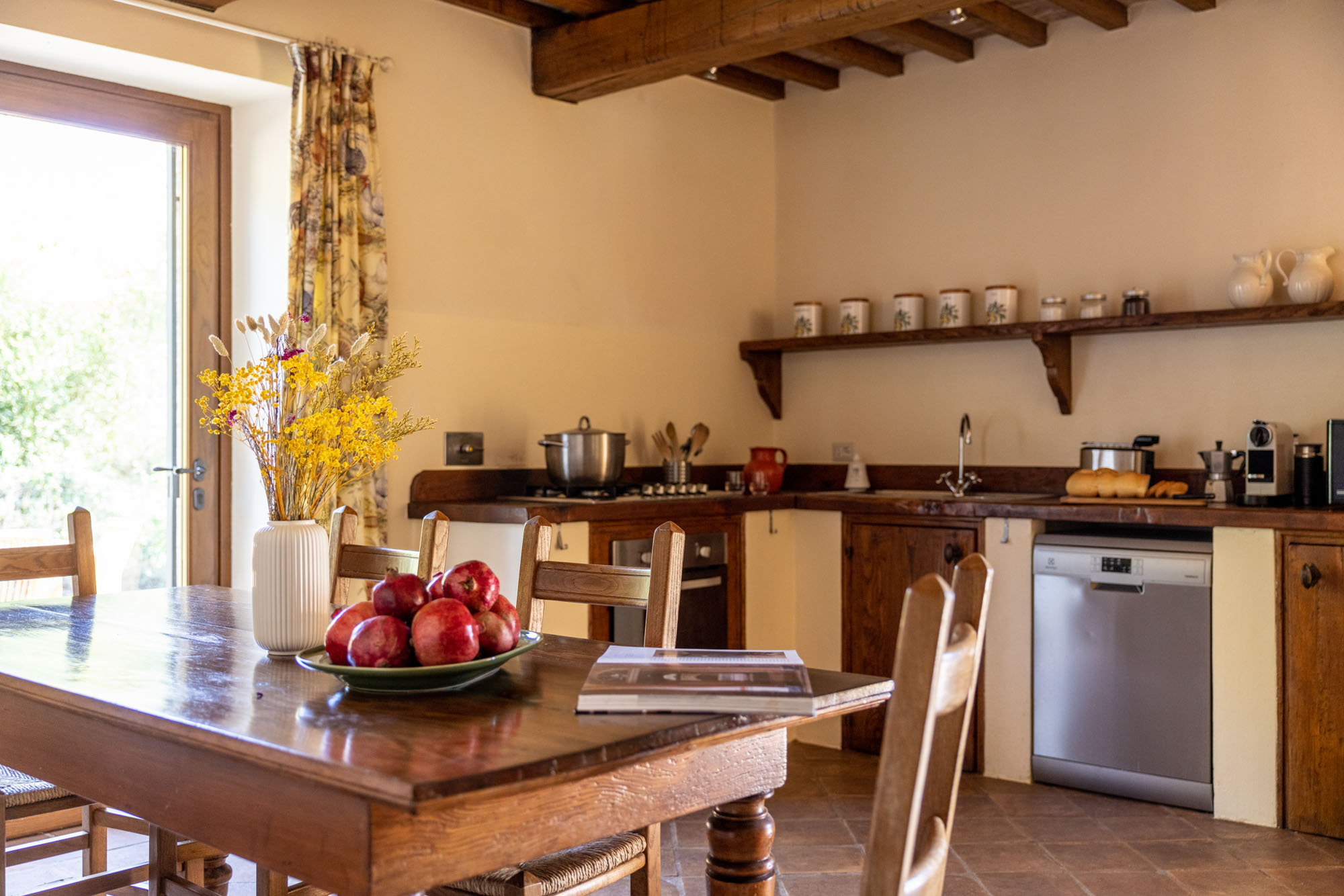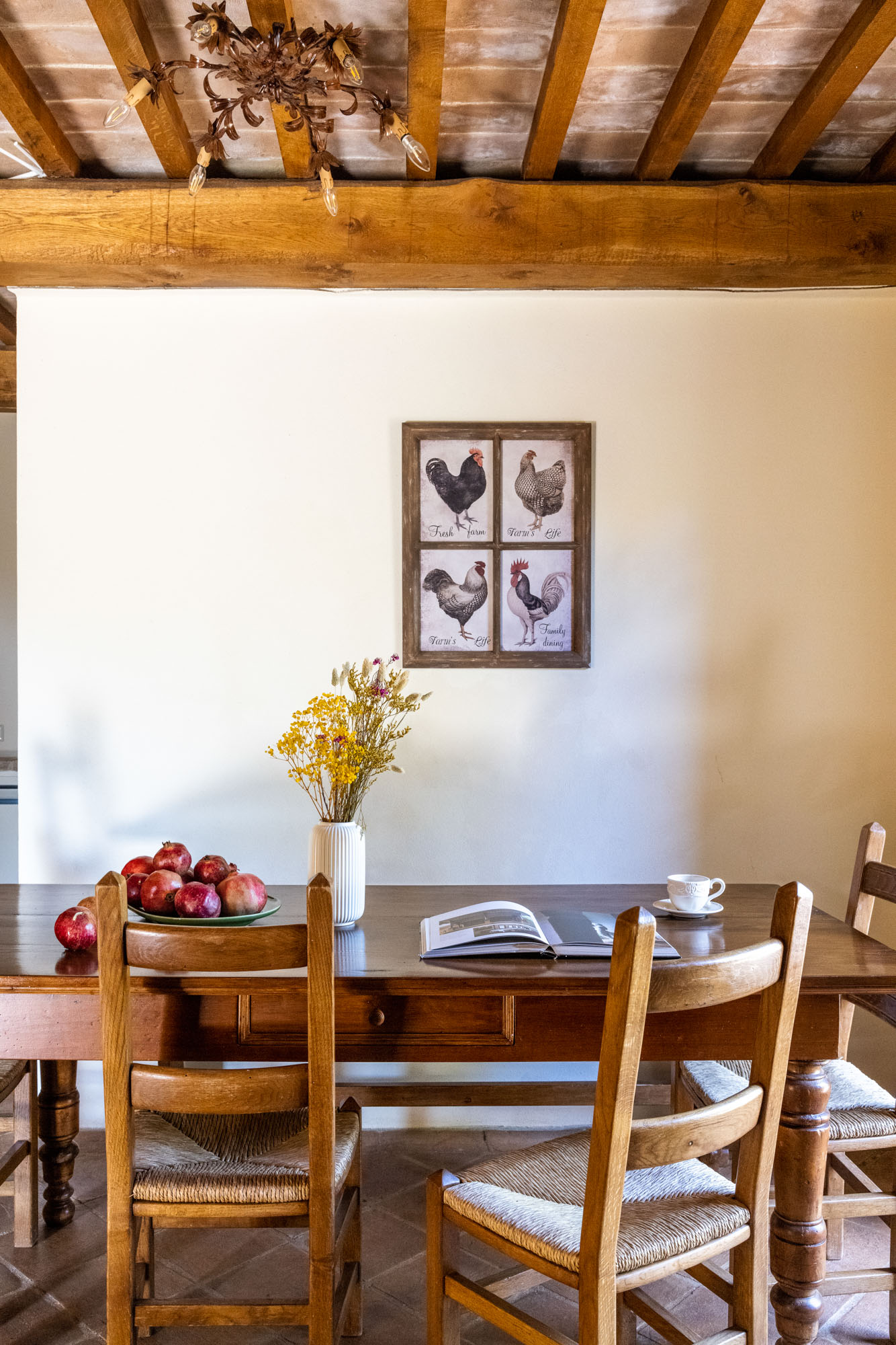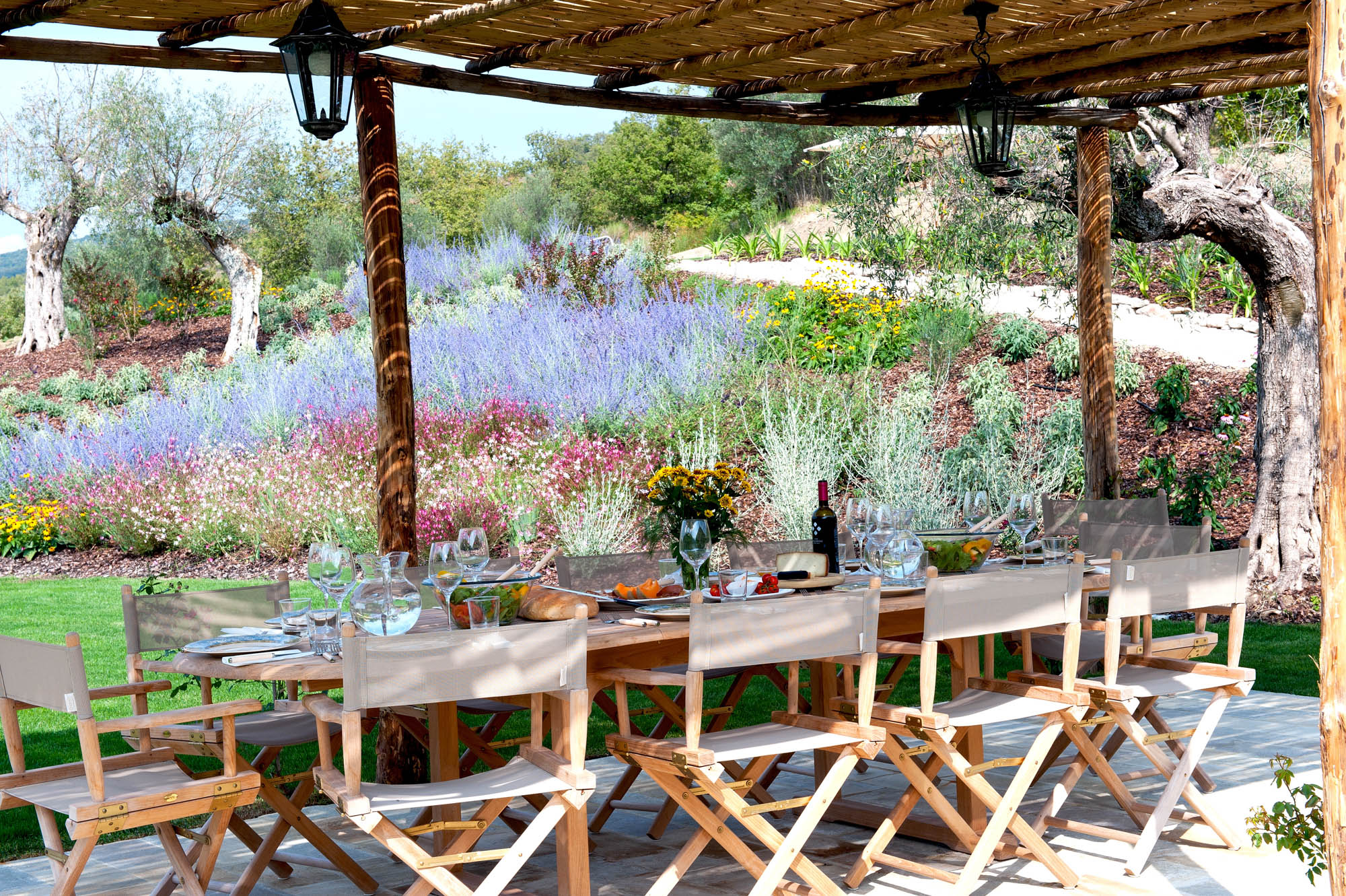 Whether admiring the extensive views from the sun loungers around the pool, taking breakfast at the table on the charming terrace near the kitchen, or dining al fresco at the long table under the pergola surrounded by flowering plants and roses.