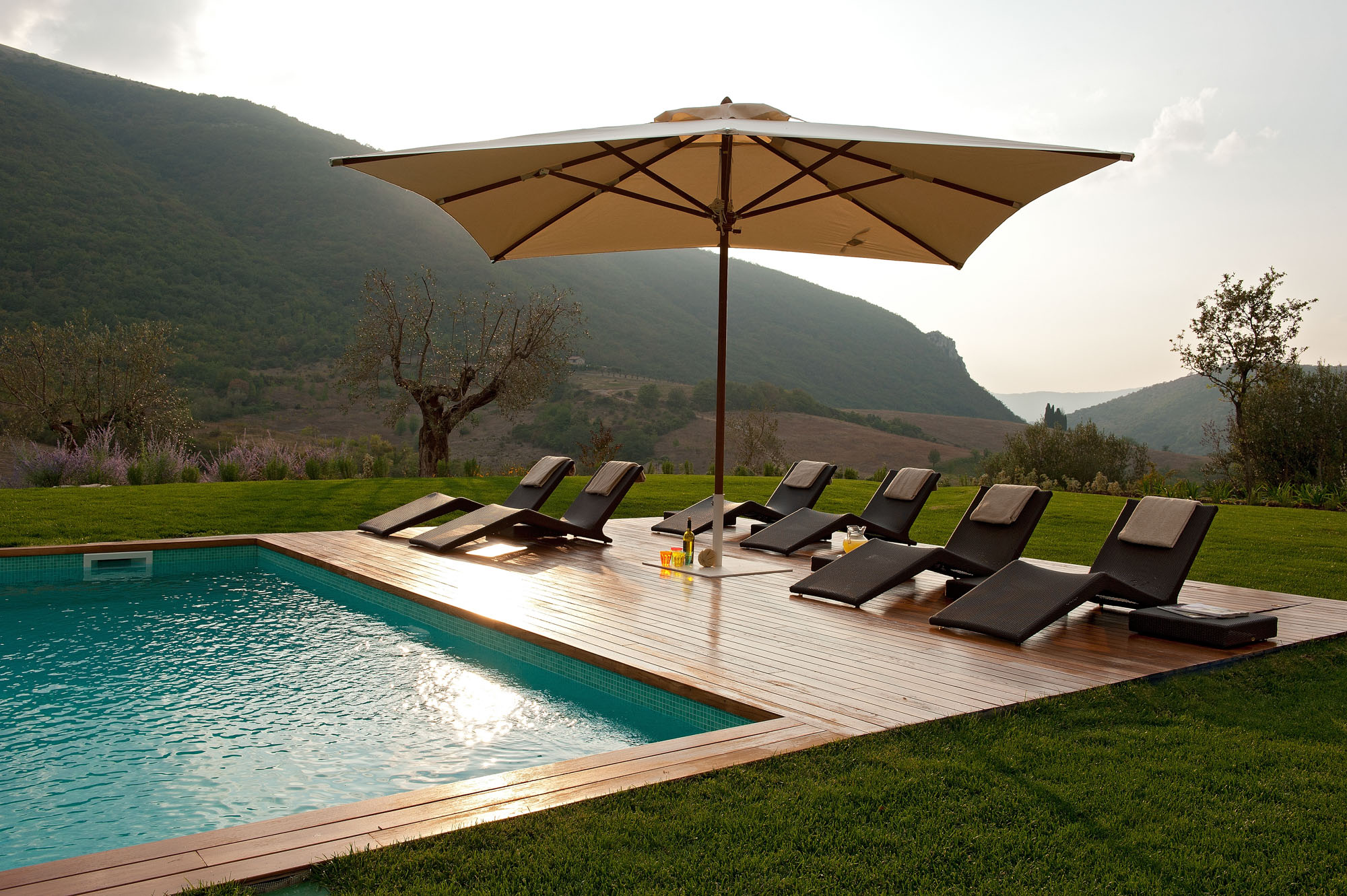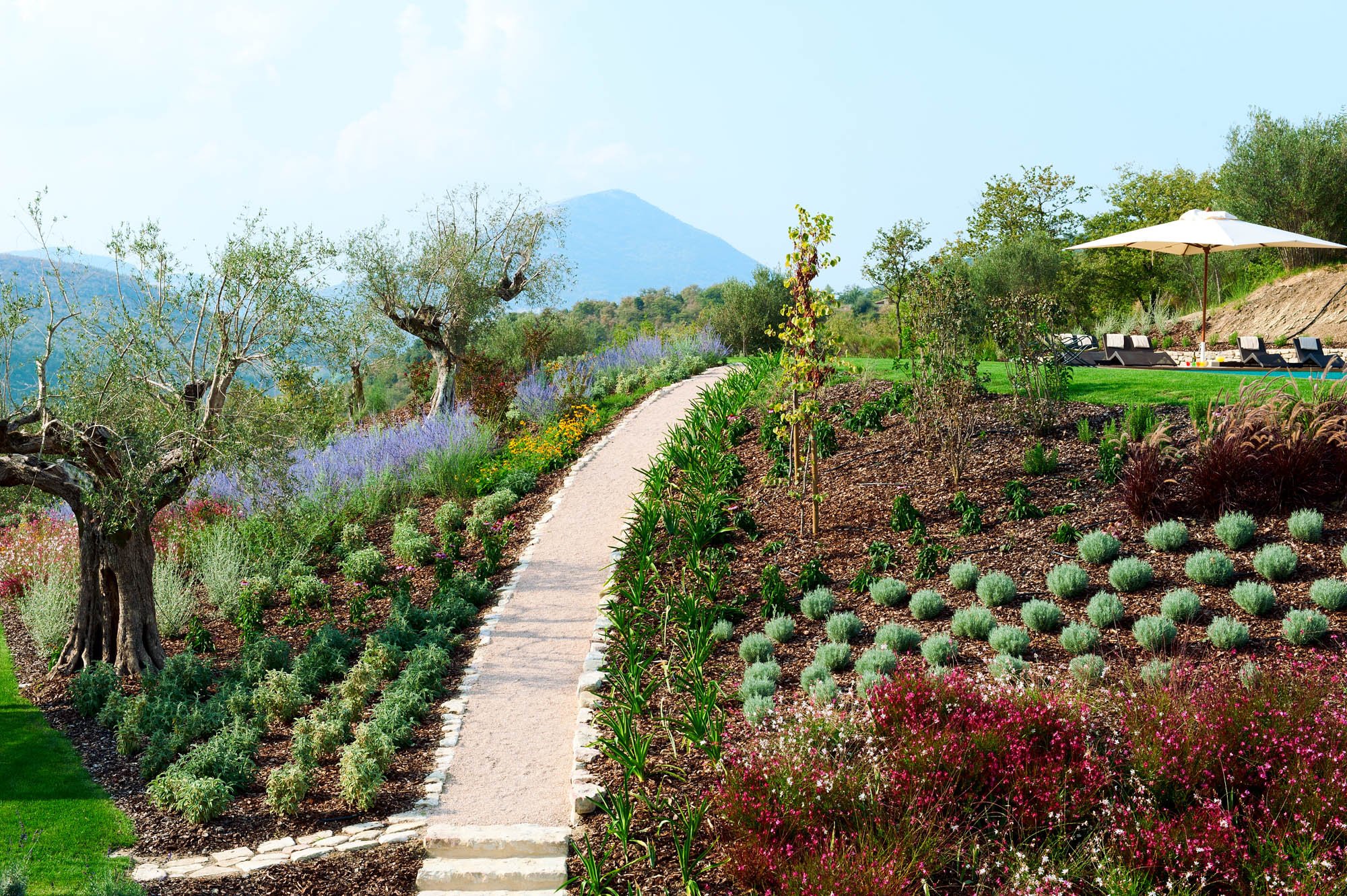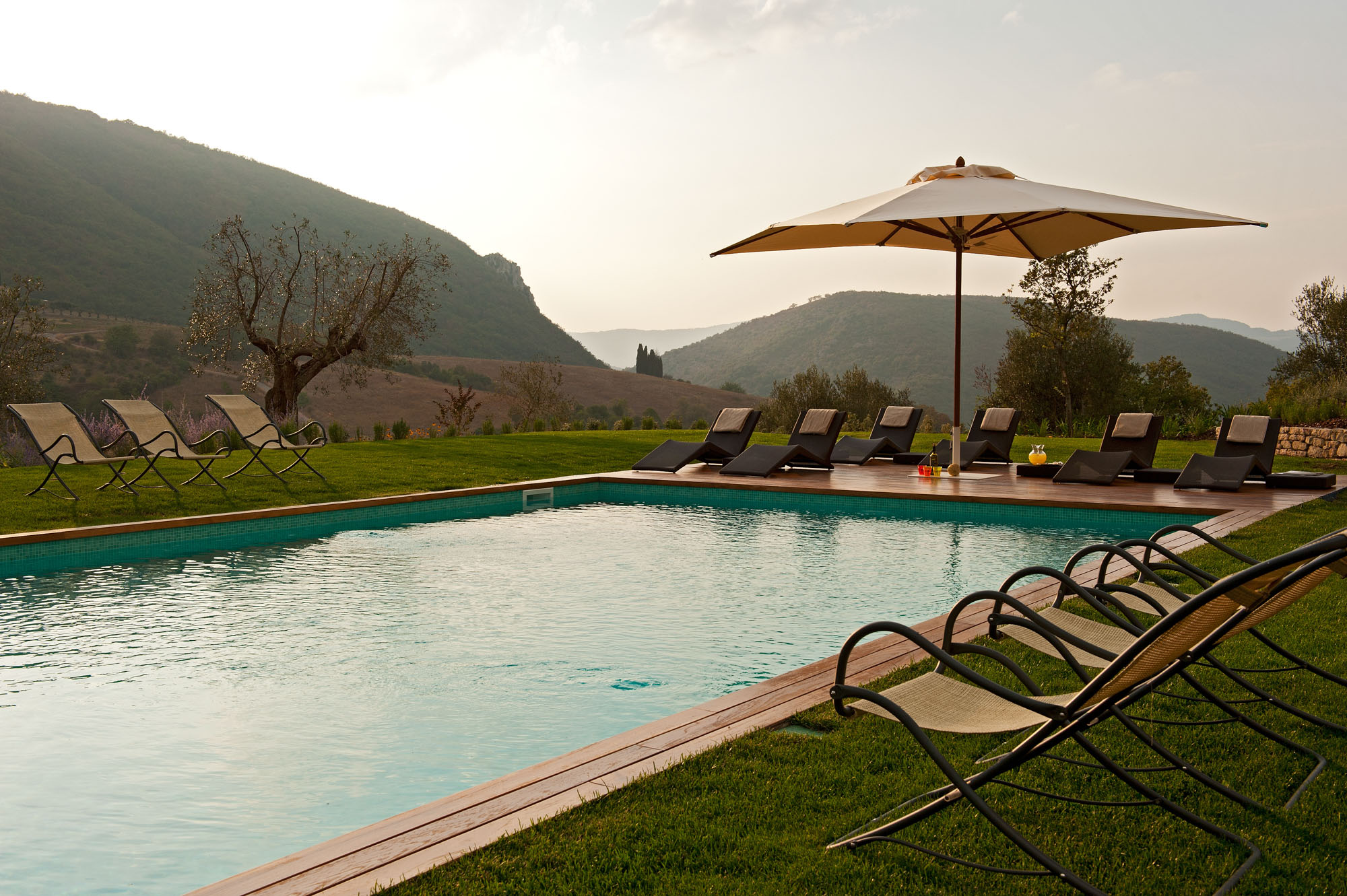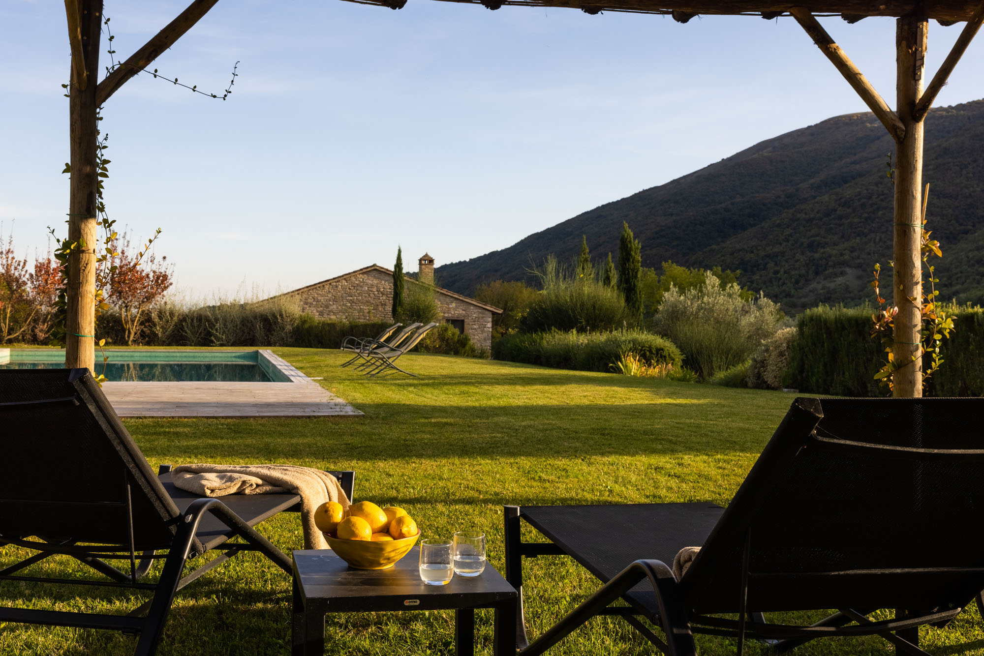 The large garden is wonderful. Over 3,000 plants provide colour and interest throughout the year and provide many peaceful spots to unwind. Another highlight is the 15-metre pool, with mosaic details, set in a luscious lawn. The estate’s Antognolla golf course is just minutes away.