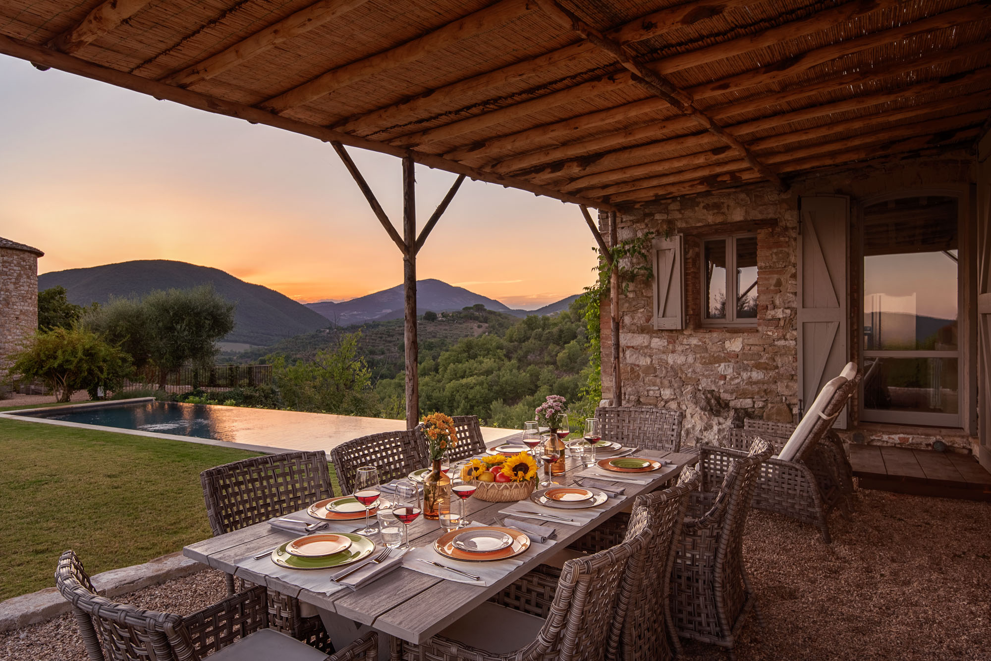 The various terraced areas have several locations for al fresco dining (or just to sit and relax) and great views in all directions. Near the annexe, a pergola provides shade in the day's heat and is a good spot to watch the sunset. On request, a wide range of experiences can be organised for guests, including wine tastings, cooking lessons, day trips, and spa services.