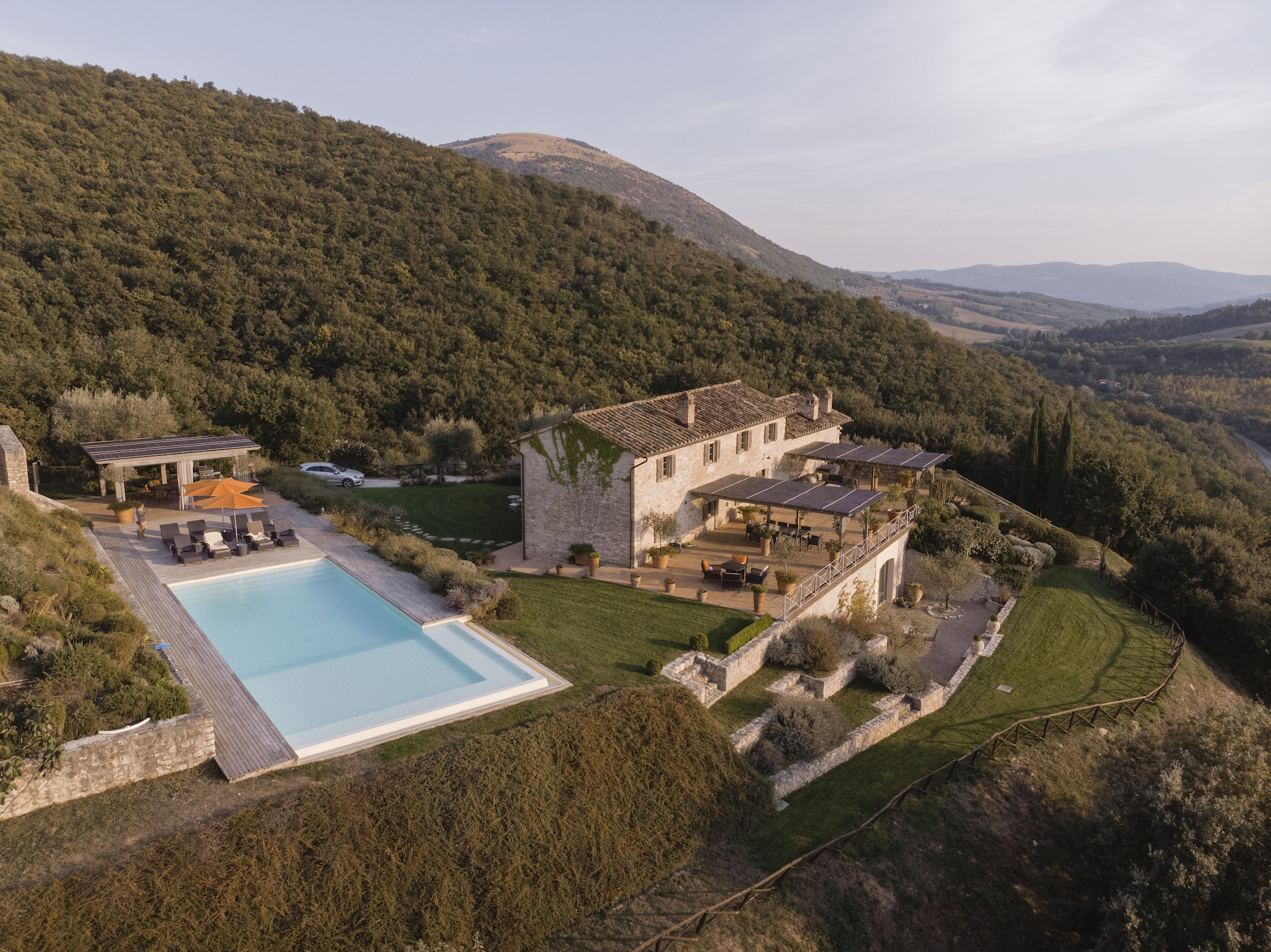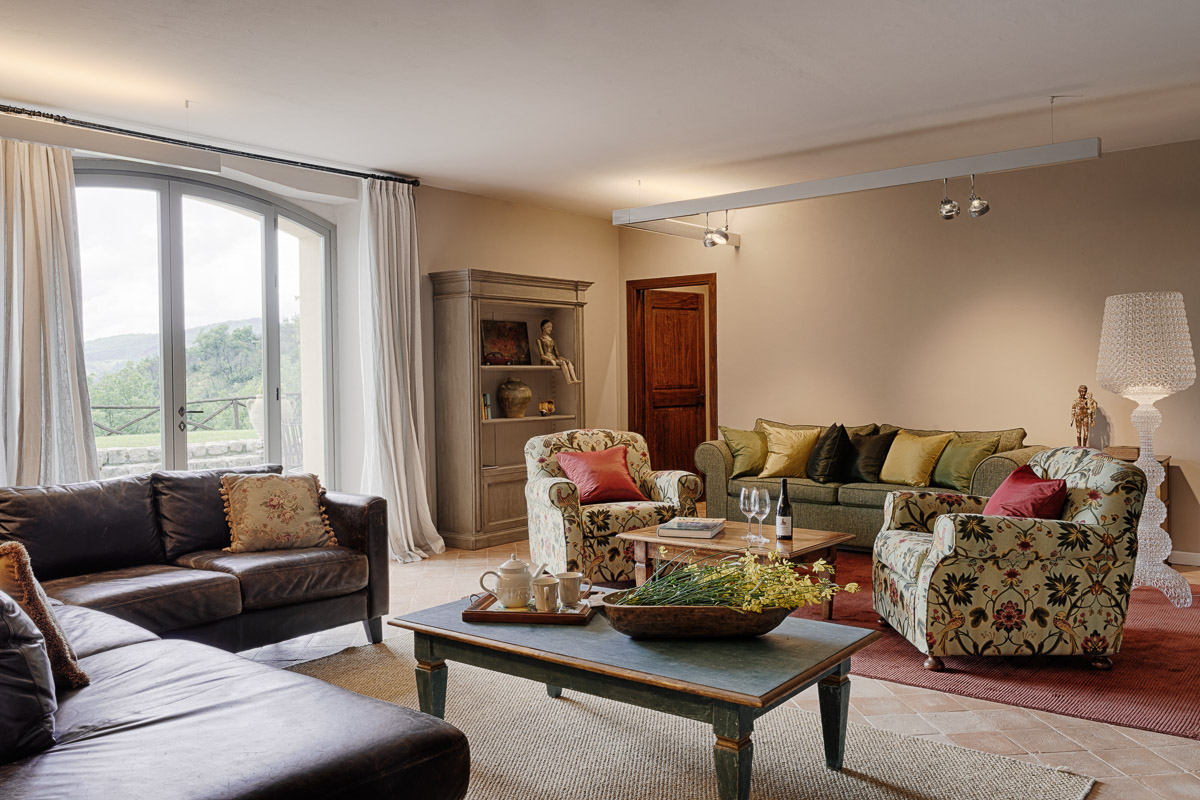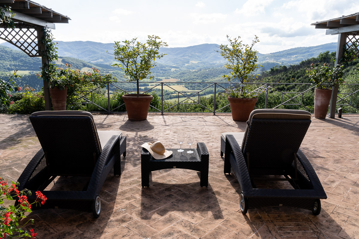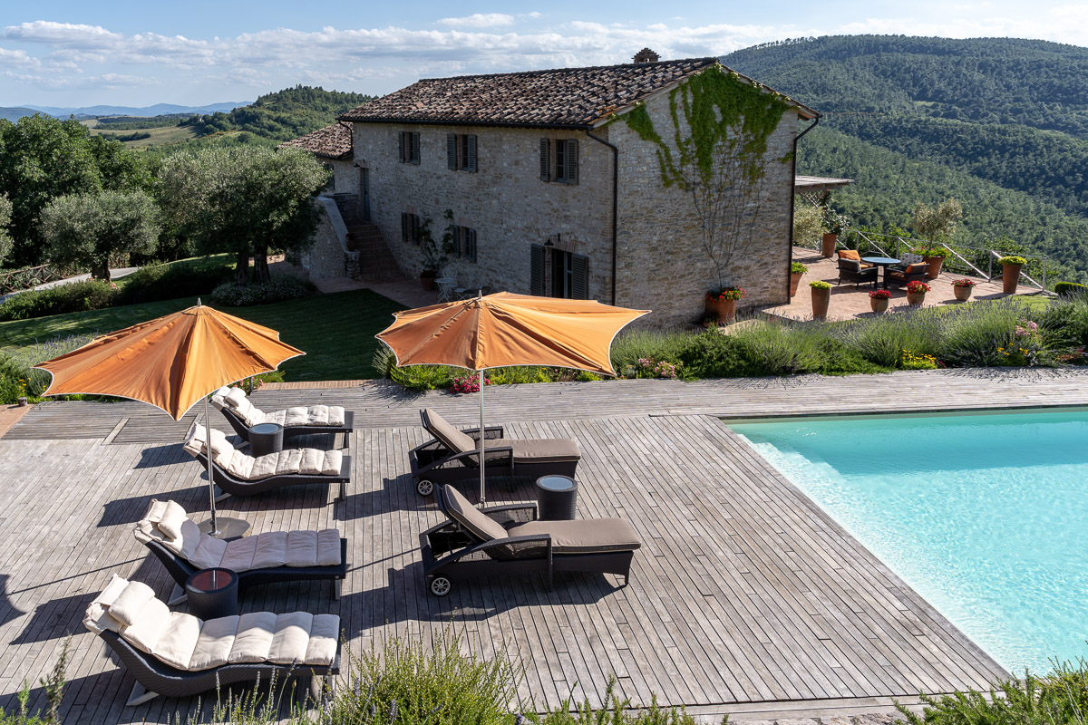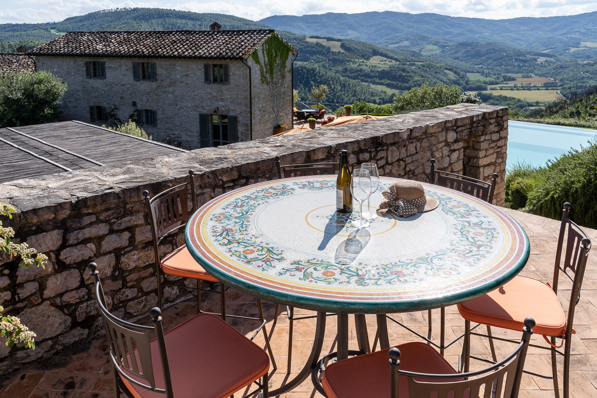 It's situated on a private estate, high on the hills by the spectacular Antognolla Golf Course, surrounded by ancient olive trees. The views from the terraces and private landscaped gardens are truly wonderful. The estate has its own restaurant. The village of Pierantonio is a short drive away, and you are well-placed to explore the region's many hilltop villages and historic towns.