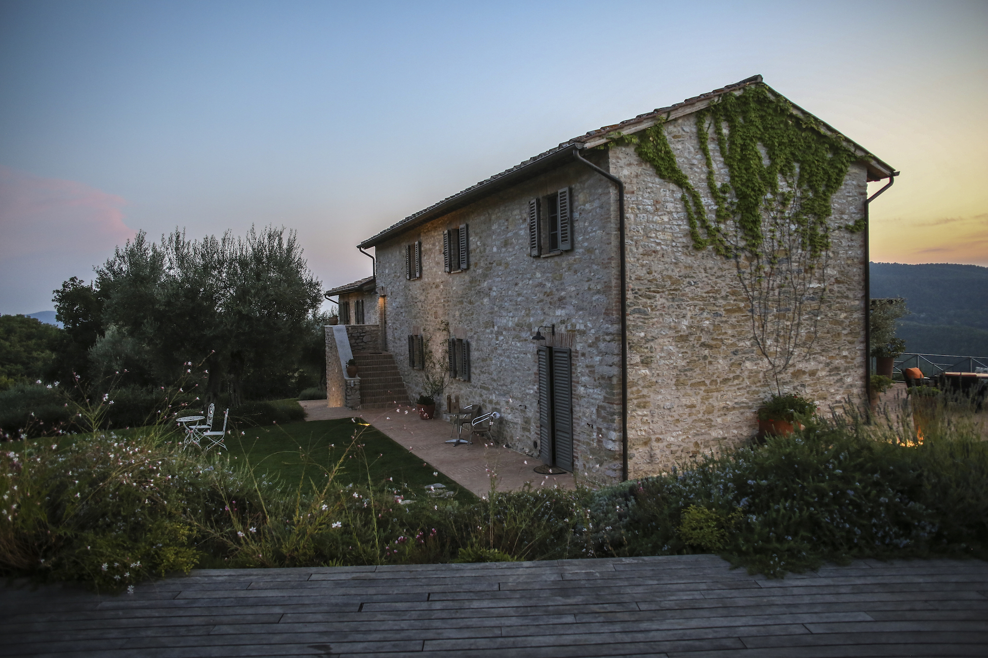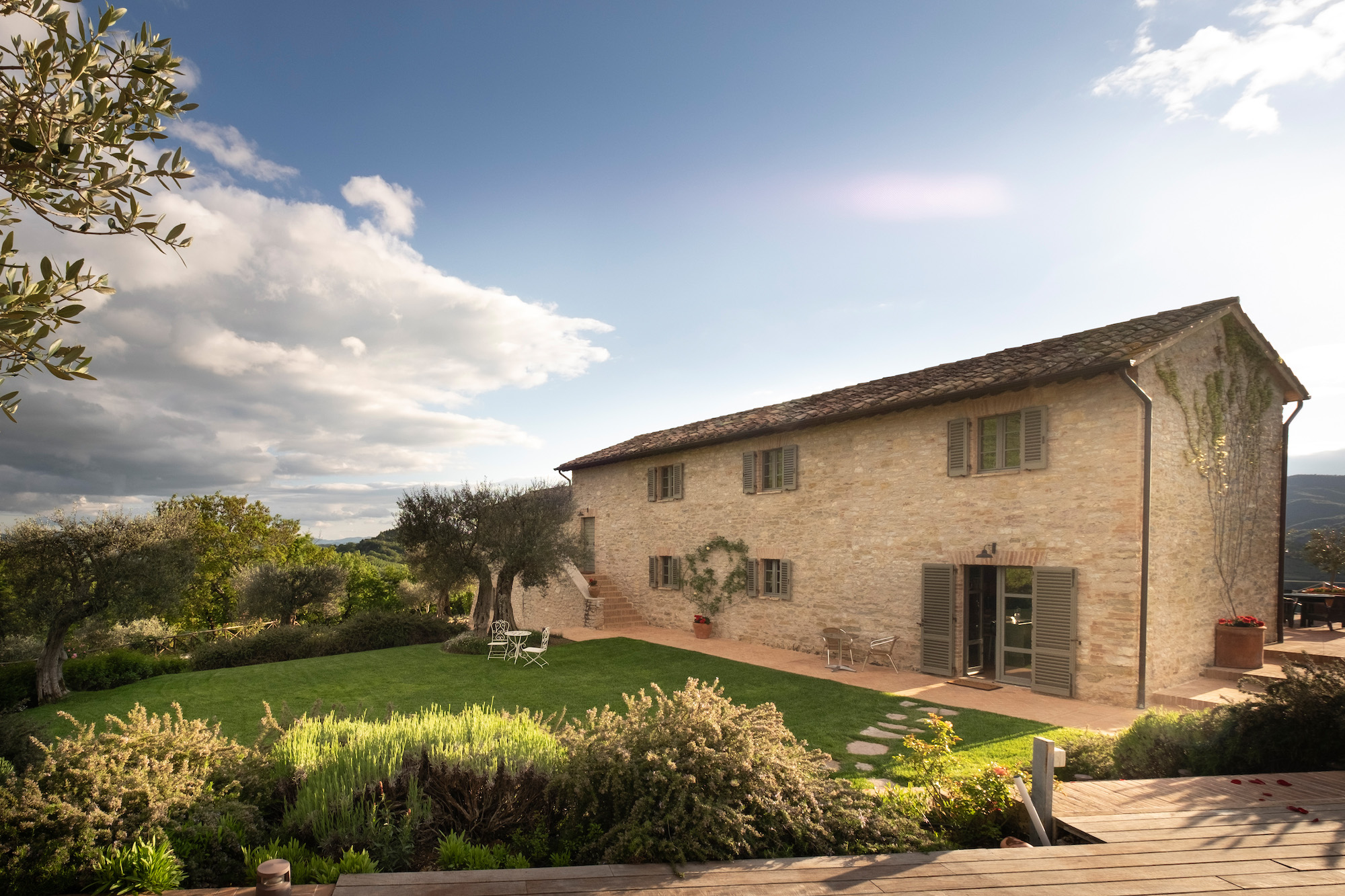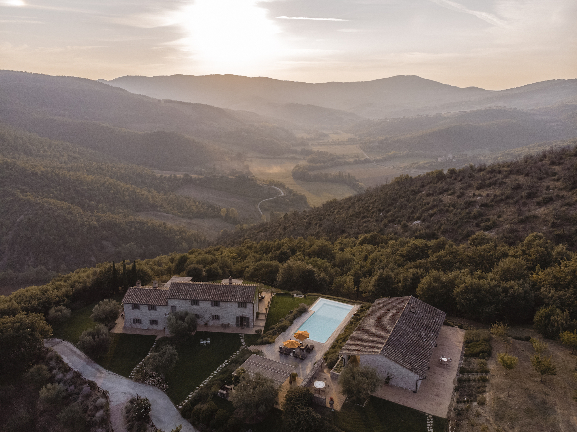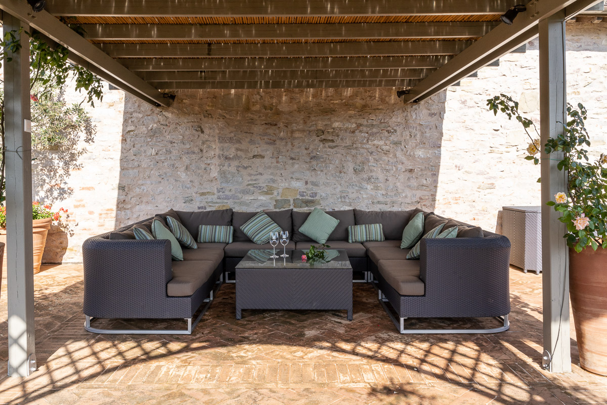 It's situated on a private estate, high on the hills by the spectacular Antognolla Golf Course, surrounded by ancient olive trees. The views from the terraces and private landscaped gardens are truly wonderful. The estate has its own restaurant. The village of Pierantonio is a short drive away, and you are well-placed to explore the region's many hilltop villages and historic towns.