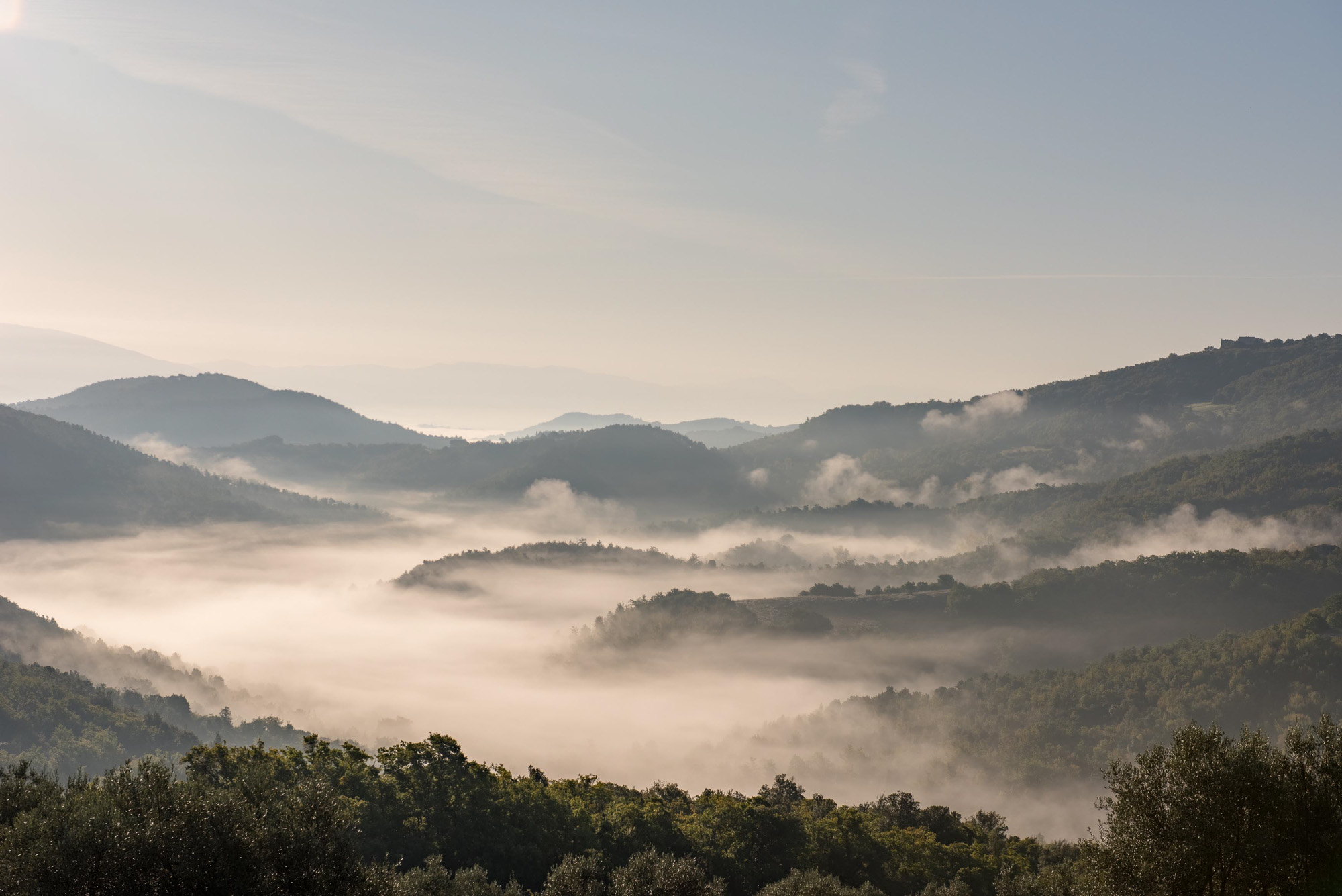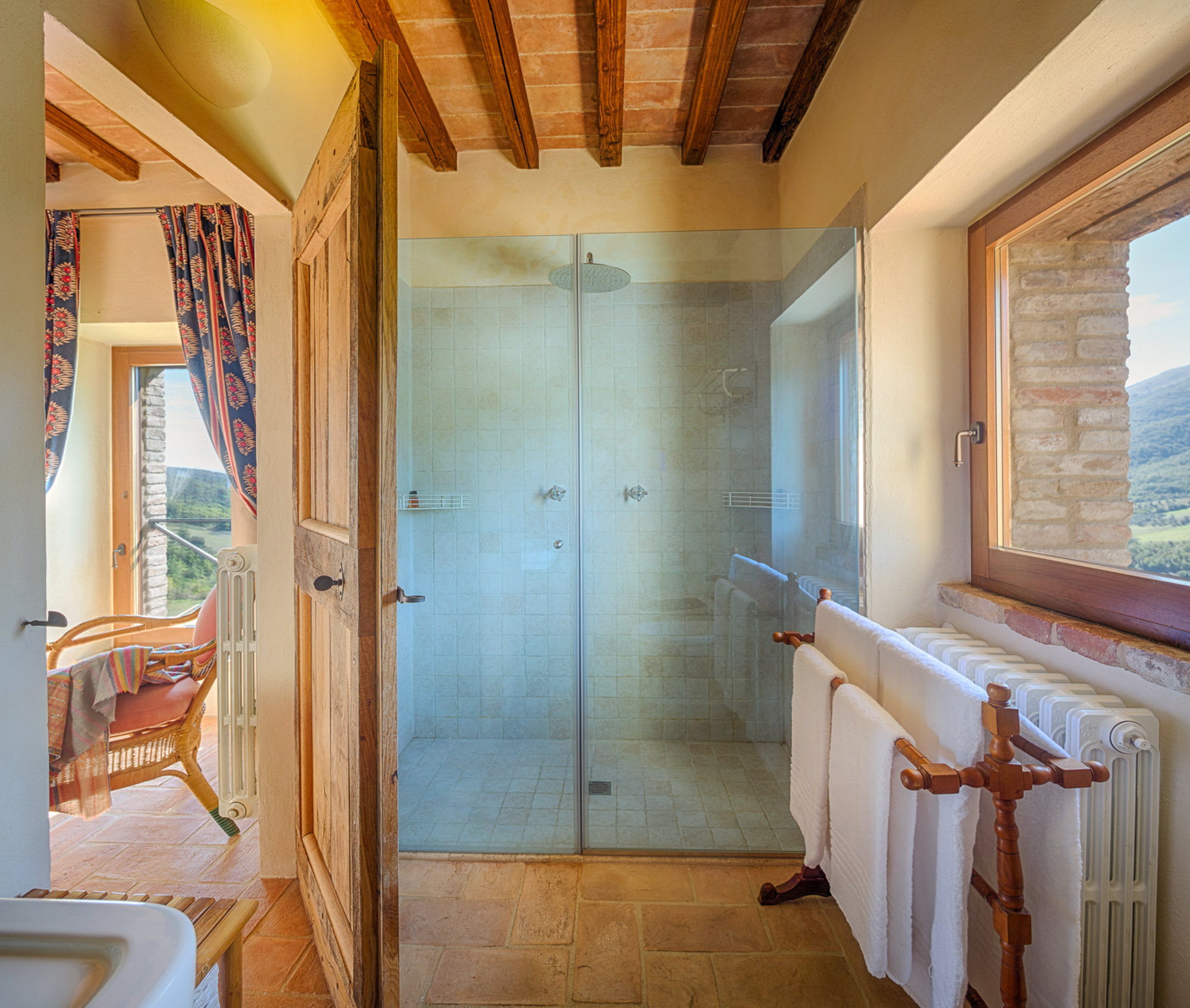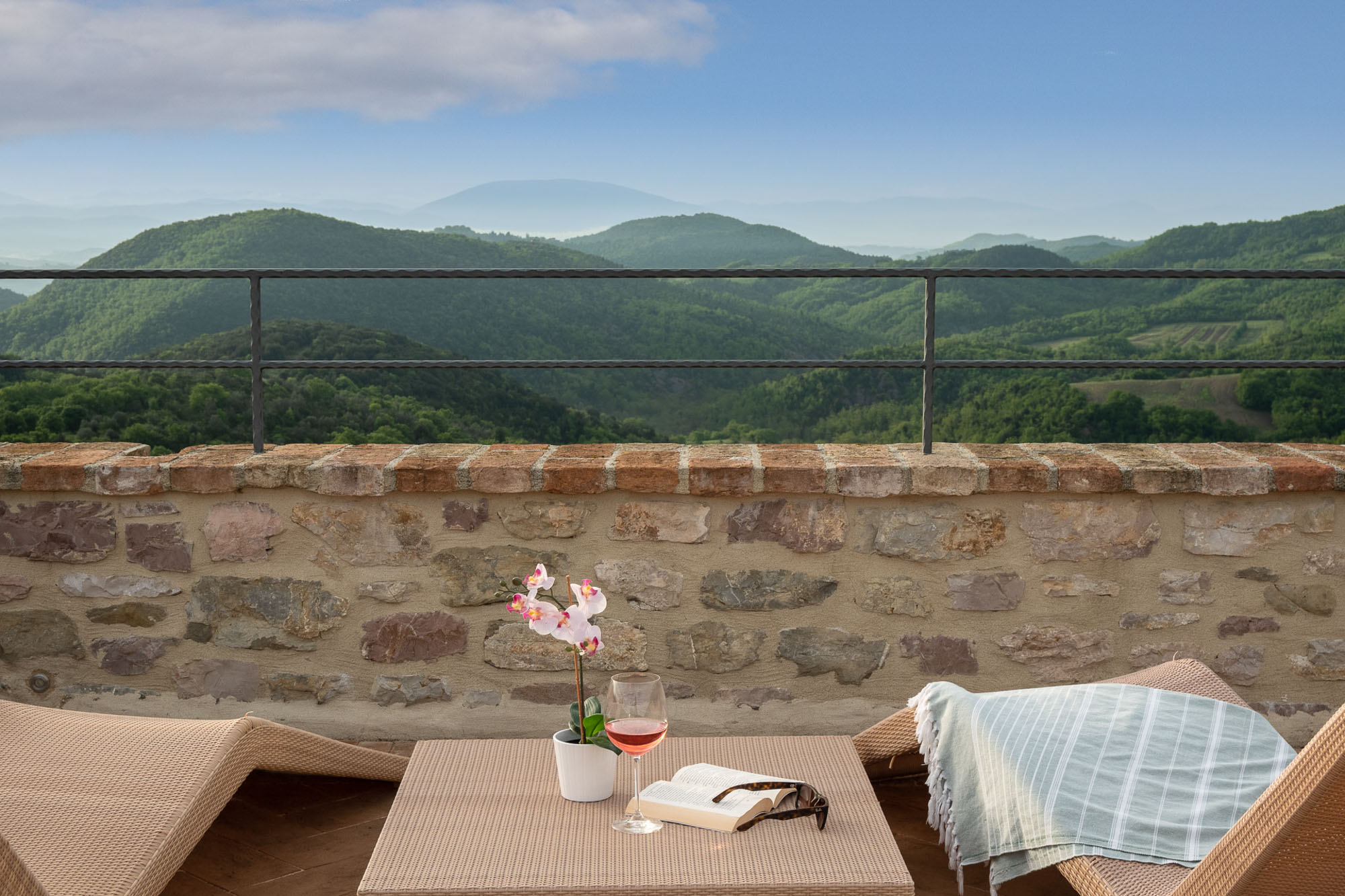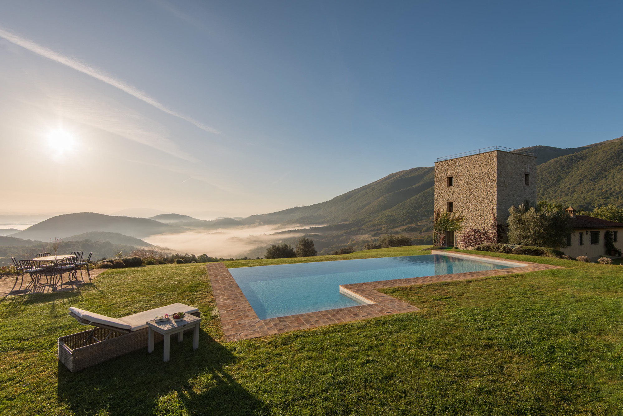 The roof terrace is a standout feature, offering stunning views of the estate's woodlands, olive groves, vineyards, and the rolling Umbrian hills. Situated in the heart of Umbria, the location offers easy access to many historic cities worth exploring. There is also the nearby village of Pierantonio, which provides a good selection of shops and amenities.