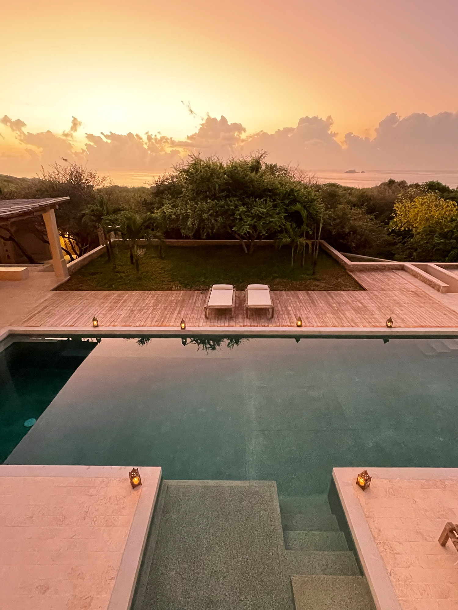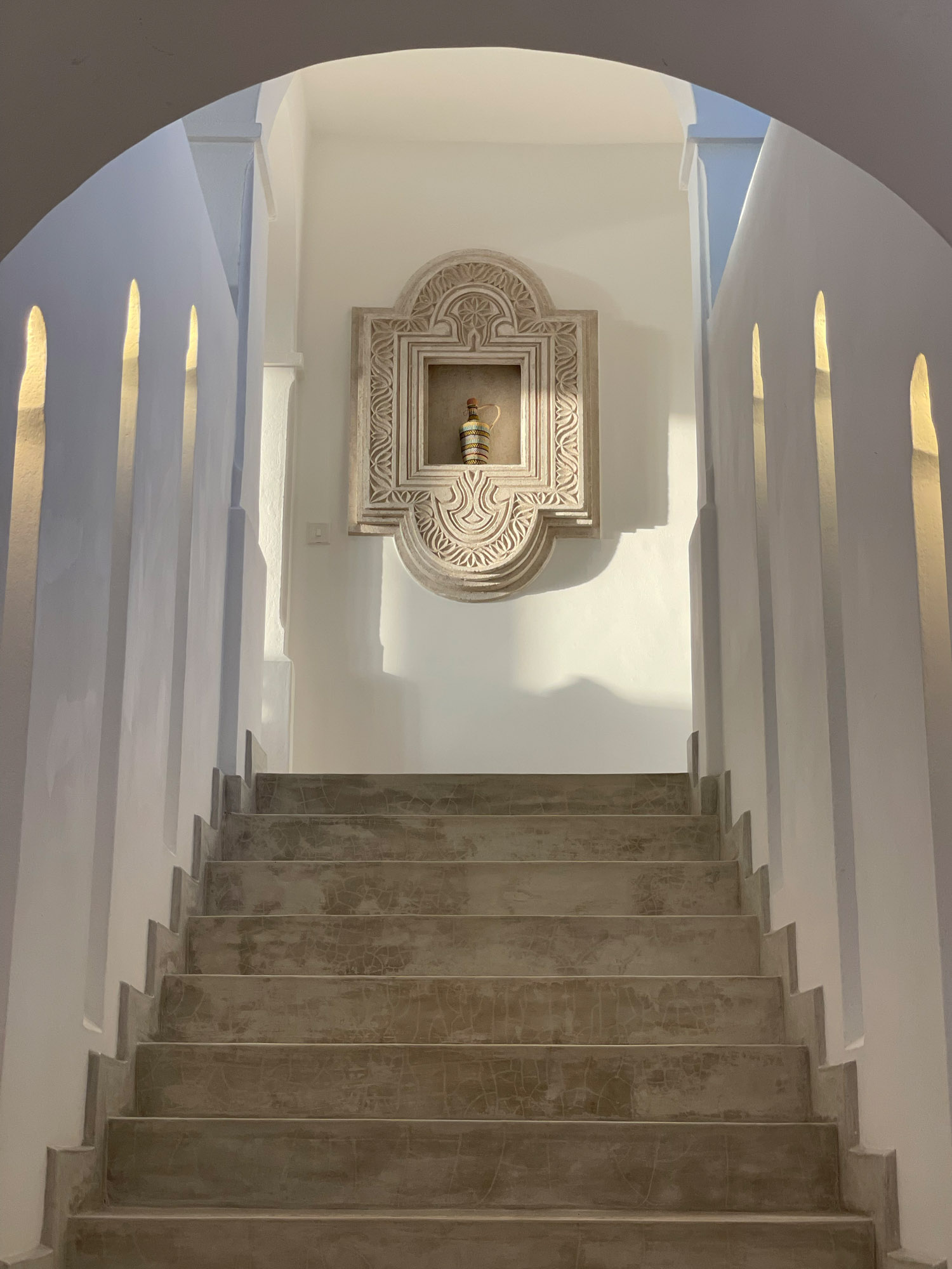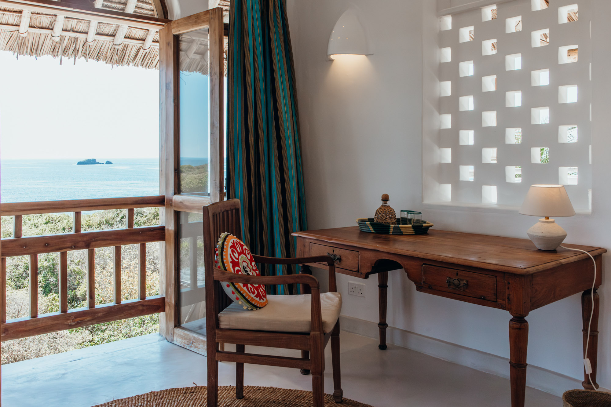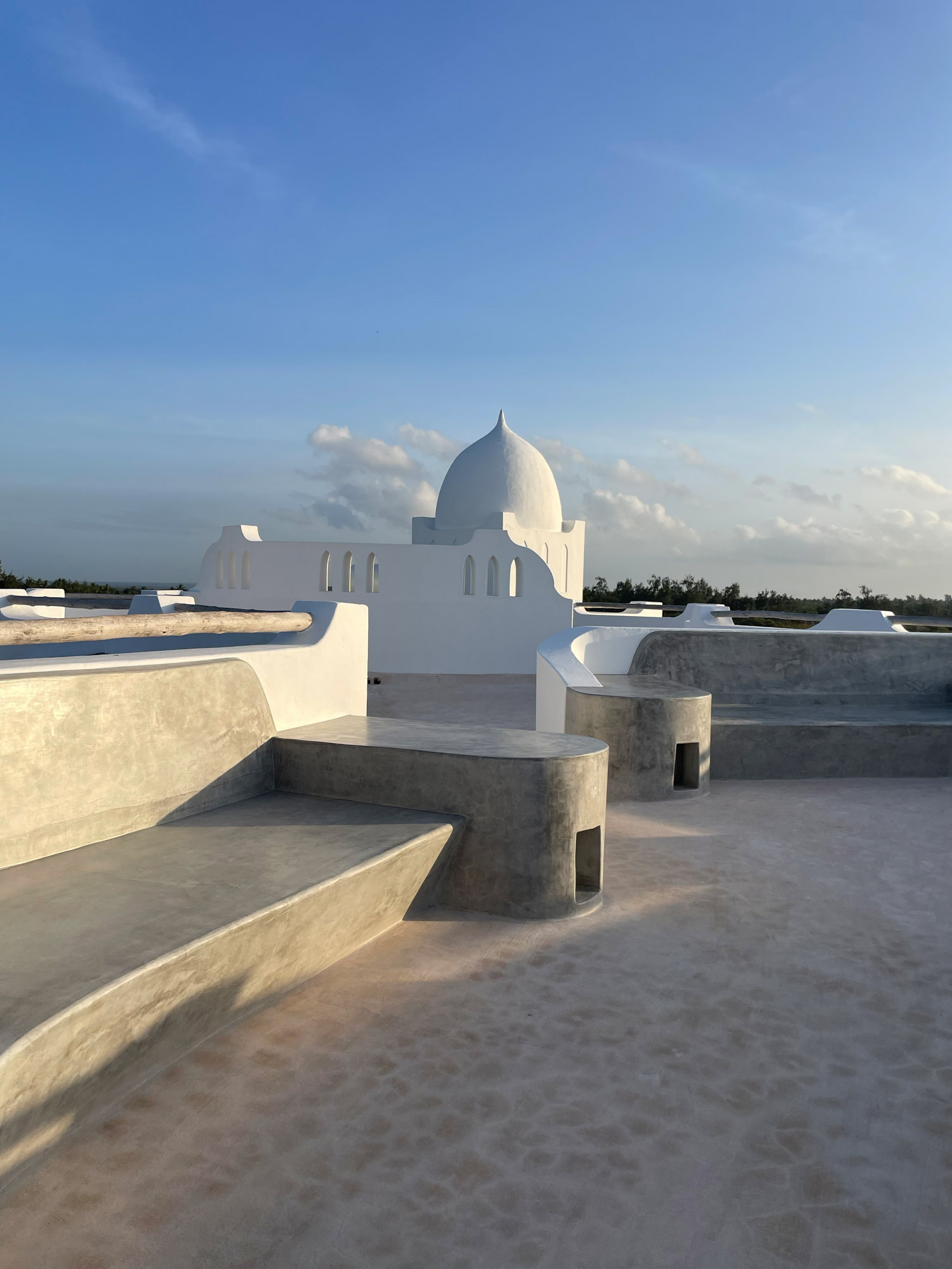 The large terrace and pool area, complemented by shaded baraza seating, create an ideal setting for socialising and enjoying the views. The villa’s magnificent dining area, featuring a grand round table, is perfect for leisurely lunches prepared by the in-house chef. For a change of scenery, guests can enjoy breakfast on the second-floor coral-tiled terrace, complete with a beautifully crafted coconut wood table. Meandering garden paths lead through endemic bushland, offering a peaceful stroll to the cliff’s edge, where a stairway descends to a secluded beach with coral formations and tidal pools for exploration. The roof terrace provides stunning sunset views, perfect for evening sundowners while watching dhows glide across the Mida Channel.