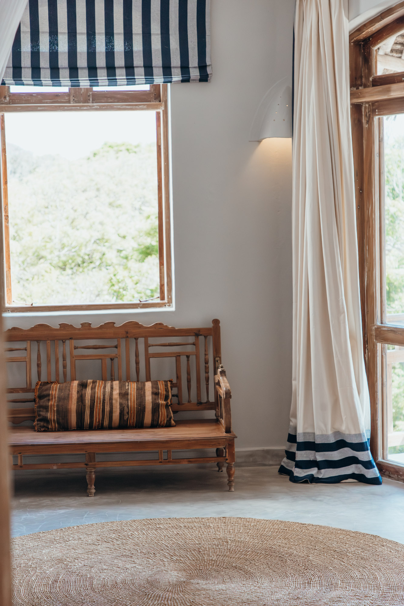 The villa features light, spacious living areas where graceful curves and thoughtful design elements enhance the open, airy feel. The first-floor sitting room offers a peaceful retreat, while the villa benefits from natural cooling through a traditional wind tunnel, ensuring constant airflow. The six bedrooms, each with air conditioning and mosquito nets, provide privacy and comfort. The master suite, located on the second floor, includes an adjoining children’s room, while additional bedrooms on the first and second floors offer stunning views of the sea or the Mida Creek forest.